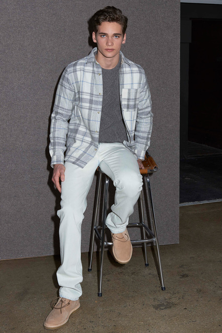 Touitou spoke first. He has embraced his role as a kind of grizzled professeur of style, and his address, illustrated by a few rounds of models in A.P.C.’s Fall collection, was a disquisition on elegance. He summoned the spirits of four men he considers paragons of the form: Yves Saint Laurent (for his own style in this case, not his collections), Marcel Proust, Kurt Cobain, and Marc Jacobs (pre-mid-career gymnification). Saint Laurentian elegance had a proper, shirt-and-tie expression, though one tunic look suggested his North African adventures. Touitou even commissioned the makers of YSL’s iconic glasses, Maison Bonnet, to produce a few similar rectangular styles for A.P.C. Proust was represented by fur-trimmed coats, and Jacobs and Cobain, twin pillars of grunge, inspired ripped jeans and flannel overshirts worn loose. “Marc had his own style before he became a yoga star,” Touitou said. “I have this nostalgia for Marc. He looked like a teacher of semiology in Princeton, New Jersey.” Despite the jeans here, one of the key takeaways of the presentation was Touitou’s injunction to not wear denim more than one day out of every two. “I call this the fight for your right not to wear jeans.”