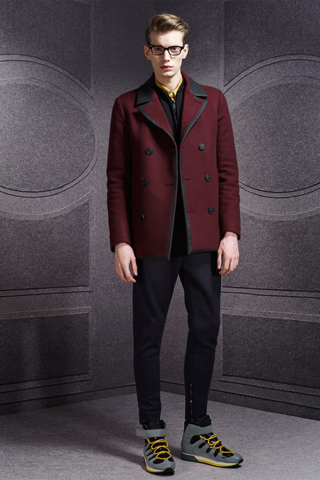 For their Autumn/Winter 2014 Monsieur collection, Viktor&Rolf juxtapose classic menswear tailoring in grey flannel with tracksuits; bridging the gap between classically sartorial menswear and sportswear.