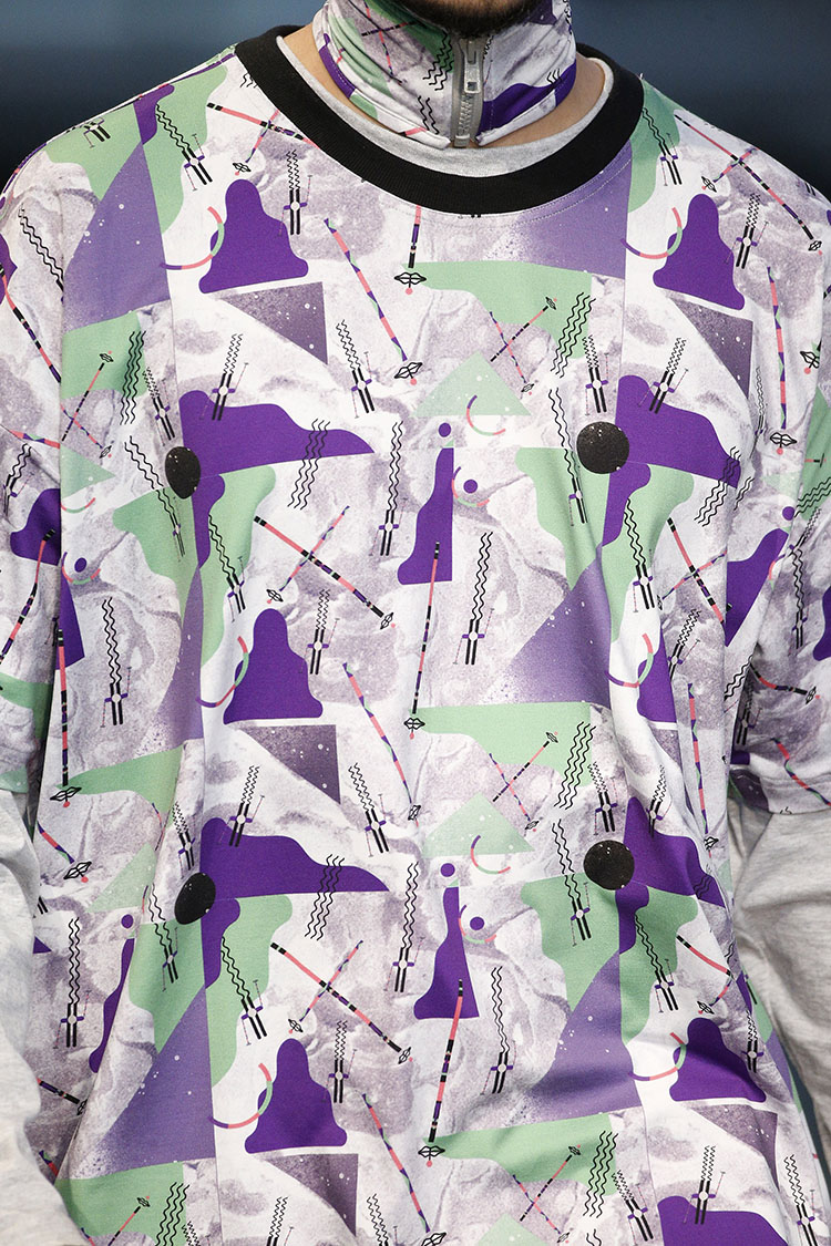 Krizia Robustella is a fashion brand self-defined as “Sport Deluxe” which takes as its reference sportswear recent decades to create a universe in which comfort merges with luxury. And luxury is transformed into shapes and fabrics hitherto relegated to the level of informality. The collection THE HOT SNOW PATROL F/W2014-15 is inspired by those winter holidays with family or friends. Cabins, campfires, endless mountains of snow, pine trees, ski holidays and hot chocolate. A trip to the past costumes of bright colors Padded die impossible brands of eyewear in the face and uncomfortable ski boots. Geometries in imaginary landscapes prints, in collaboration with illustrator Marta Veludo.