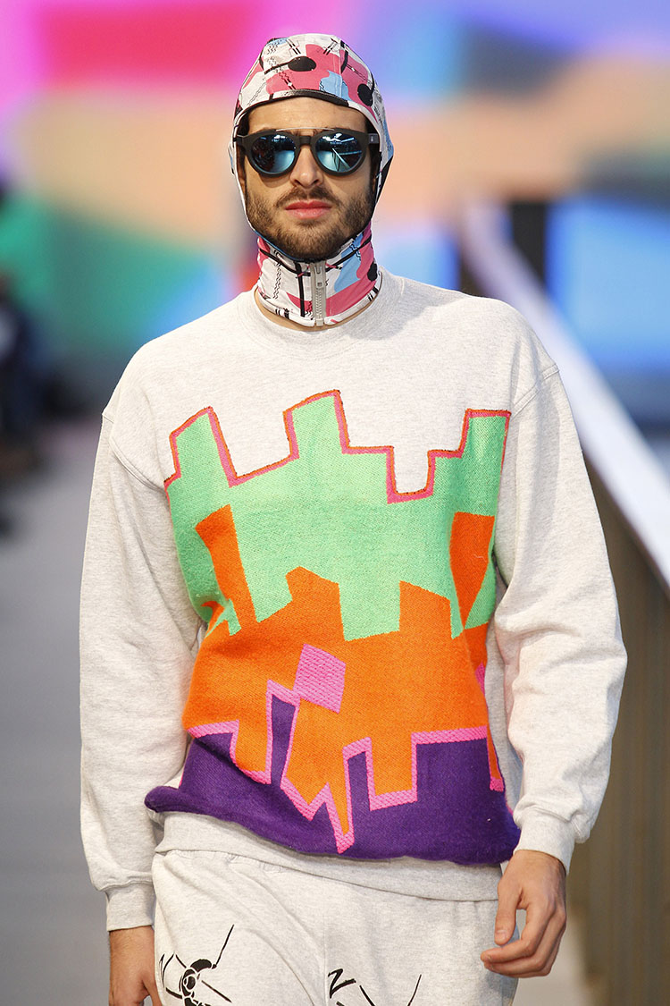 Krizia Robustella is a fashion brand self-defined as “Sport Deluxe” which takes as its reference sportswear recent decades to create a universe in which comfort merges with luxury. And luxury is transformed into shapes and fabrics hitherto relegated to the level of informality. The collection THE HOT SNOW PATROL F/W2014-15 is inspired by those winter holidays with family or friends. Cabins, campfires, endless mountains of snow, pine trees, ski holidays and hot chocolate. A trip to the past costumes of bright colors Padded die impossible brands of eyewear in the face and uncomfortable ski boots. Geometries in imaginary landscapes prints, in collaboration with illustrator Marta Veludo.