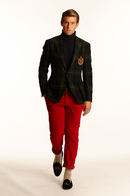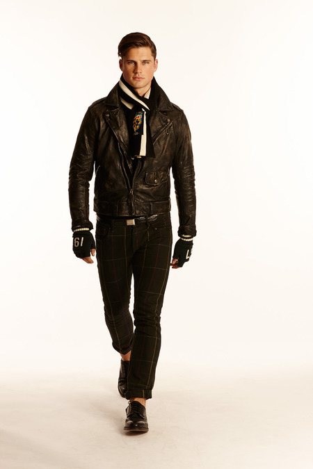 Meanwhile, Purple Label and Black Label continue to develop. The Fortune 500 CEO who waxes Purple can indulge in a sky-high stand collar for work and a cashmere sweatpant for the weekend—which is the greater leap of faith, only time will tell. While Purple brings plummy three-piece tartan suits for the holidays, Black Label, the most “European” (read: slim, soft, and unstructured) of the RL stable, is dark and sleek. Among the denim shown with haberdashery, and haberdashery shown with denim, softer-shouldered jackets in bird’s-eye and micro-houndstooth stood out. From Disney to Euro, Ralph Lauren spans worlds.