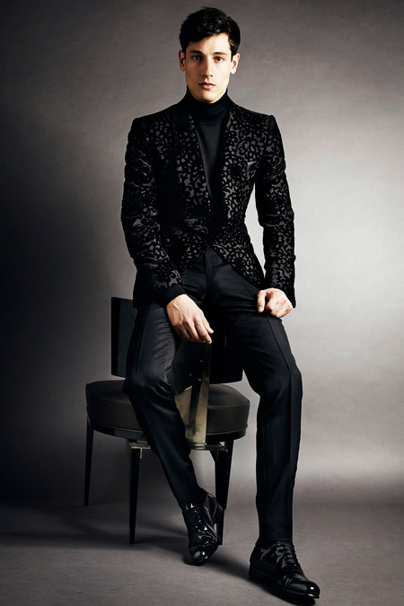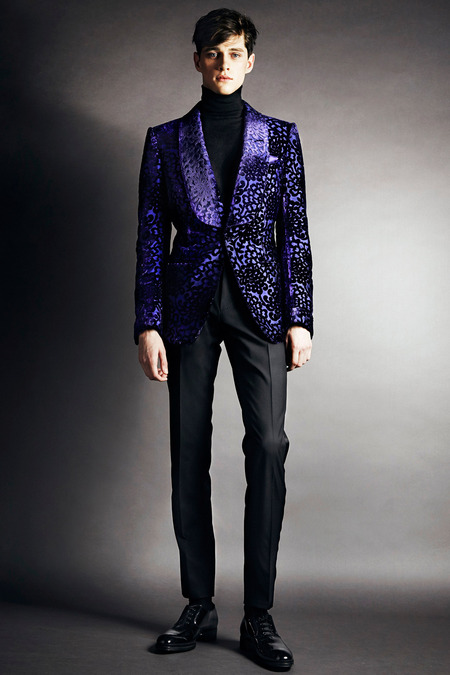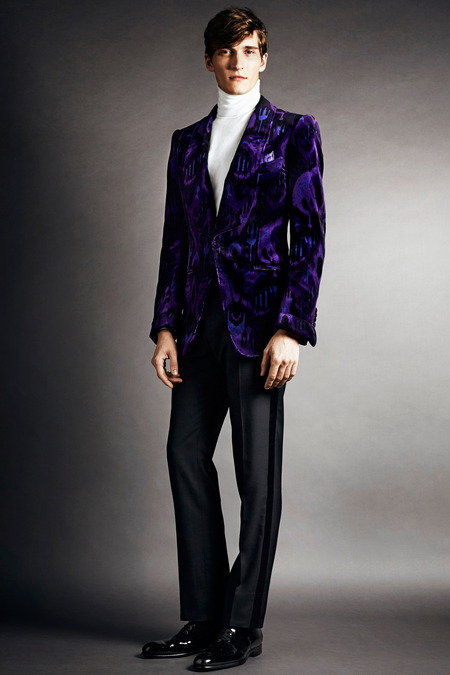 Such obsessive attention to detail has always been Ford’s calling card. When the item merits the attention, the result can be stunning. And so it was with Fall’s eveningwear. Anyone needing their color fix could find it in lustrous silk jacquard jackets, in exotic ikats, or in textures so lush they could almost have been dévoré. And there was still color elsewhere in the collection: a zing of chartreuse slipped into a pile of cashmere sweaters, a tasty selection of spice tones in amid the urban charcoal.