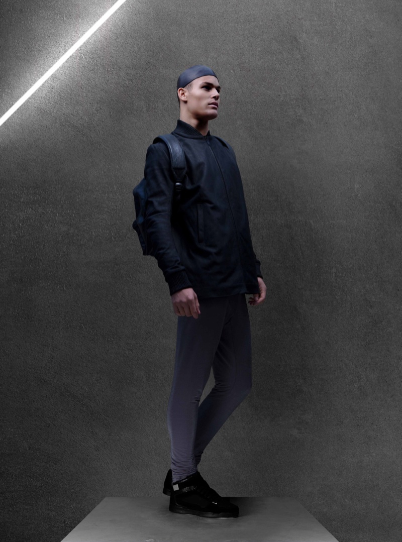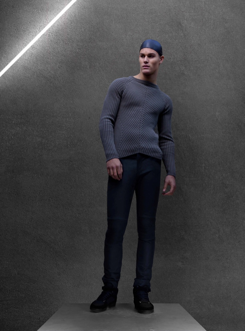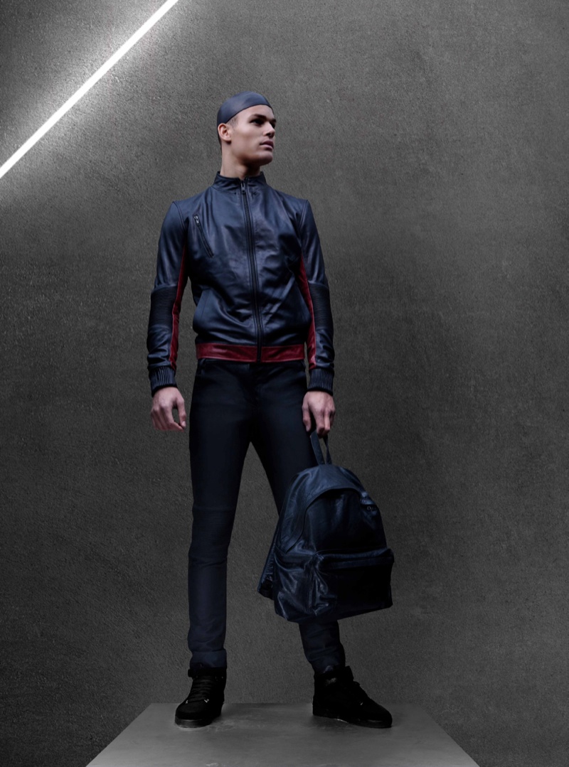 Tapped for Domingo Rodriguez’s fall/winter 2014 look book, model Tyler Maher sports the brand’s most recent designs, which were inspired by the idea of hybrid pattern cutting. Weaved in among Rodriguez’s signature work with leather and knits, various components of garments were fused together to create a graphic element for the season. Embracing a slim silhouette in gray, black and olive, essential separates contribute to the basis of a modern wardrobe.