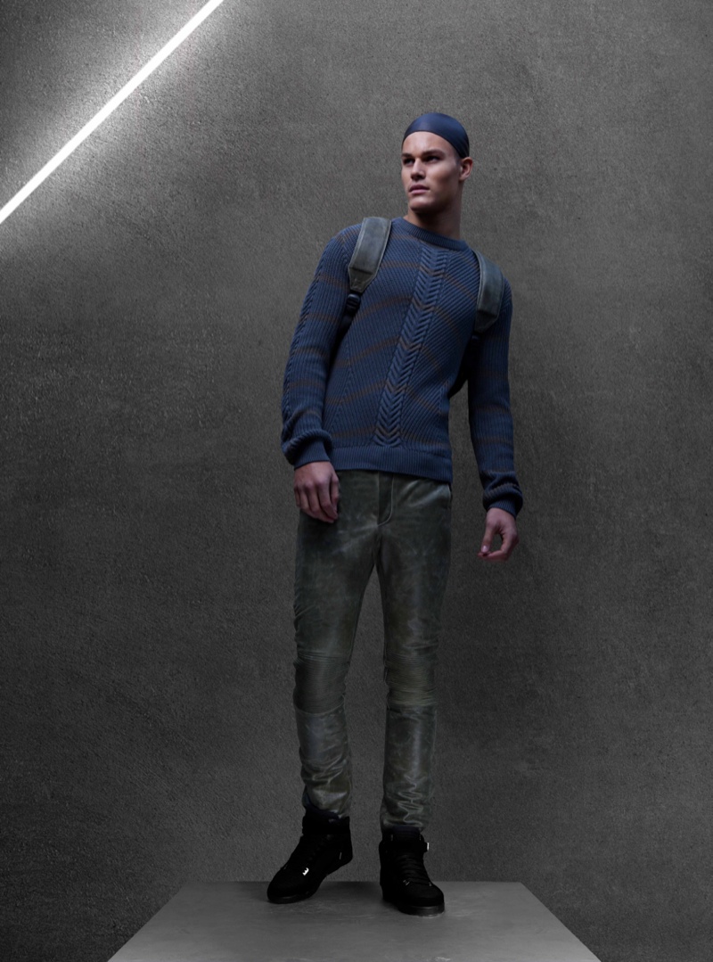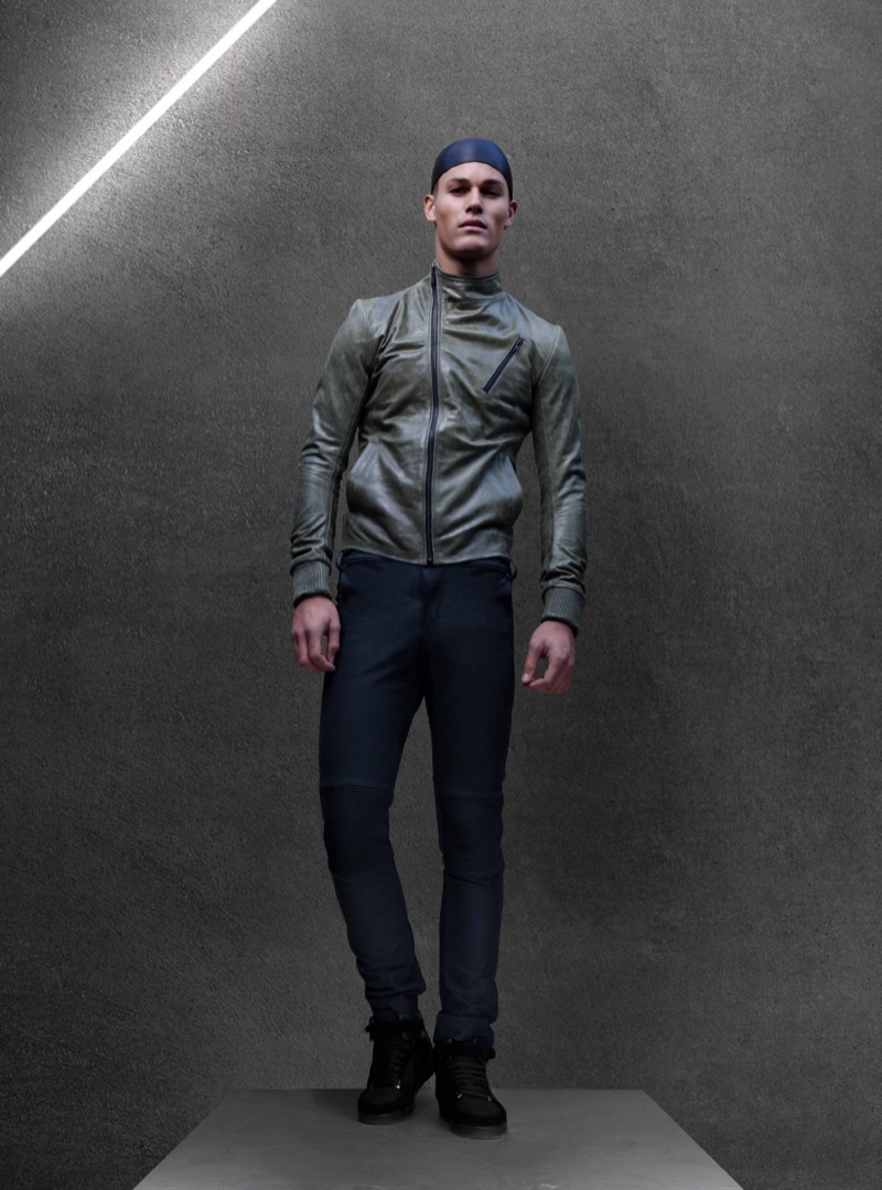 Tapped for Domingo Rodriguez’s fall/winter 2014 look book, model Tyler Maher sports the brand’s most recent designs, which were inspired by the idea of hybrid pattern cutting. Weaved in among Rodriguez’s signature work with leather and knits, various components of garments were fused together to create a graphic element for the season. Embracing a slim silhouette in gray, black and olive, essential separates contribute to the basis of a modern wardrobe.