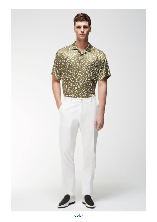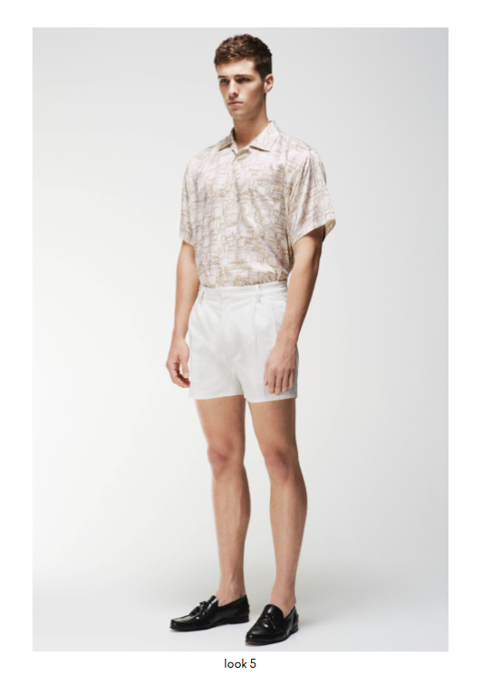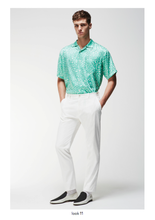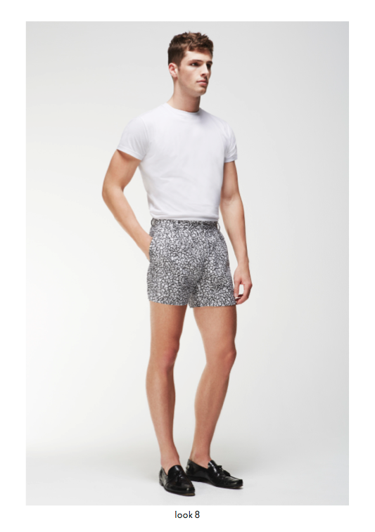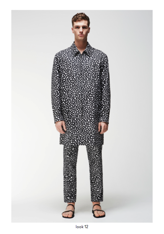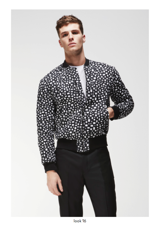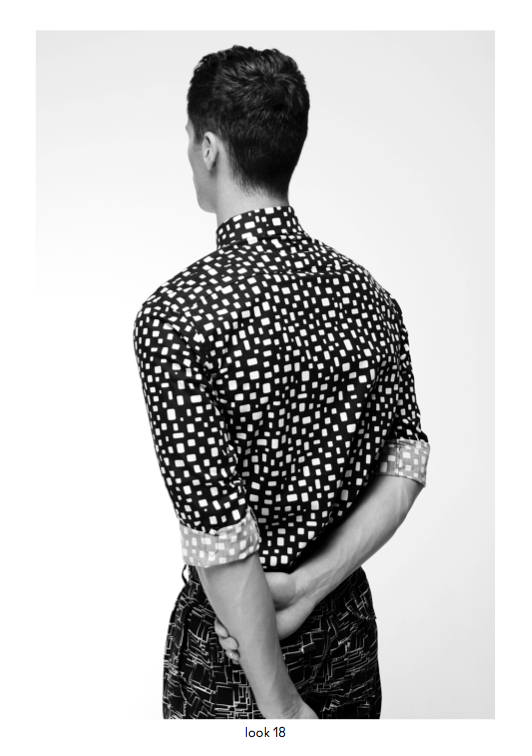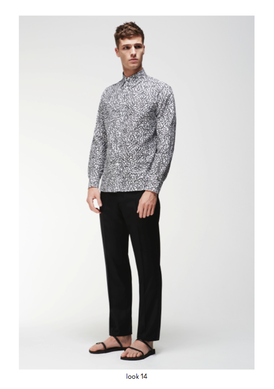 Spring/Summer 2014 menswear saw a powerful use of graphic prints and incorporations of colour throughout the collection, providing a contemporary approach to core wardrobe essentials such as cotton macs, hooded windbreakers, zip through shirt jackets and ribbed neck bombers. Garment dyed military shorts and a new block chino are available in a selected choice of colours and can be easily worn with cashmere cotton cardigans or crews. The strong geometric khaki green or monochrome prints are defined as Tab, Block, Porus, Cell and Staple and are seen mainly in the shirting, sweats, chinos and shorts and include highlights of bold colour and a simple floral print.