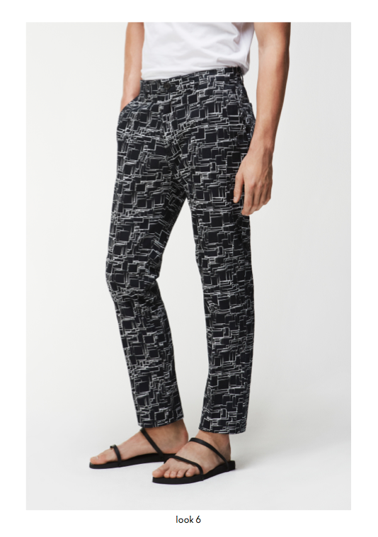 Spring/Summer 2014 menswear saw a powerful use of graphic prints and incorporations of colour throughout the collection, providing a contemporary approach to core wardrobe essentials such as cotton macs, hooded windbreakers, zip through shirt jackets and ribbed neck bombers. Garment dyed military shorts and a new block chino are available in a selected choice of colours and can be easily worn with cashmere cotton cardigans or crews. The strong geometric khaki green or monochrome prints are defined as Tab, Block, Porus, Cell and Staple and are seen mainly in the shirting, sweats, chinos and shorts and include highlights of bold colour and a simple floral print.