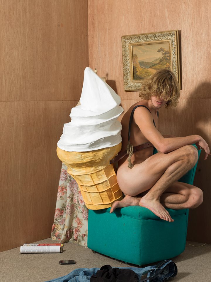 As an artist I explore the subjects of: sexuality, food, politics, power, and identity. In my most recent body of work, “Dairy Queen”, I examine how we see and experience food and its relationship to the sexuality of the body through a series of oversized sculptures and performance photography. -Arturo Herrera (Artist).