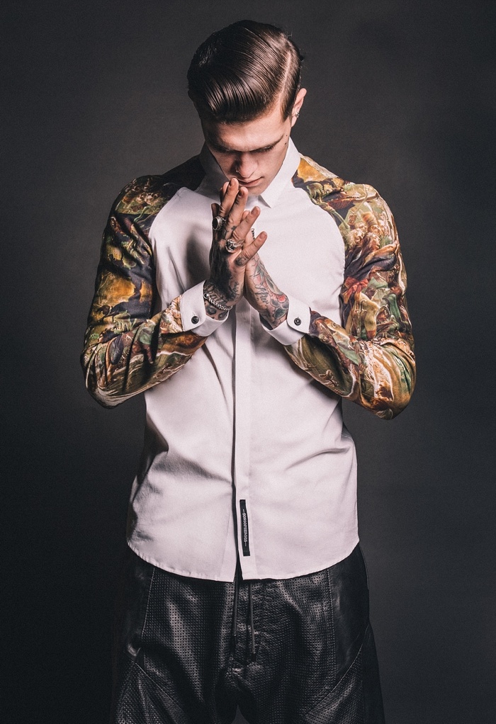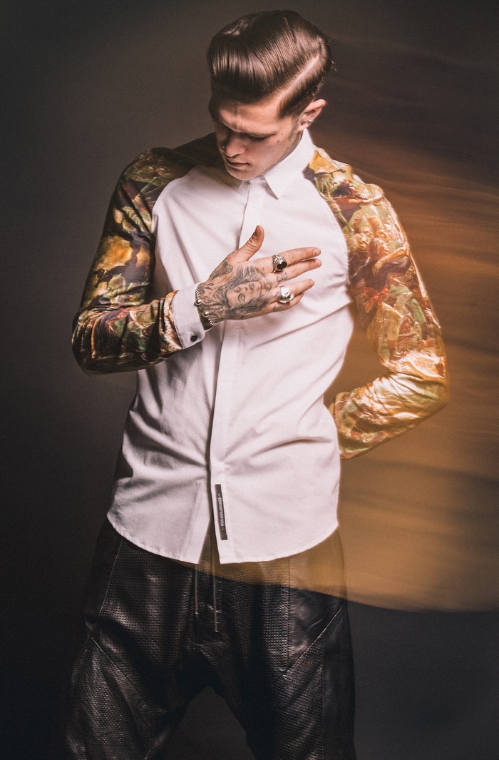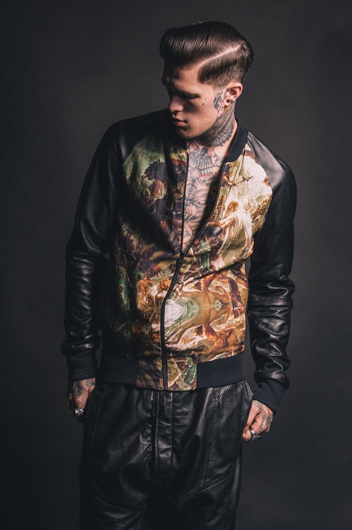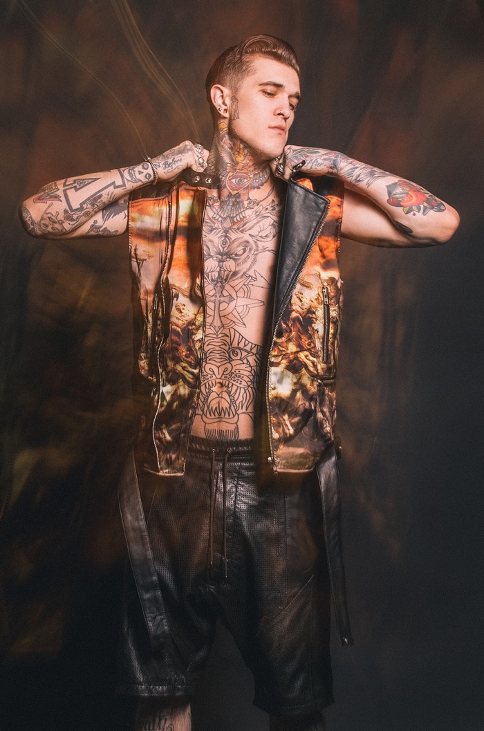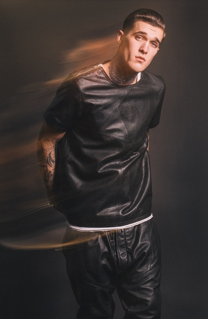 Going the way of the bad boy for spring/summer 2014, Sons of Heroes enlists tattooed model Jimmy Quaintance to star in its latest look book. Connecting with photographer Adam Robertson, Jimmy rocks this season’s looks like a second skin. Offering a rebellious flair, black, leather and graphic prints come together. Capturing a wardrobe for everyday wear, tanks, jackets, t-shirts and button-downs contribute to Sons of Heroes’ most recent outing.