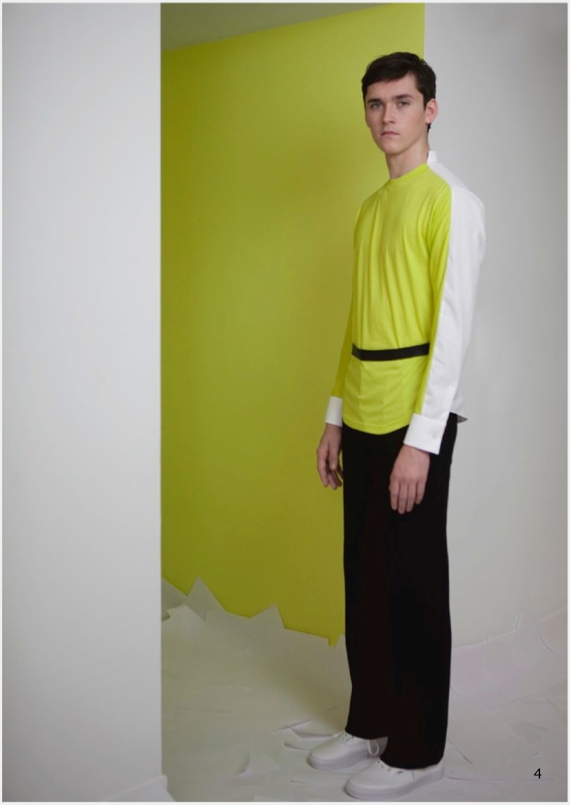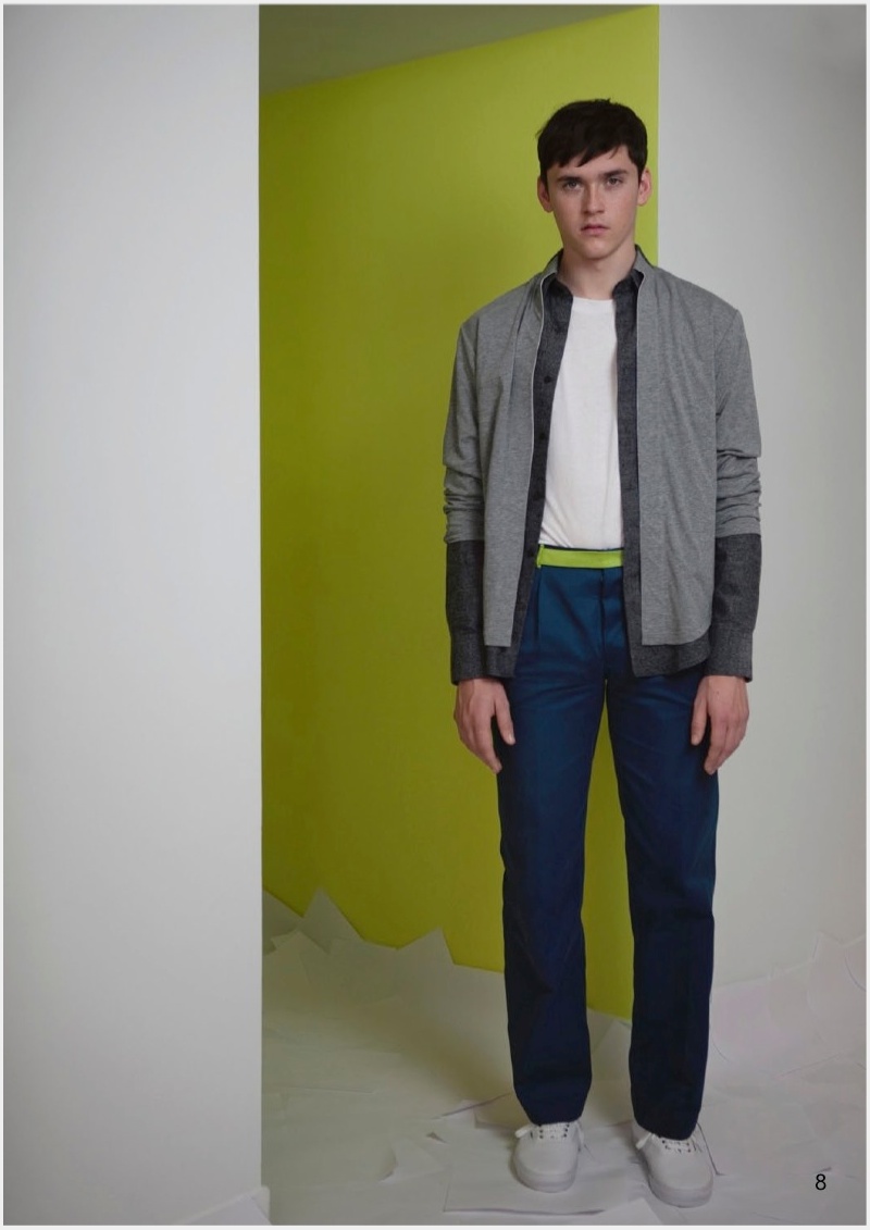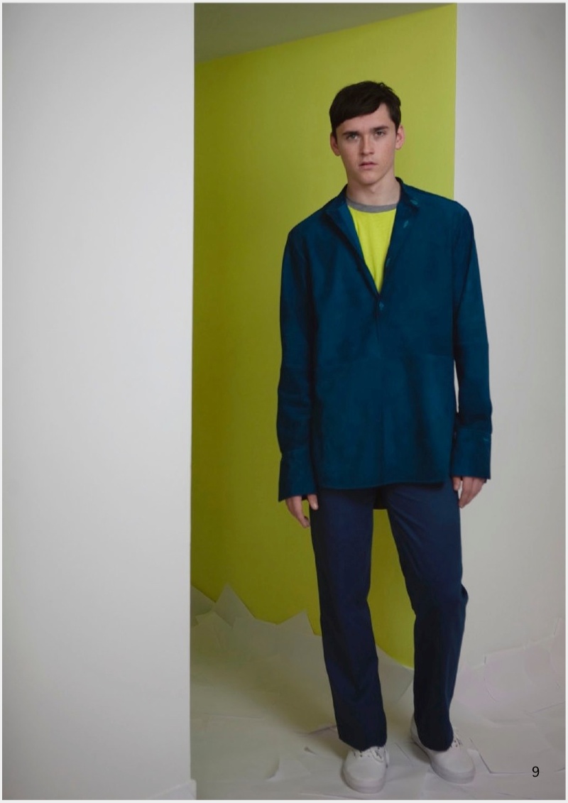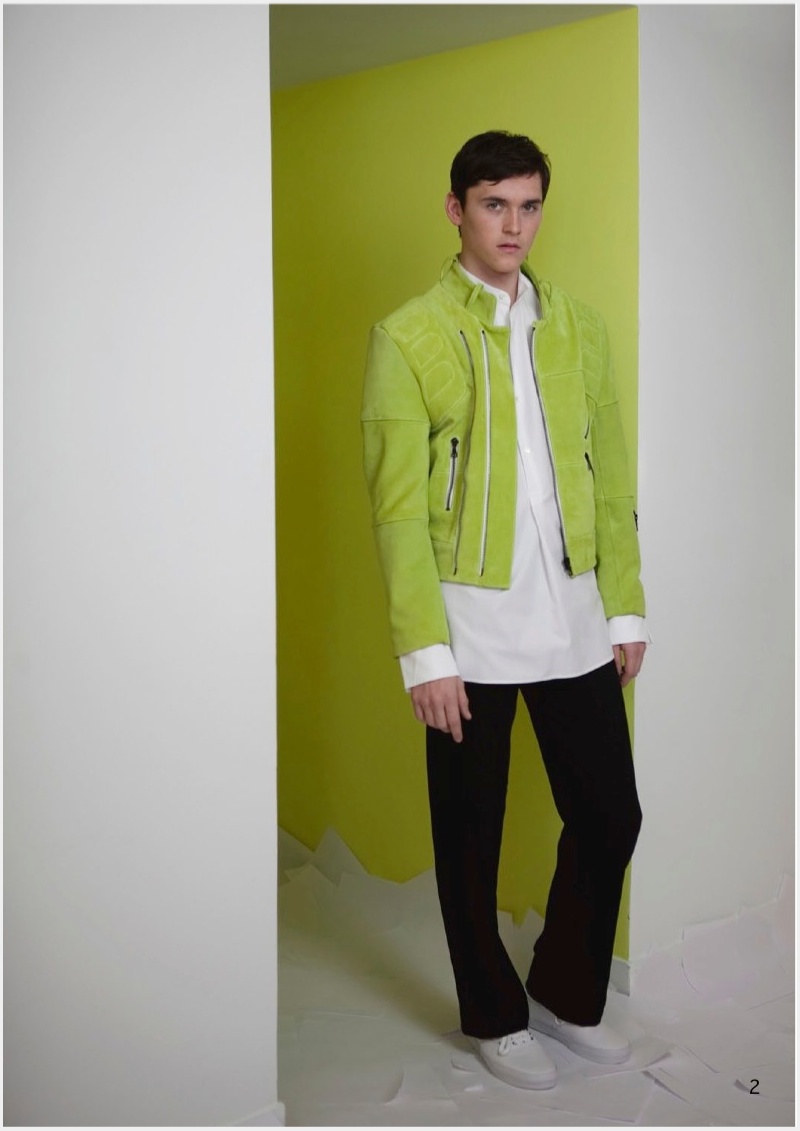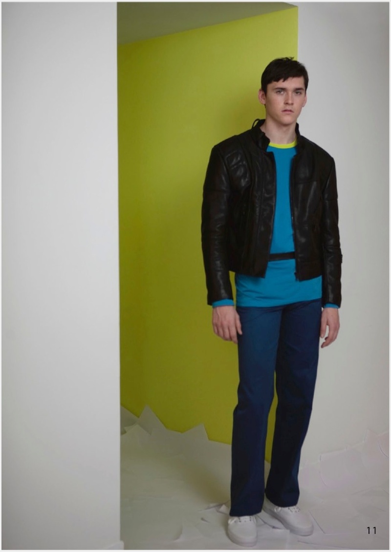 Allowing the music to course throughout his body, model Anders Hayward dances his way through Palmer//Harding’s fall/winter 2014 outing. Photographed by Cecilie Harris, Anders dons the label’s latest collection which explores movement and comfort as the result of embracing the ease of a simple t-shirt. Dressed in bright colors, Palmer//Harding makes an upbeat statement as the range maintains relaxed silhouettes with a lineup of shirts and trousers, complemented by a biker jacket in suede and cow hide.