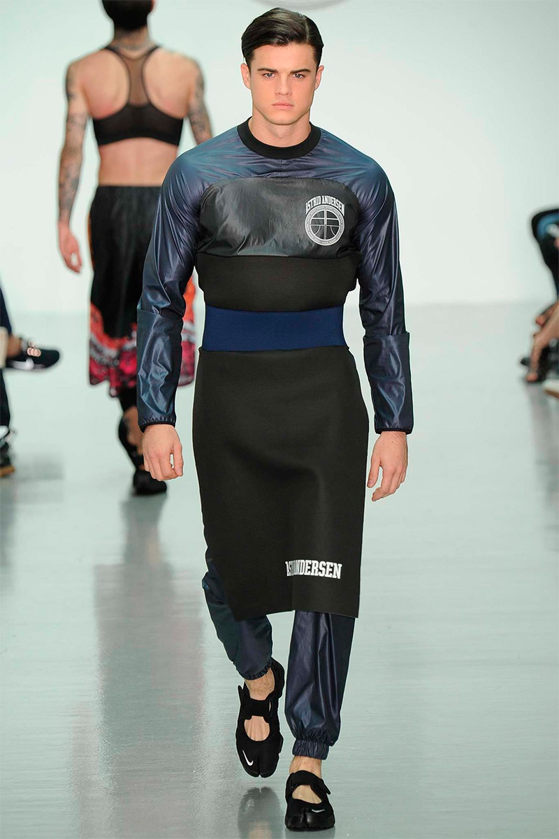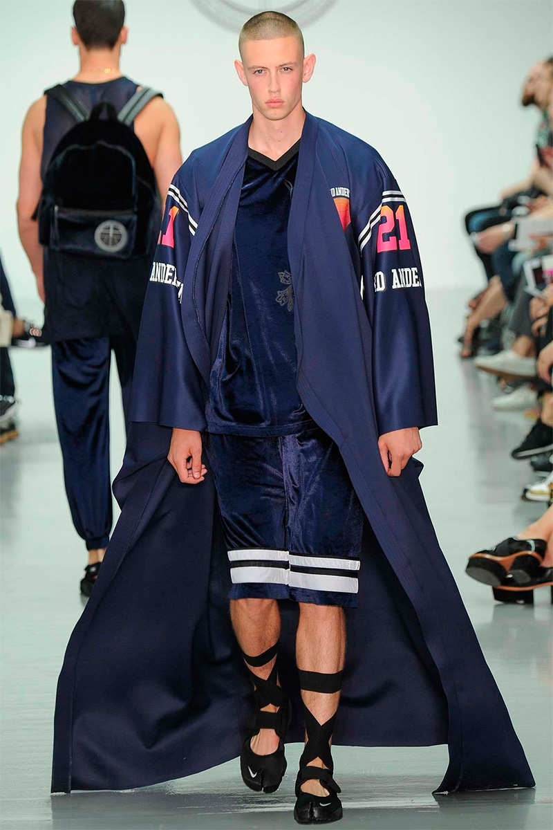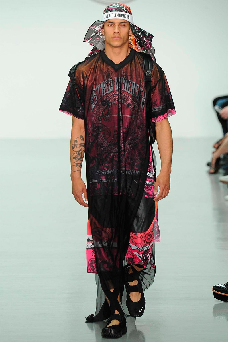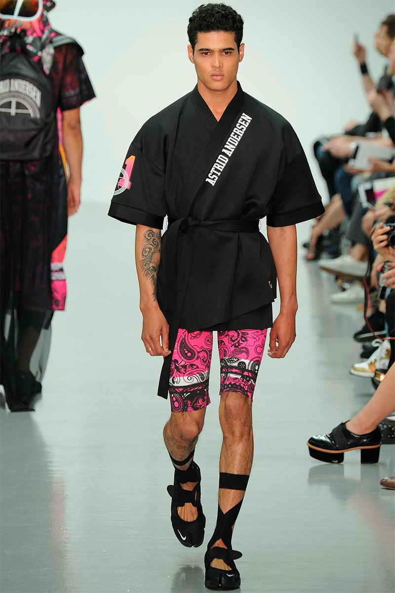 Astrid Andersen presented her Spring/Summer 2015 collection during London Collections: Men, mixing streetwear with asian influences.