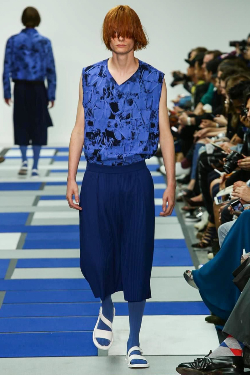 Agi & Sam presented their Spring/Summer 2015 at London Collection Men. Contemporary Print Based Menswear and Womenswear by Agape Mdumulla and Sam Cotton. Sponsored by Topman and Fashion East to show at MAN on schedule at London Fashion Week.