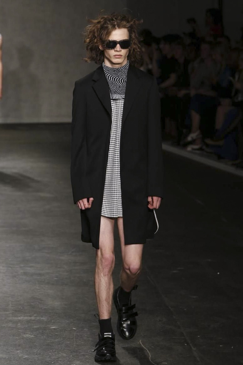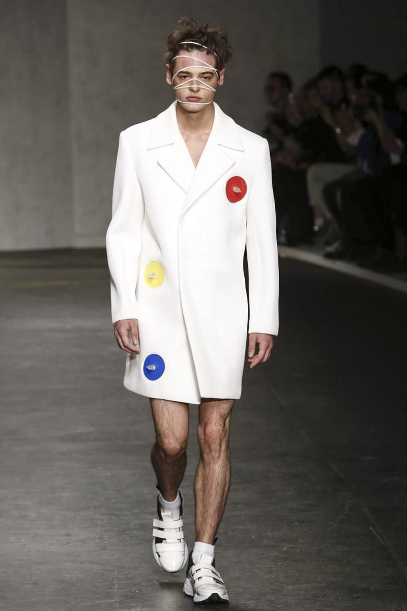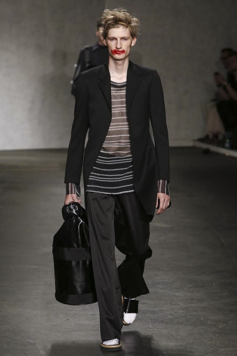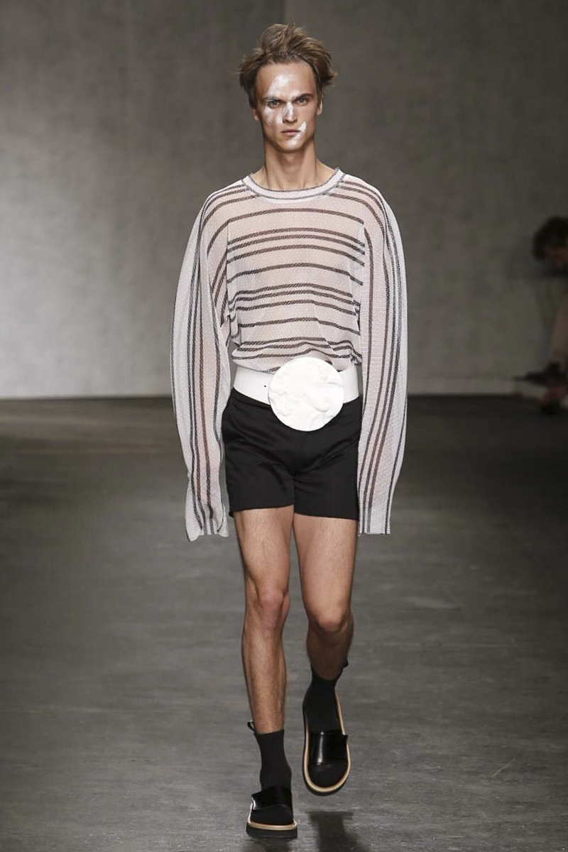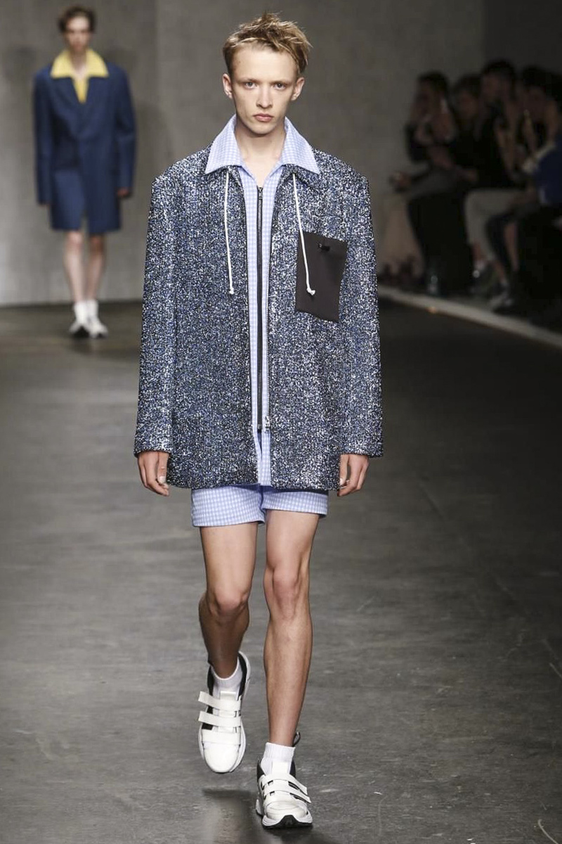 The force was with Xander Zhou as the Chinese label presented its spring/summer 2015 range during London Collections: Men. Creating offbeat fashions for the style aficionado from a galaxy faraway, Xander Zhou referenced Star Wars, even creating a fantastic sleeveless shirt with Darth Vader’s image. Meanwhile, texture added quite the dimension to the collection as looks offered transformative qualities with mesh and other materials. Iridescent coats in a boxy silhouette offered standout outerwear, contrasting against billowing trousers and oversize tops. Altogether, the collection brought two worlds together, presenting the wearable with the aspirational.