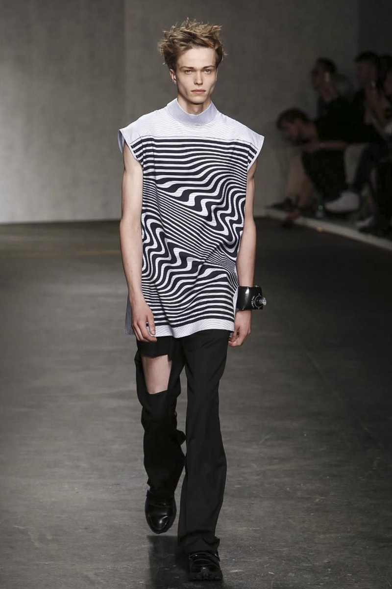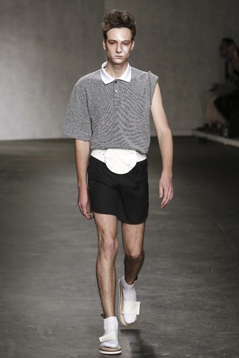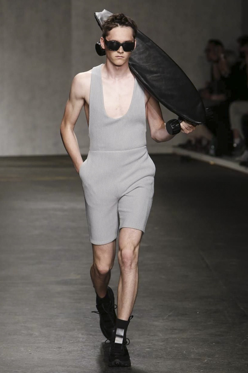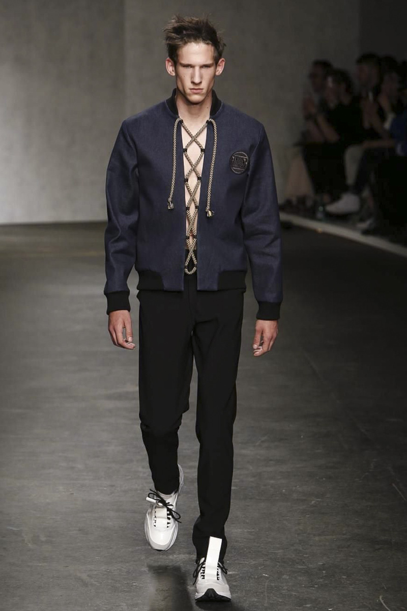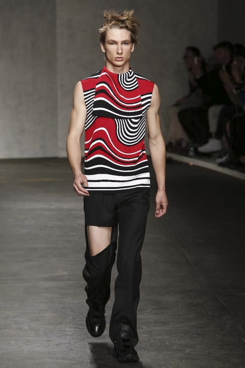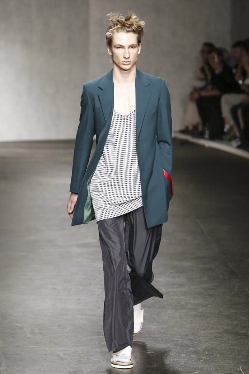 The force was with Xander Zhou as the Chinese label presented its spring/summer 2015 range during London Collections: Men. Creating offbeat fashions for the style aficionado from a galaxy faraway, Xander Zhou referenced Star Wars, even creating a fantastic sleeveless shirt with Darth Vader’s image. Meanwhile, texture added quite the dimension to the collection as looks offered transformative qualities with mesh and other materials. Iridescent coats in a boxy silhouette offered standout outerwear, contrasting against billowing trousers and oversize tops. Altogether, the collection brought two worlds together, presenting the wearable with the aspirational.