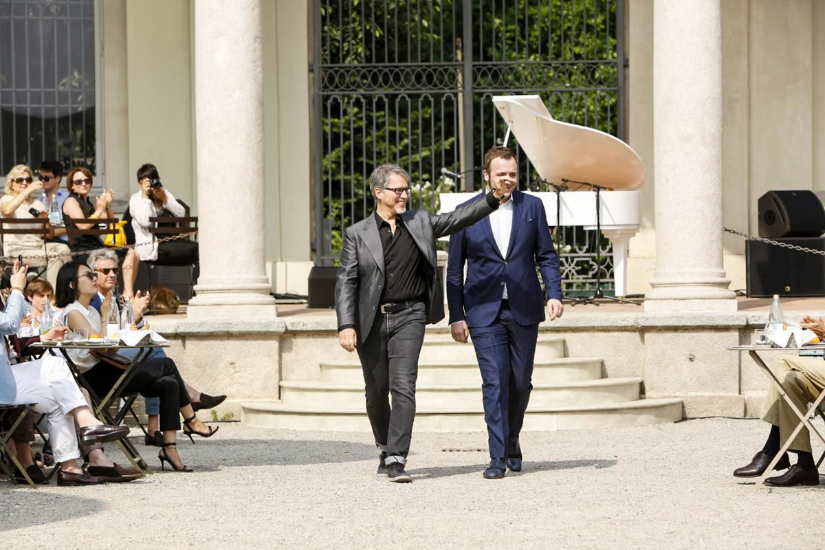 We would like to thank Raphael #Gualazzi, all our guests and everyone who has worked with us to create this show, sharing in the toil and the excitement beforehand and the happy glow from all the warm applause! – Corneliani. Presented their tailored streetwear at Milan Fashion Week.