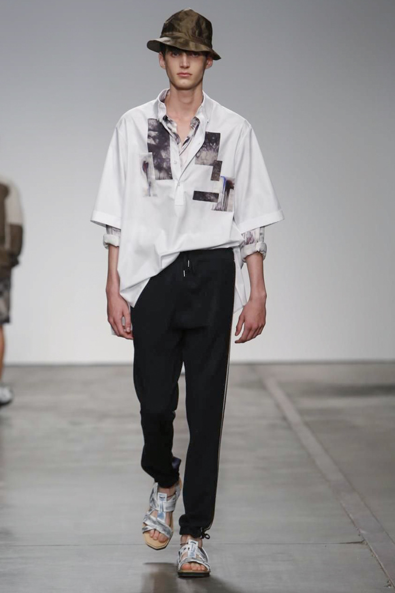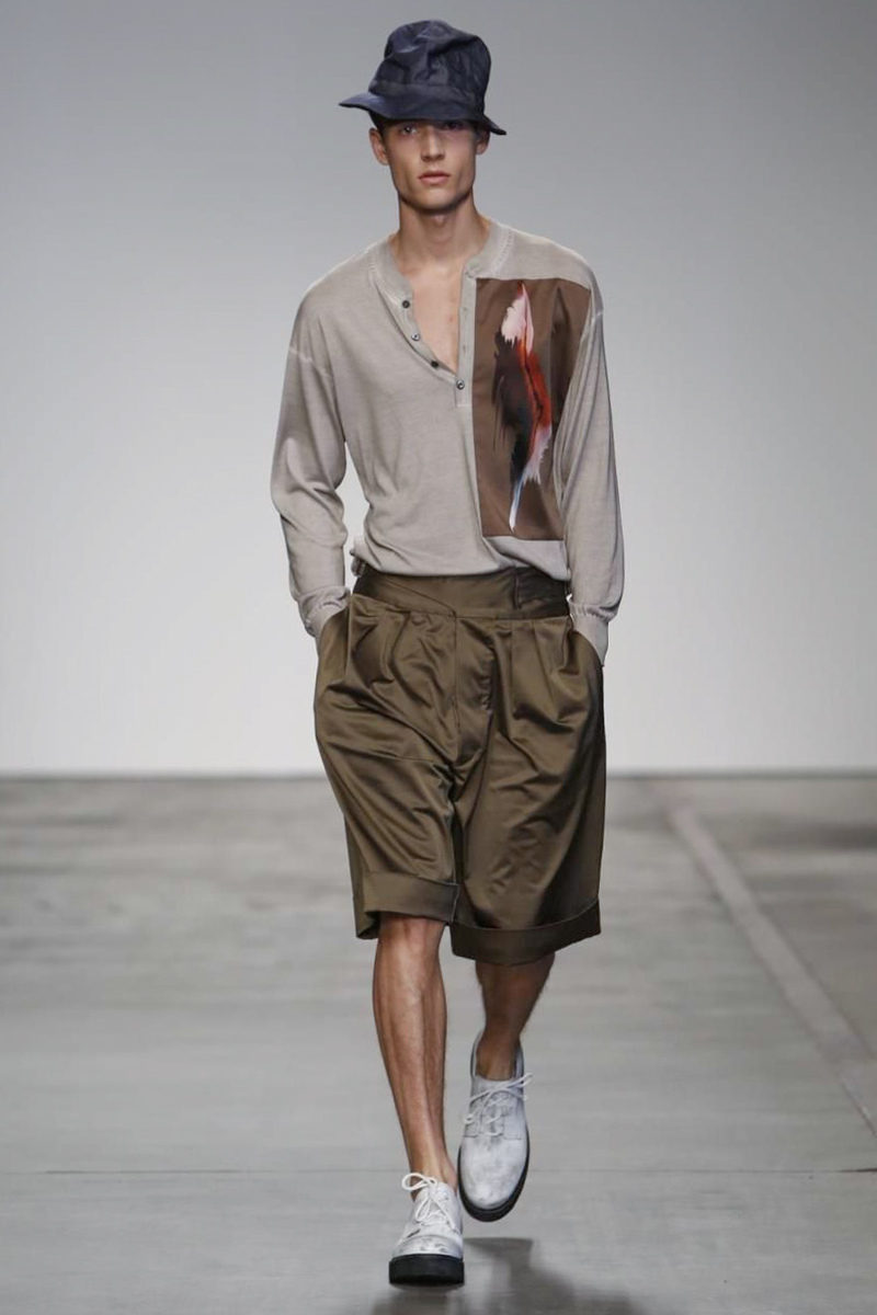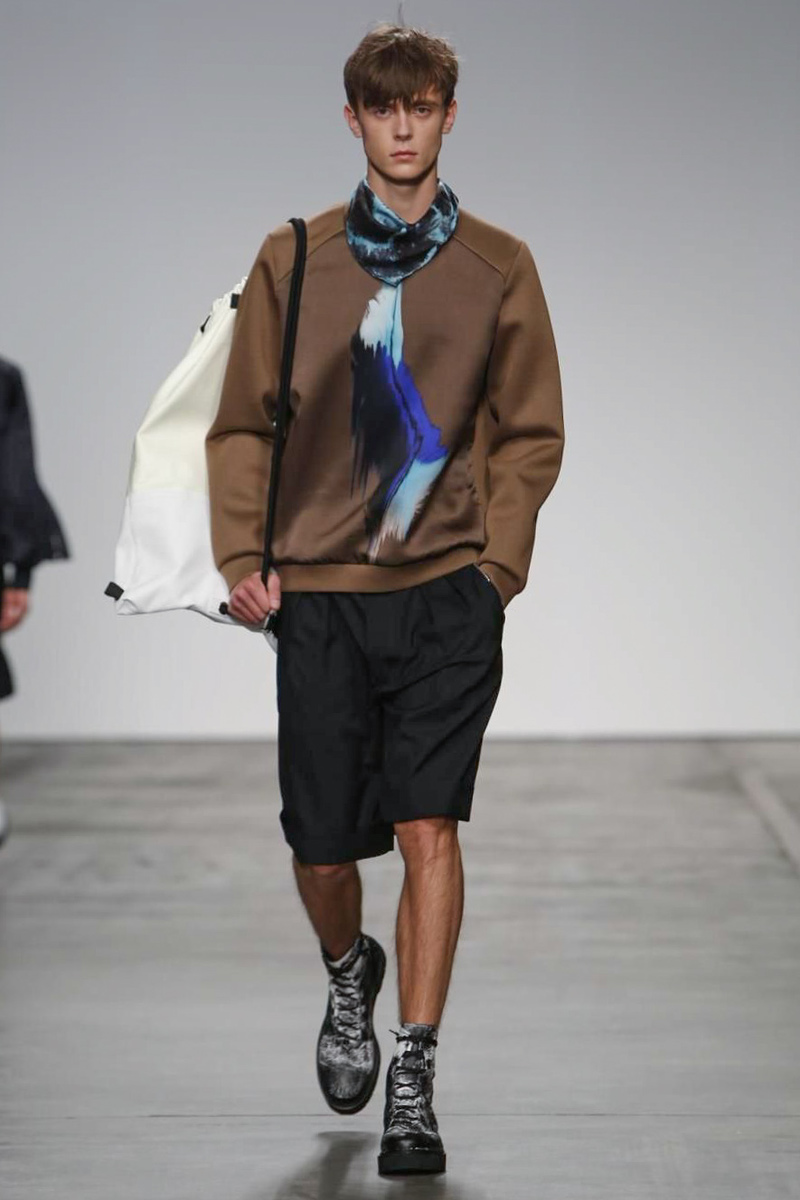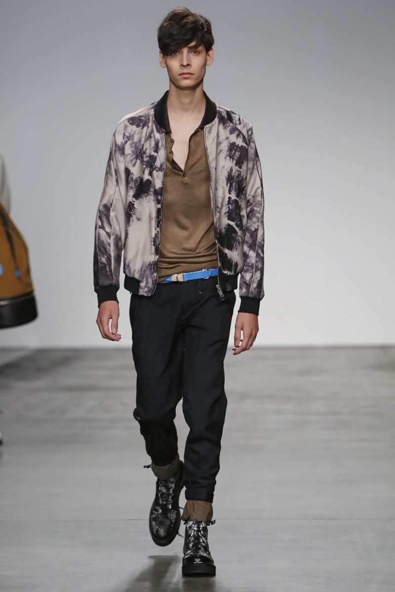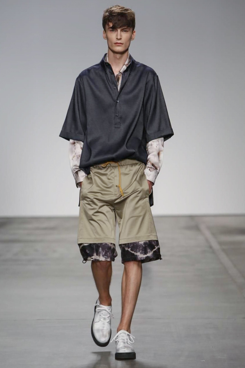 Iceberg experiences a ‘Rebirth in Nature’ for its spring/summer 2015 collection. Embracing a sporty style motif, the Italian label takes a deep journey into nature, finding somewhere along the path a 1990s-inspired street style. Here, soft shapes are conveyed with a natural ease of motion. Picking up tones from the journey, earthy hues are contrasted against a print of the sky and floral-inspired pops of color. Here, printed jackets are met with short-sleeve button-downs worn over long sleeves, henleys with graphics and active knitwear with halved sleeves. Add to the mix windbreakers, loose-cut trousers, skinny belts and shorts with an adjustable hem width for a true active experience.