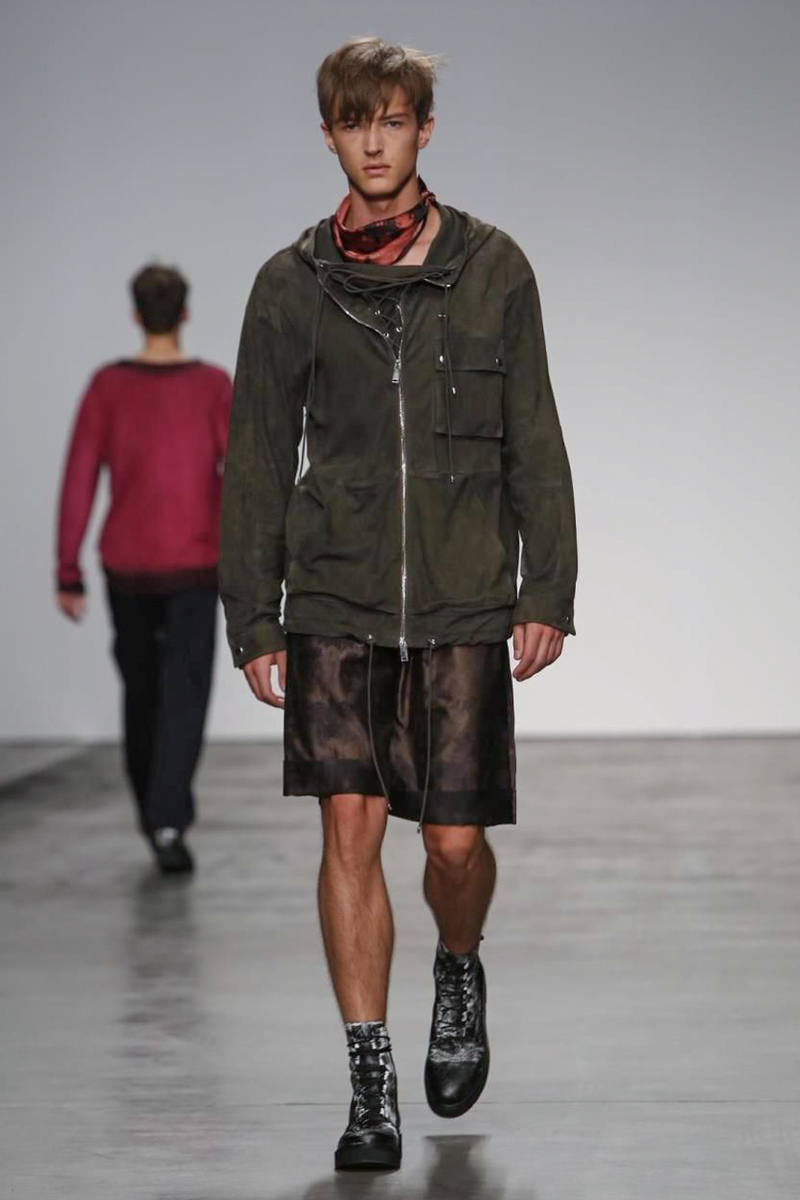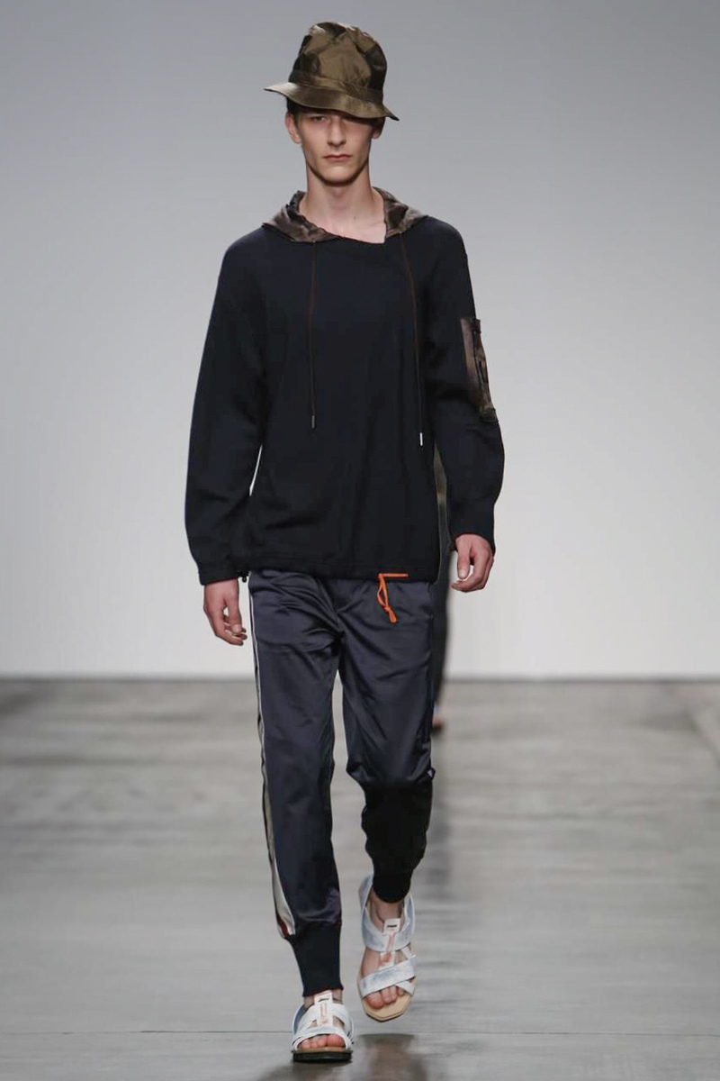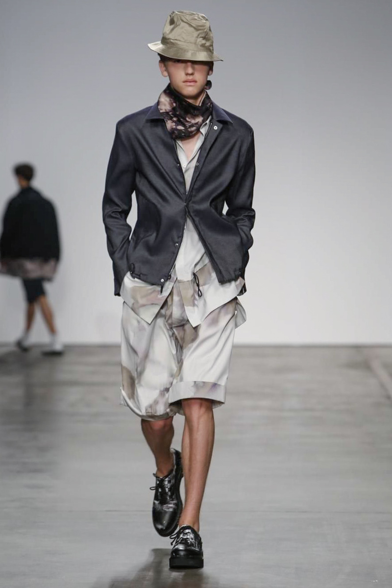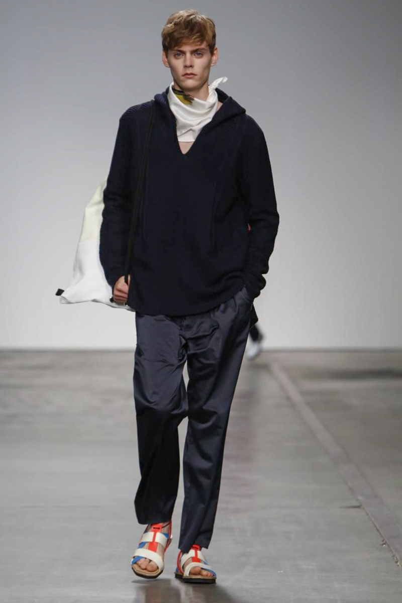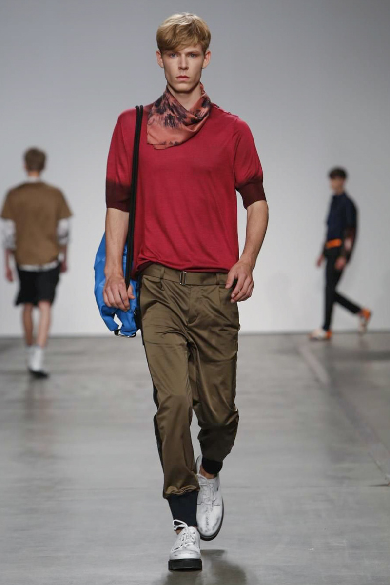 Iceberg experiences a ‘Rebirth in Nature’ for its spring/summer 2015 collection. Embracing a sporty style motif, the Italian label takes a deep journey into nature, finding somewhere along the path a 1990s-inspired street style. Here, soft shapes are conveyed with a natural ease of motion. Picking up tones from the journey, earthy hues are contrasted against a print of the sky and floral-inspired pops of color. Here, printed jackets are met with short-sleeve button-downs worn over long sleeves, henleys with graphics and active knitwear with halved sleeves. Add to the mix windbreakers, loose-cut trousers, skinny belts and shorts with an adjustable hem width for a true active experience.