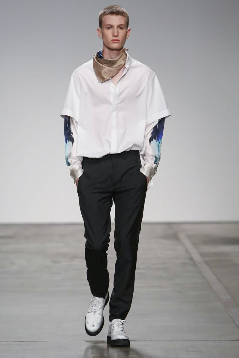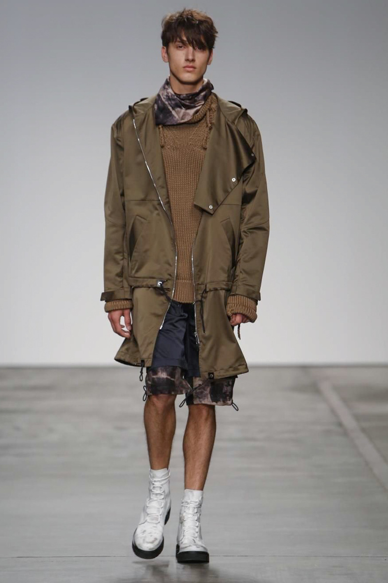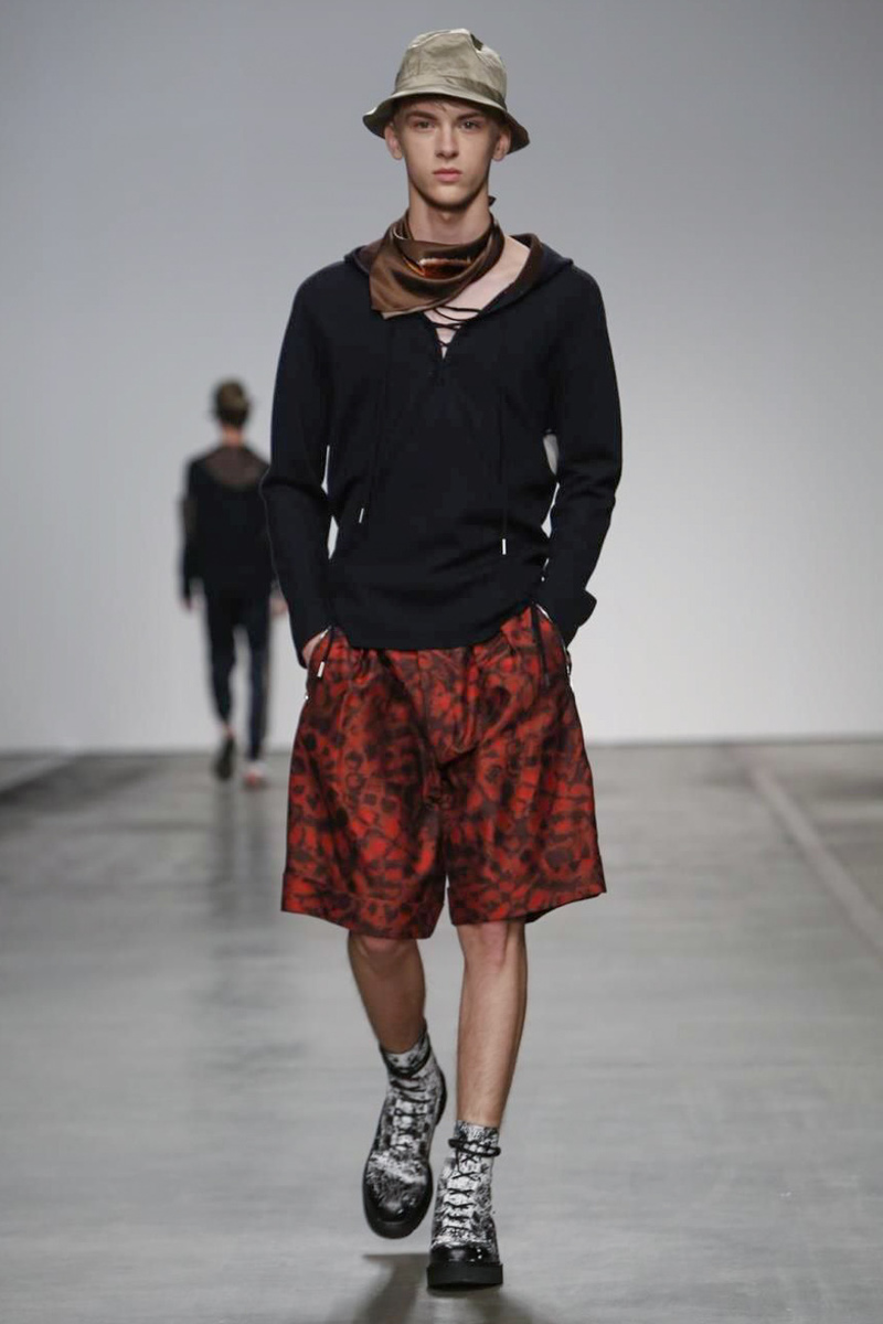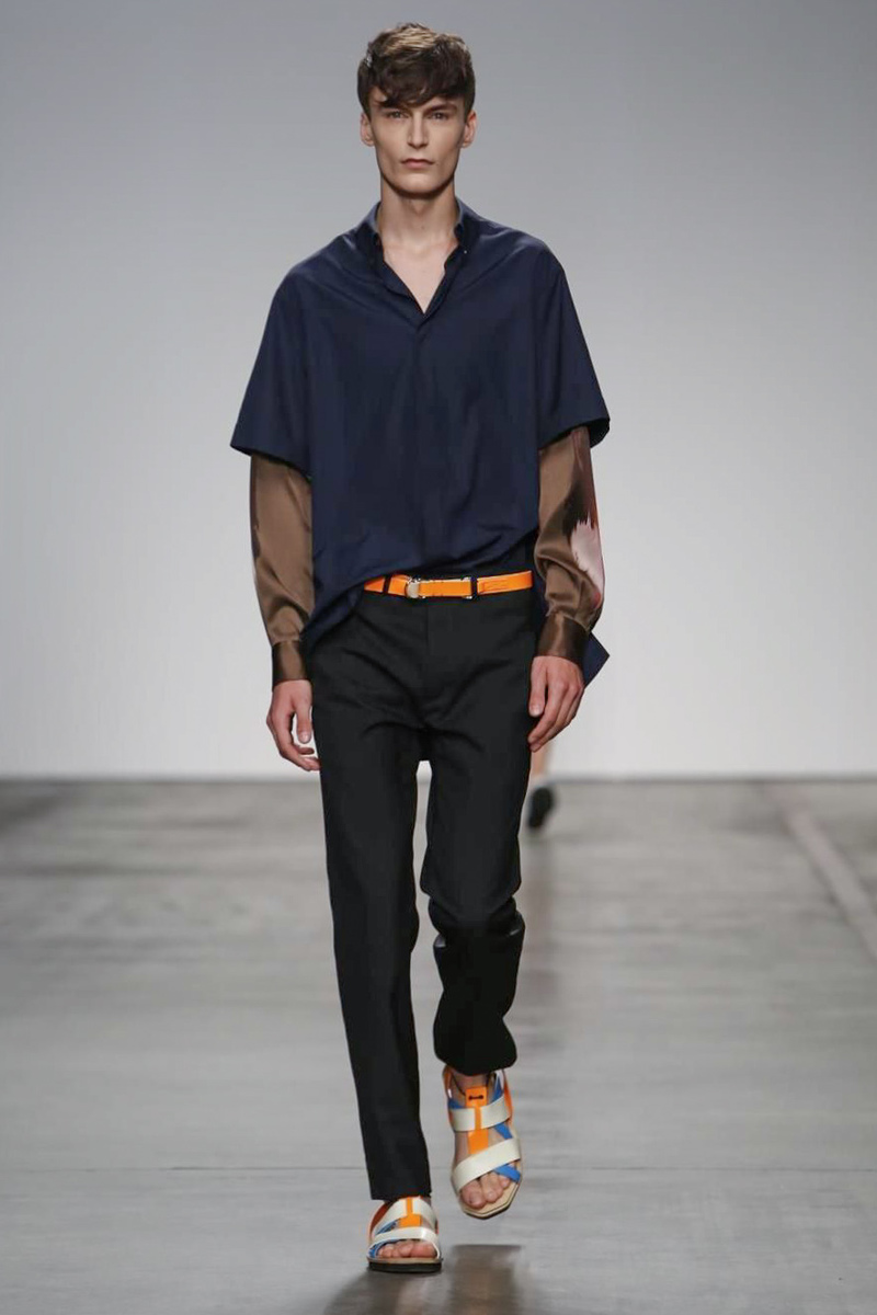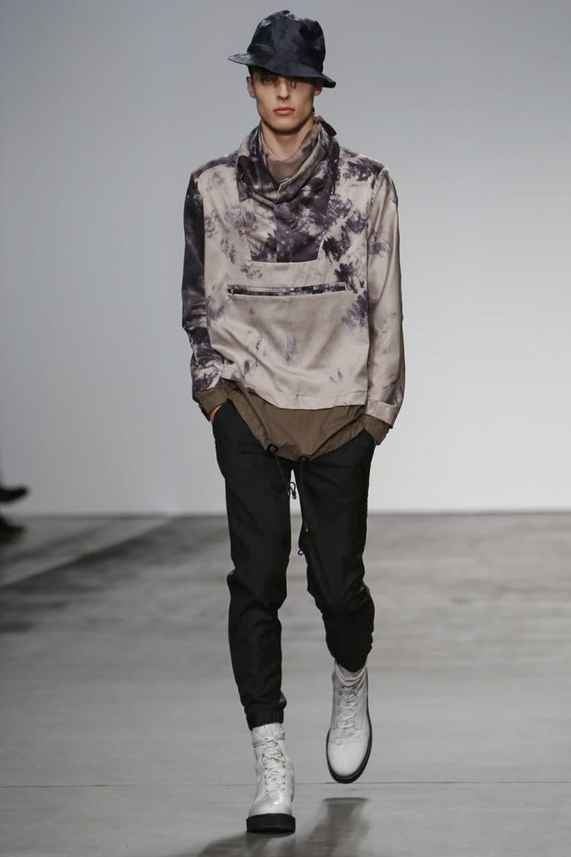 Iceberg experiences a ‘Rebirth in Nature’ for its spring/summer 2015 collection. Embracing a sporty style motif, the Italian label takes a deep journey into nature, finding somewhere along the path a 1990s-inspired street style. Here, soft shapes are conveyed with a natural ease of motion. Picking up tones from the journey, earthy hues are contrasted against a print of the sky and floral-inspired pops of color. Here, printed jackets are met with short-sleeve button-downs worn over long sleeves, henleys with graphics and active knitwear with halved sleeves. Add to the mix windbreakers, loose-cut trousers, skinny belts and shorts with an adjustable hem width for a true active experience.
