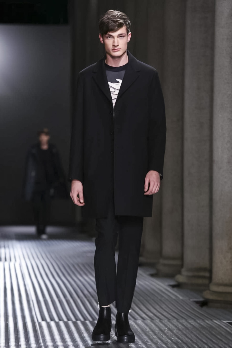 English designer Neil Barrett kicked off his spring/summer 2015 show with a clean pure white canvas, applying prints and graphics as his colors. Continuing an effortless cool and smart style that has become the brand’s synergy, Barrett delivered short jackets, sweatshirts, bomber jackets and more. Worn with slim-cut pants and confined to a few select neutrals, the range, which was paired with trainers and ankle boots provided for the man of style, who is on vogue whether wearing a classic camel colored coat or dressing down in designer sweatshirt.