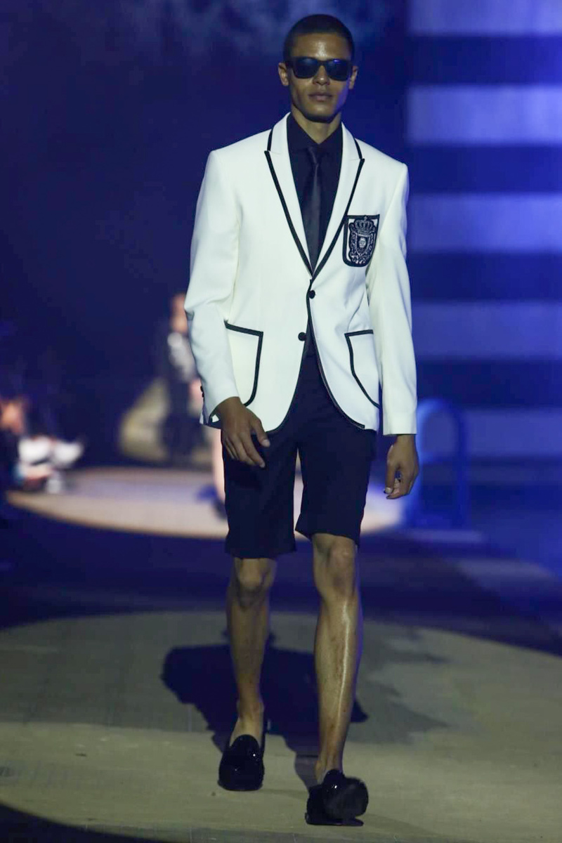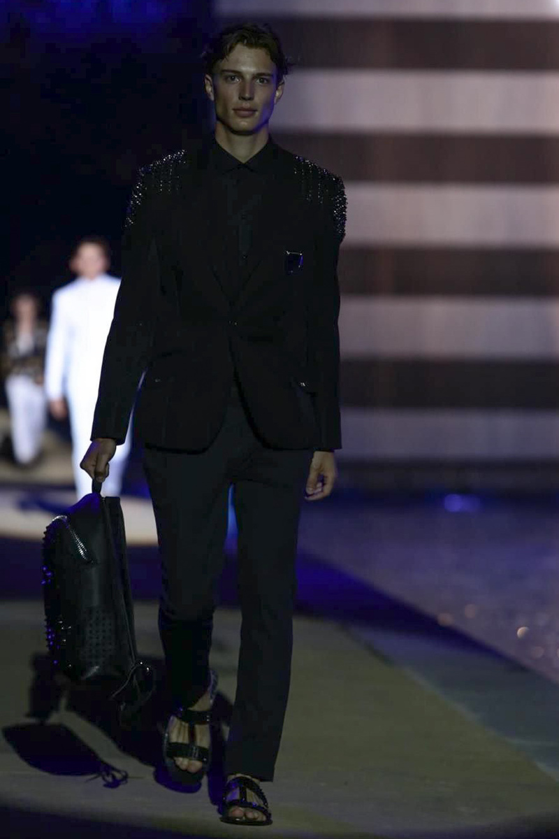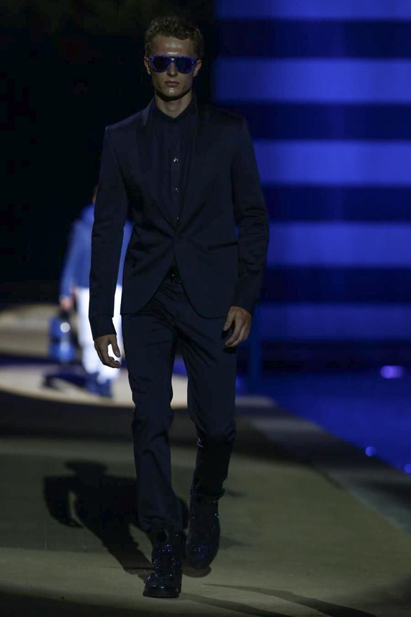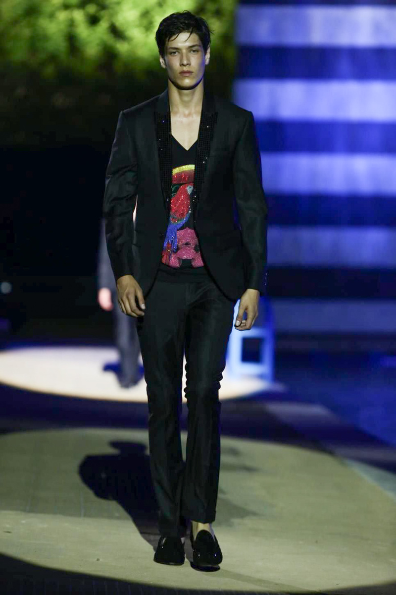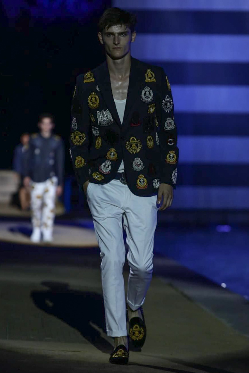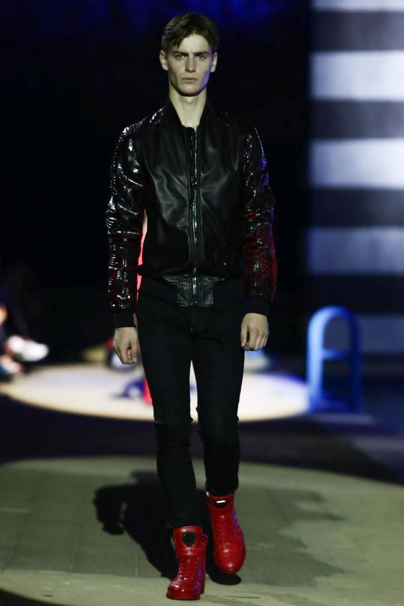 Designer Philipp Plein staged a flashy show for his spring/summer 2015 collection. Bringing back to life a public swimming pool long forgotten, Plein delivered his latest range poolside. Hitting the catwalk to the sounds of Theophilus London, nautical looks were delivered with the addition of the designer’s signature flamboyance. Here, ripped denim coexisted with emblem covered robes and piped tailored jackets. Striped v-necks and denim jackets also made the collection, contributing to a casual season with a bold voice.