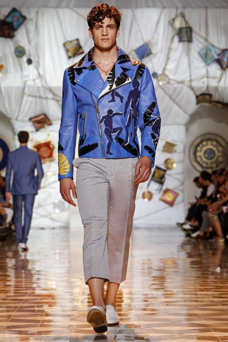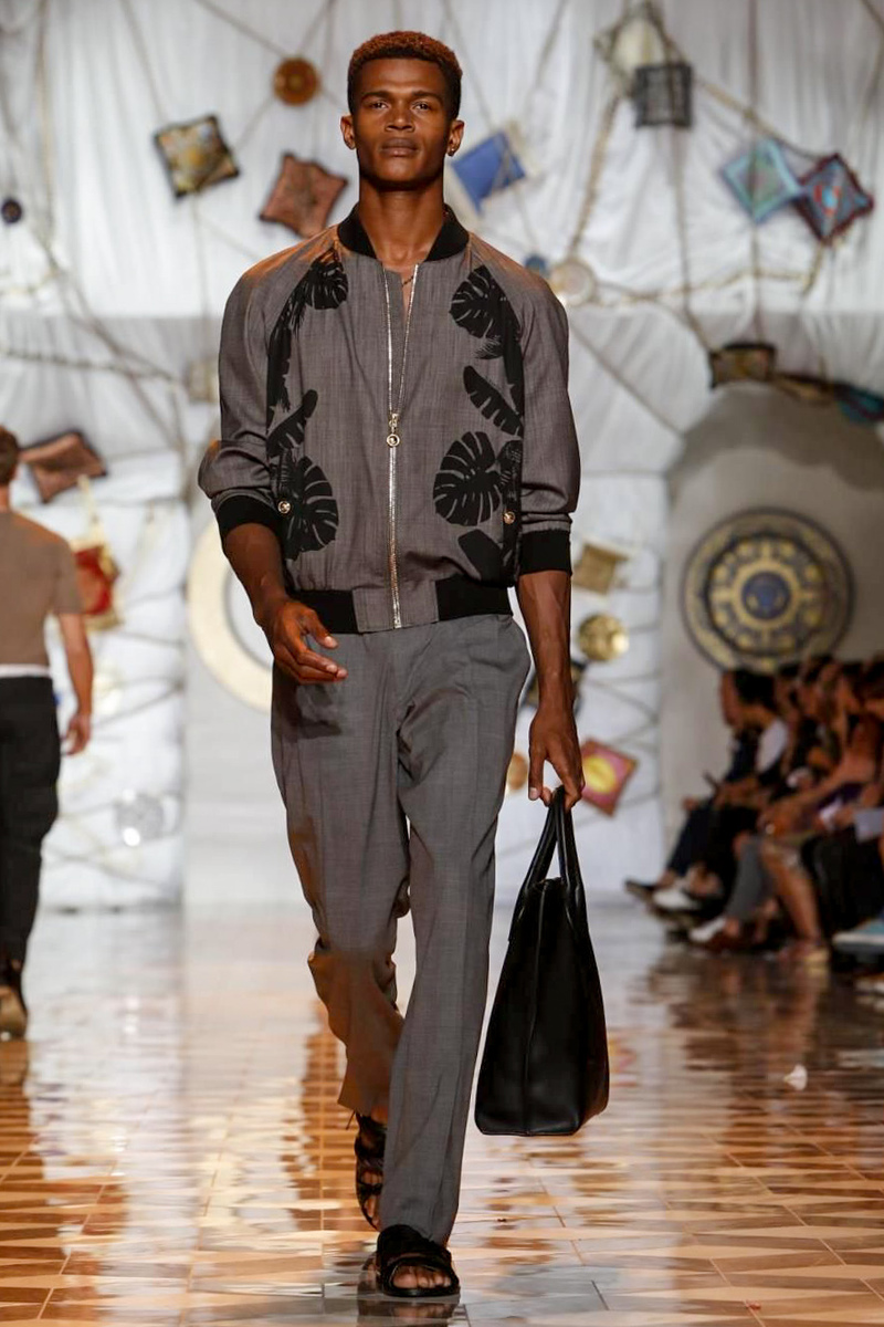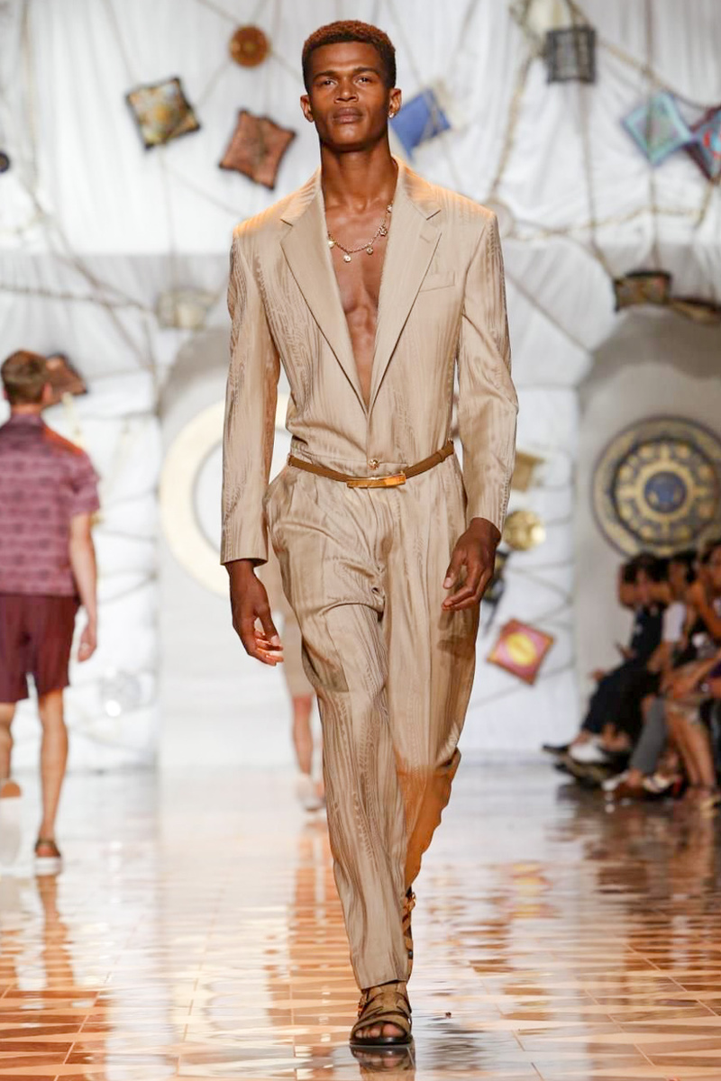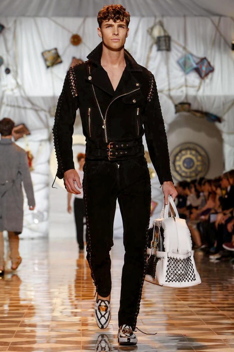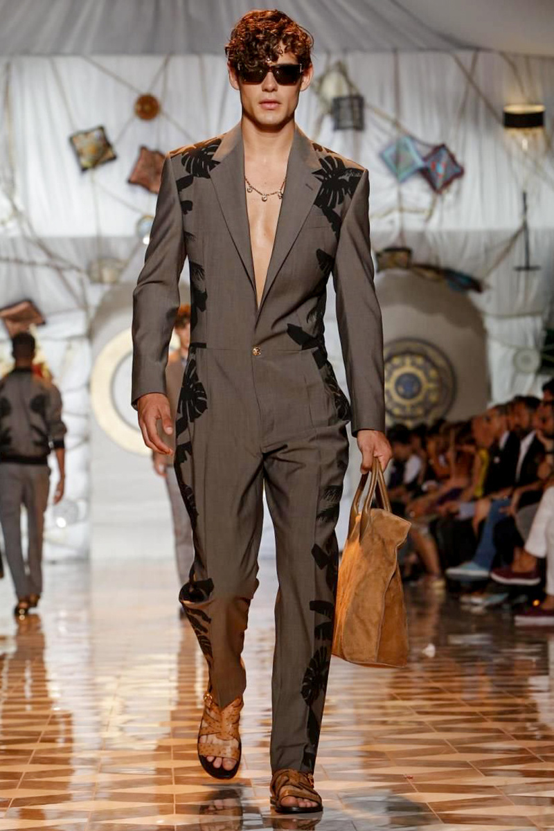 The house of Versace looked to the streets of Havana, mixed with its heritage for inspiration this season. Suiting was laid-back with tailored garments getting a colorful infusion of spirit. Meanwhile, sportswear in camel hues gave way toswimwear in a crisp white. Swimsuits, sheer tanks and more boasted a Roman attitude before revisiting Havana with Cuban graffiti prints on leather jackets. Joining the mix, leather and denim made up Versace’s signature pieces like its biker jacket. Rounding out the collection with stylish but utilitarian accessories, items such as a picnic bag carried the label’s homewares.