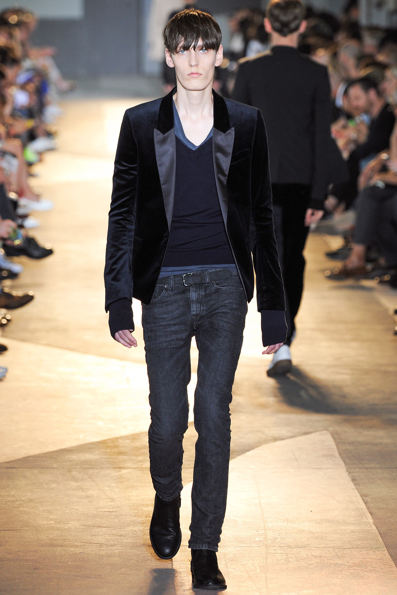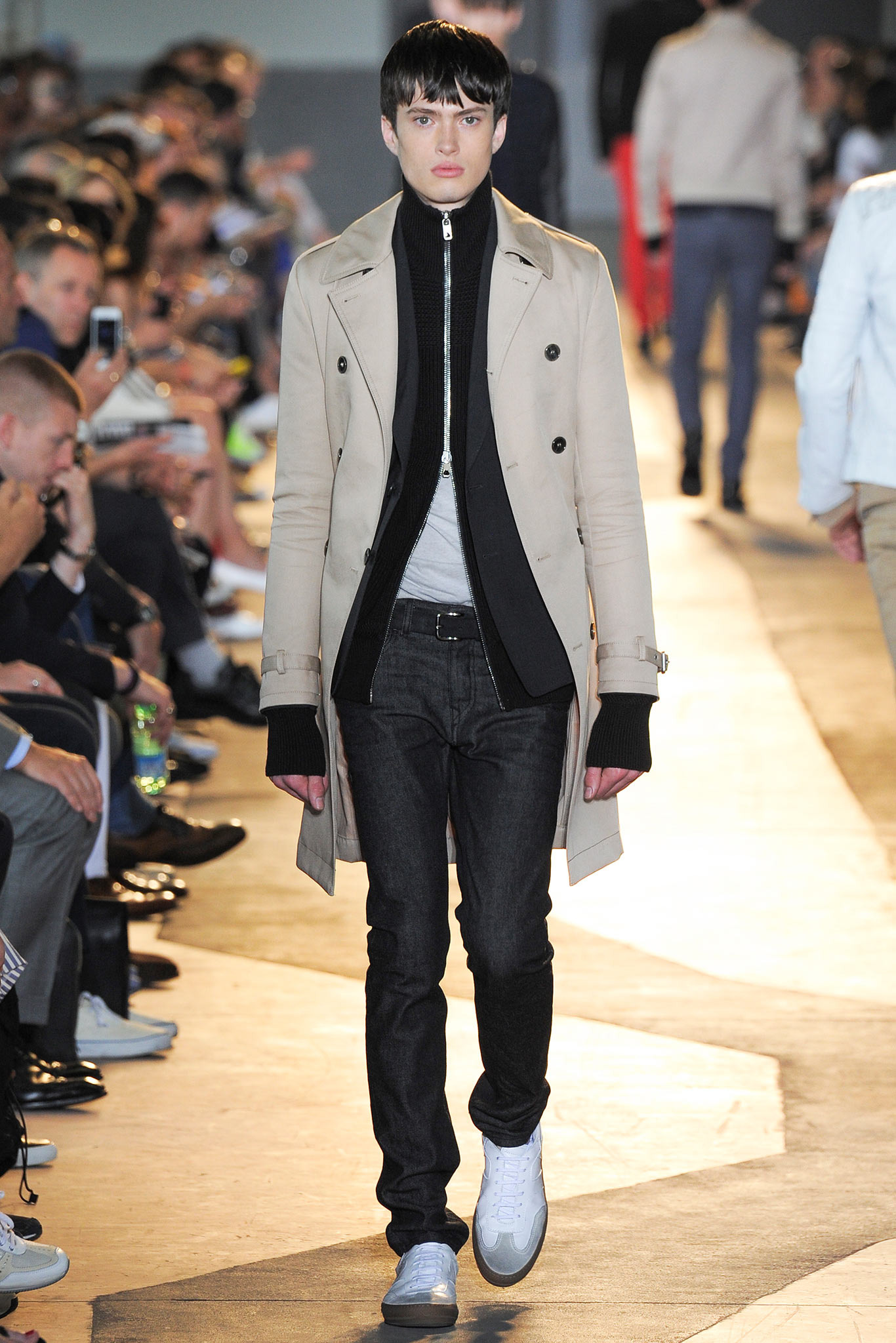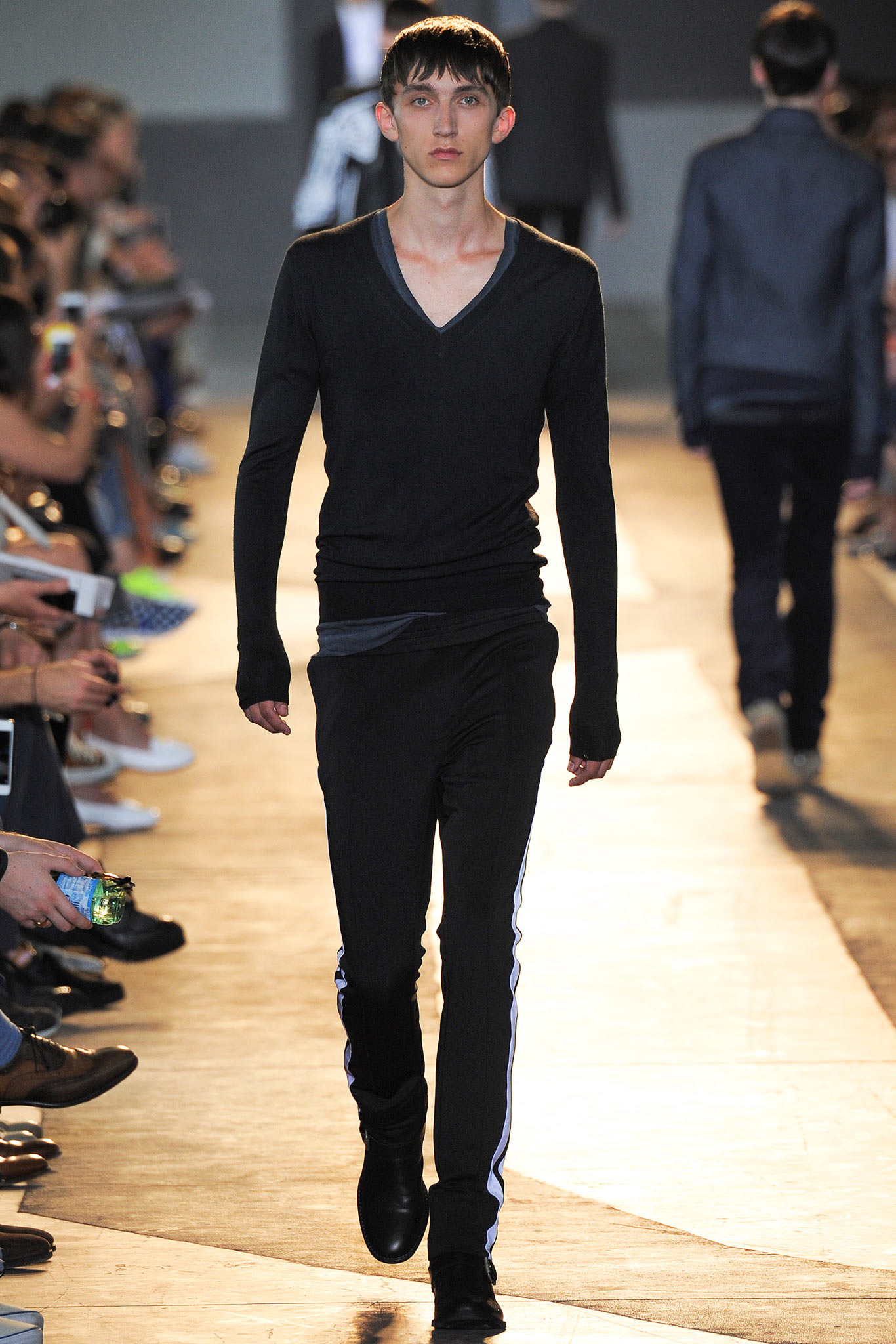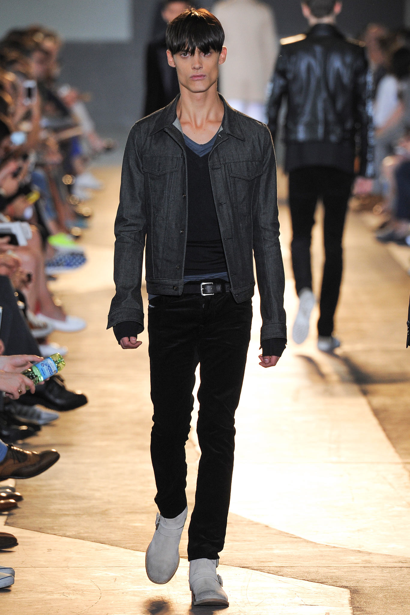 The idiosyncratic look melds Diesel Black Gold’s core vocabulary. Tailoring is layered with sporty tracksuits, denim and corduroy, military jackets inspired by an officer’s uniform and motocross style leather jackets. A street sensibility is created by familiar dress codes. Milan Fashion Week Spring/Summer 2015.