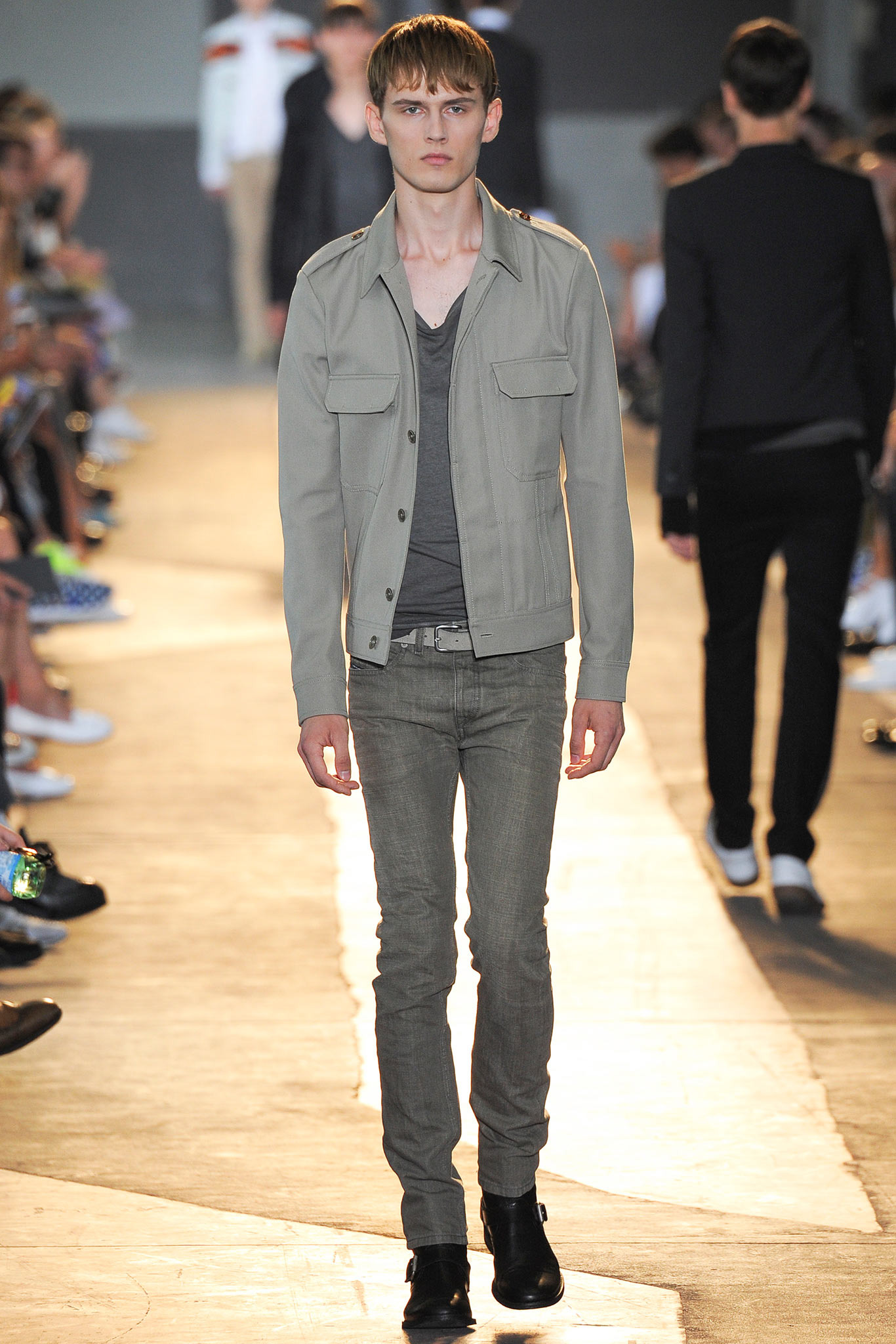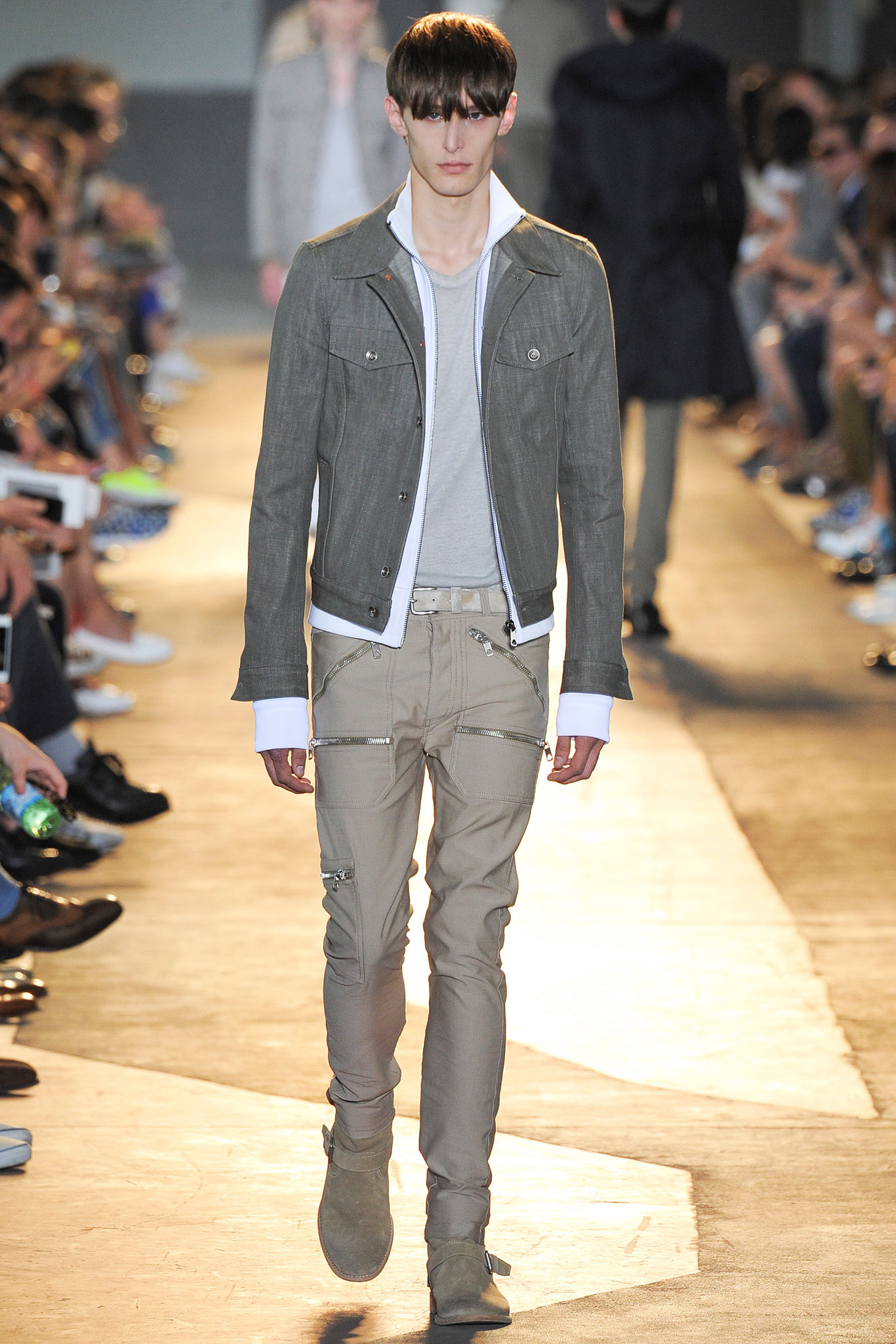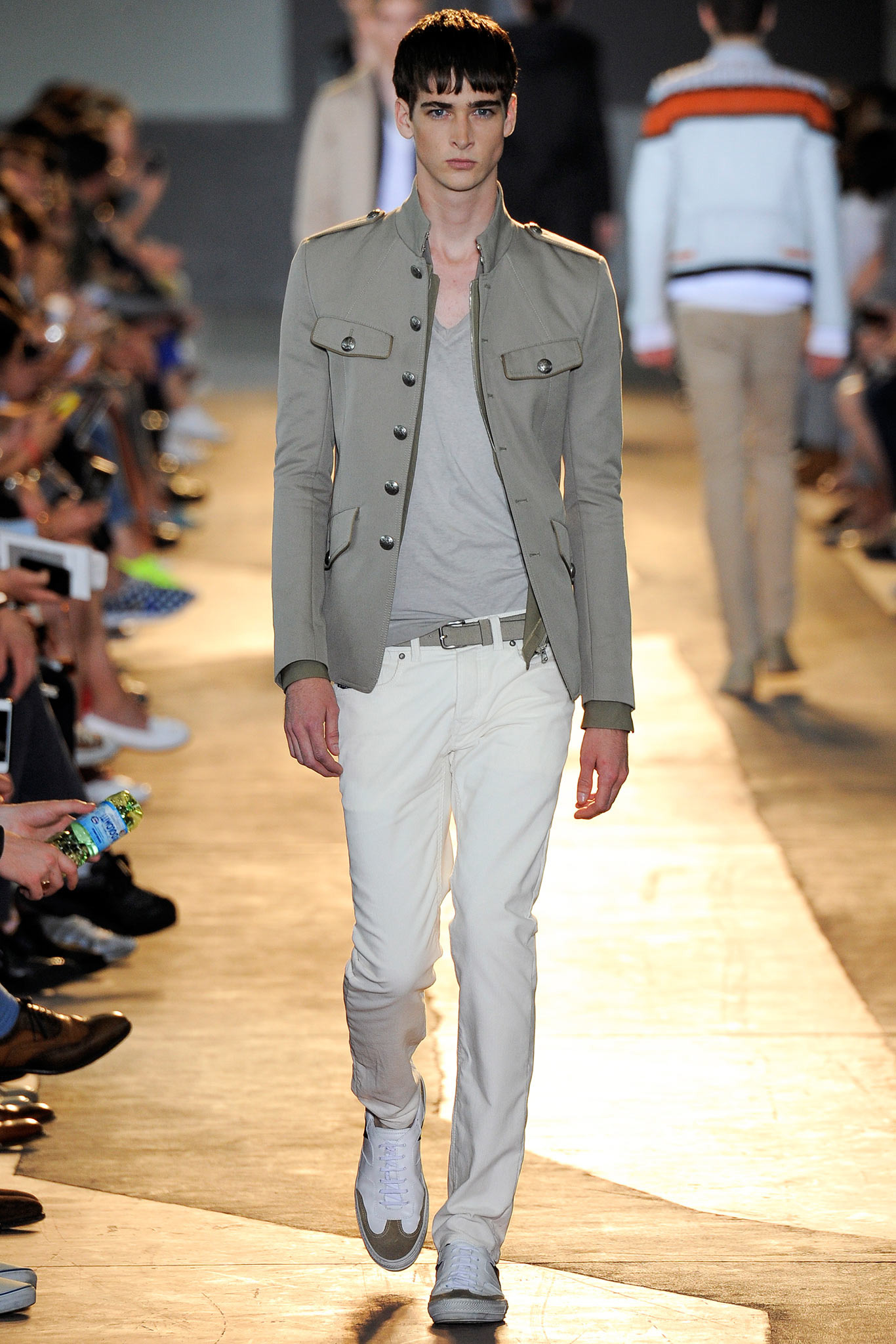 The idiosyncratic look melds Diesel Black Gold’s core vocabulary. Tailoring is layered with sporty tracksuits, denim and corduroy, military jackets inspired by an officer’s uniform and motocross style leather jackets. A street sensibility is created by familiar dress codes. Milan Fashion Week Spring/Summer 2015.