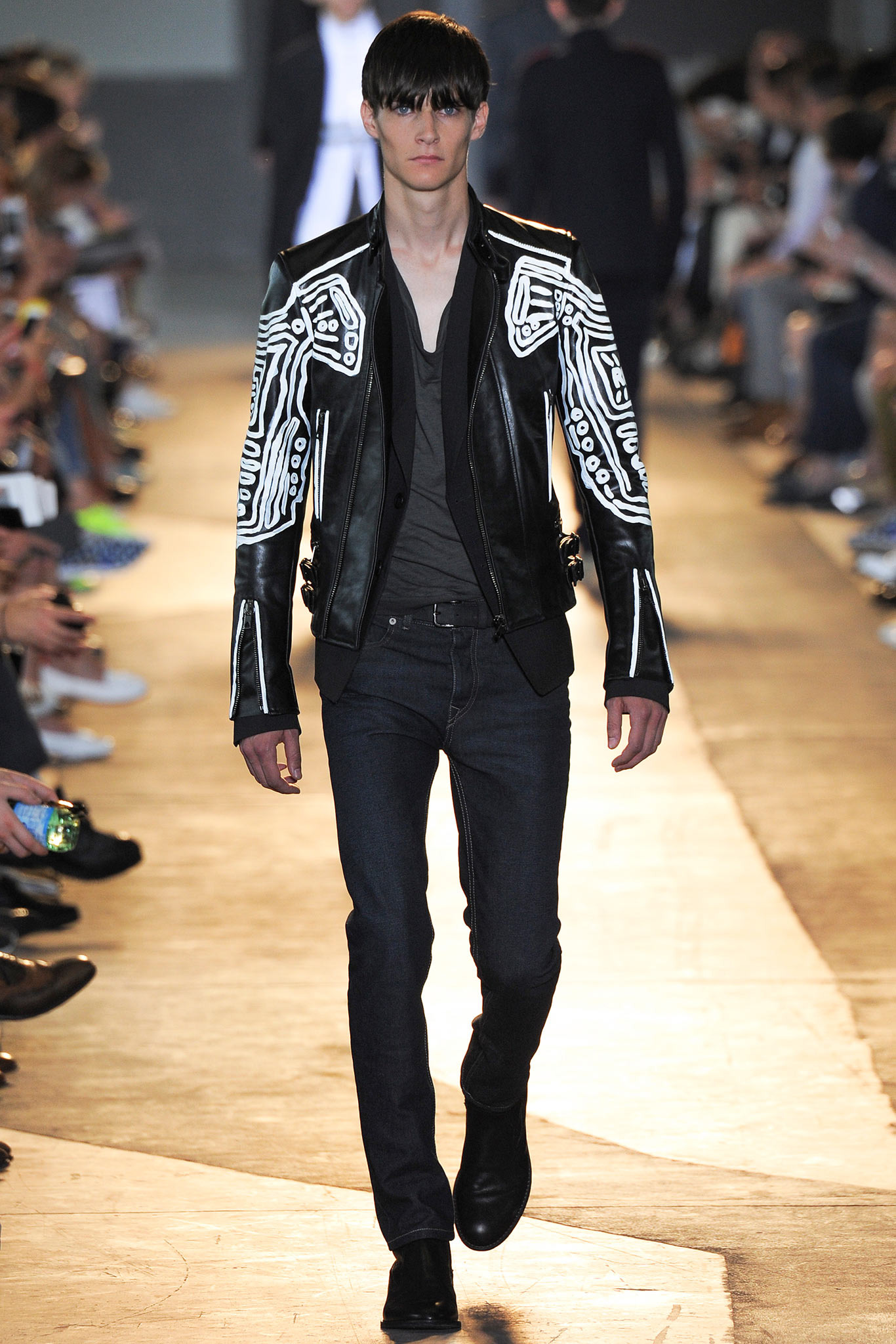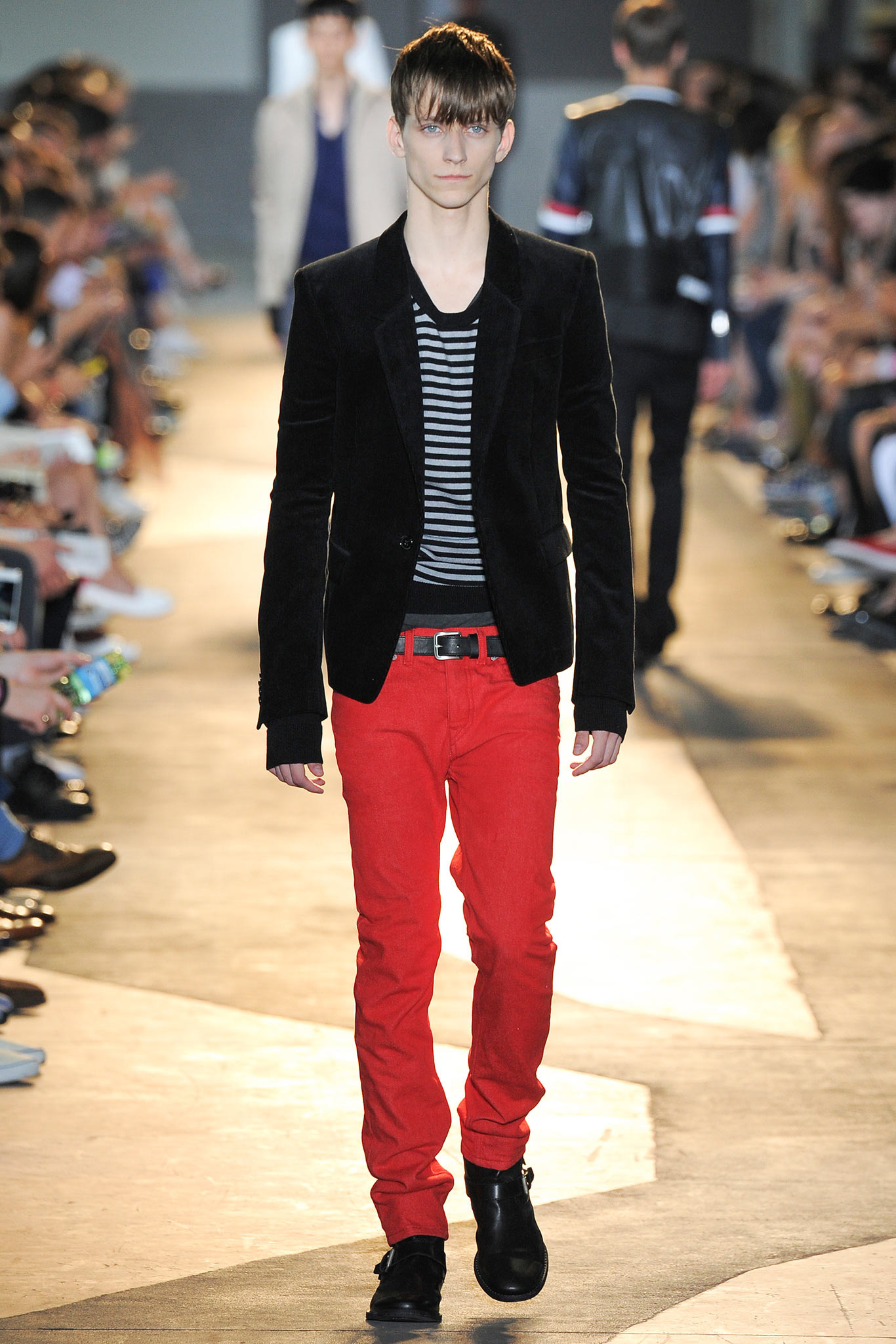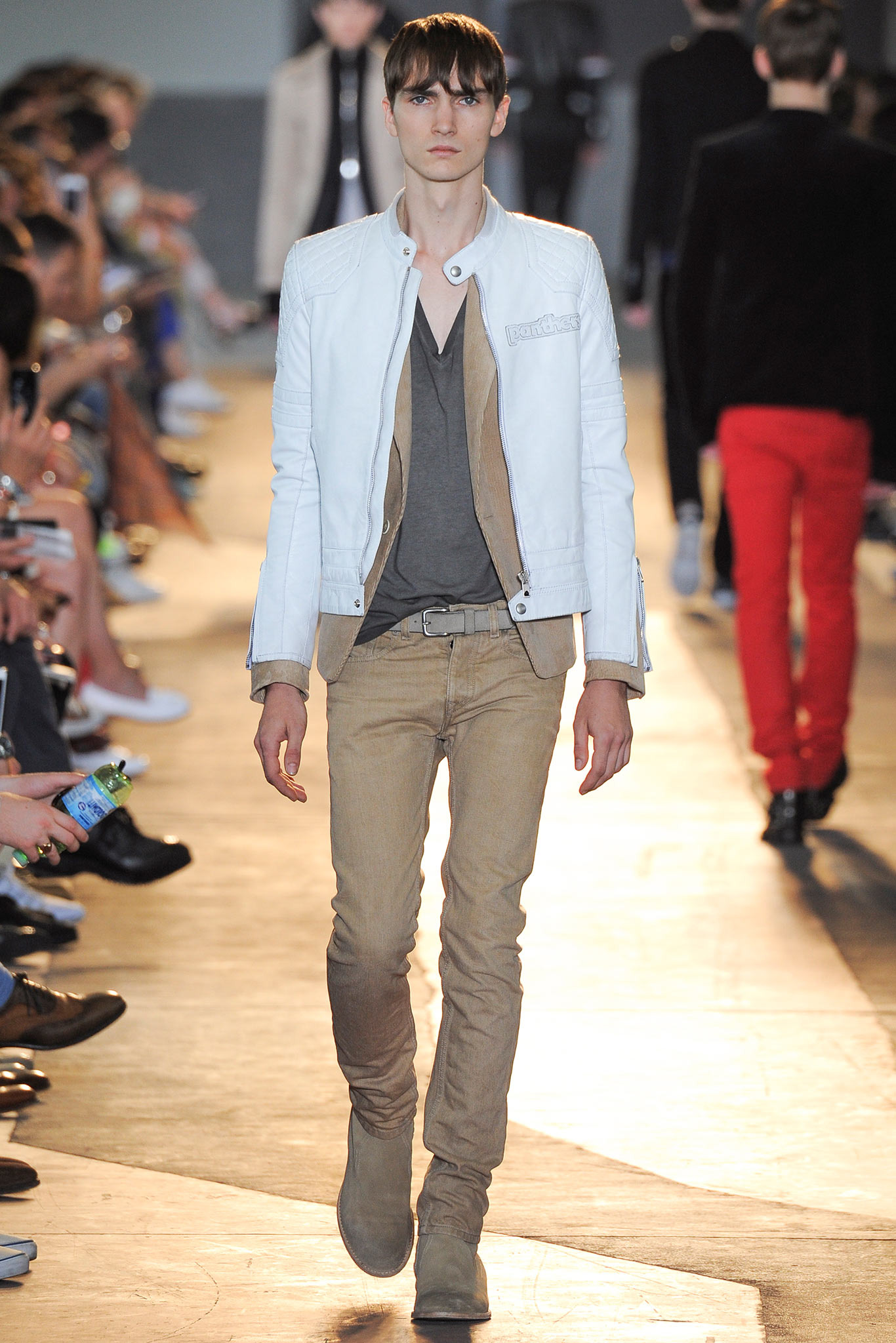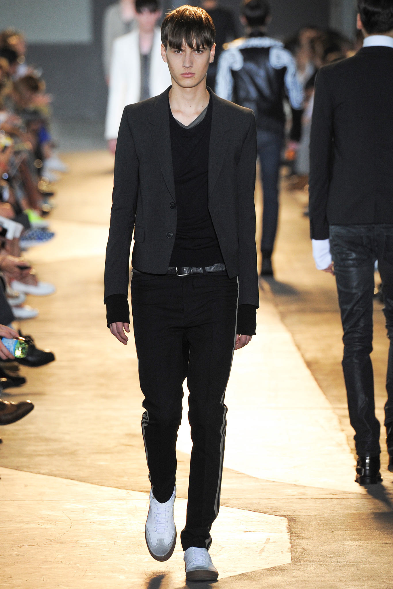 The idiosyncratic look melds Diesel Black Gold’s core vocabulary. Tailoring is layered with sporty tracksuits, denim and corduroy, military jackets inspired by an officer’s uniform and motocross style leather jackets. A street sensibility is created by familiar dress codes. Milan Fashion Week Spring/Summer 2015.