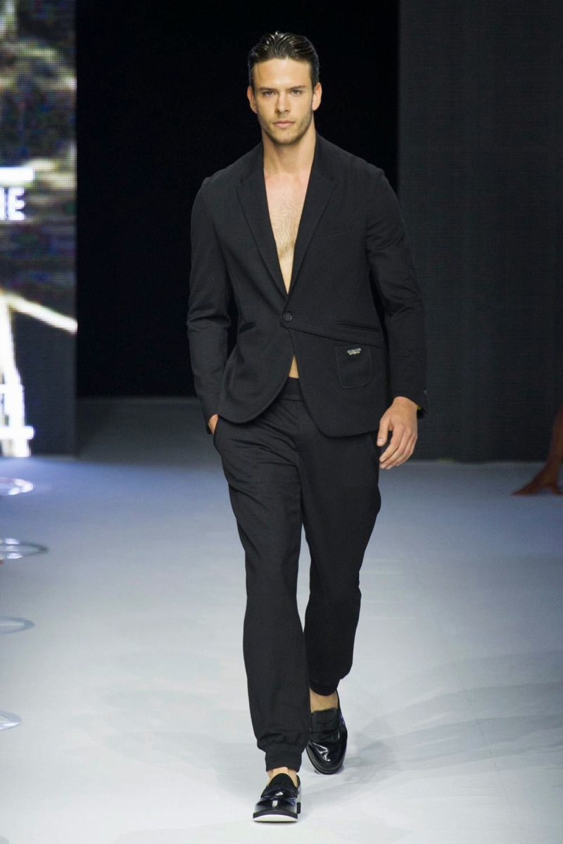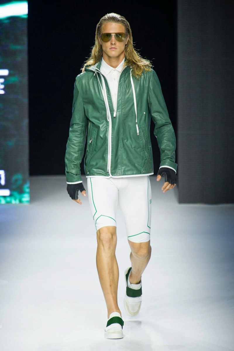 A fashion label that has always been about the athletic man, Dirk Bikkembergs fits right in this season. For spring/summer 2015, the swimmer and his long torso were the stars of the show. Embracing aquatic blues, leggings, open shirts and sporty blazers were right at home. Take a detour with cycling and the shorts were tight and tops relaxed. Stopping off in Shanghai, Dirk Bikkembergs’ collection got playful with biker’s jackets, mesh tops and more mixing in with the sporty essentials already established. Altogether, the collection hit a relevant note for the athlete, marrying style and function.