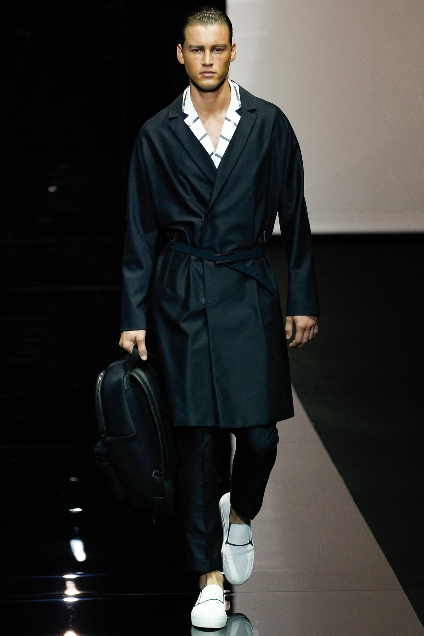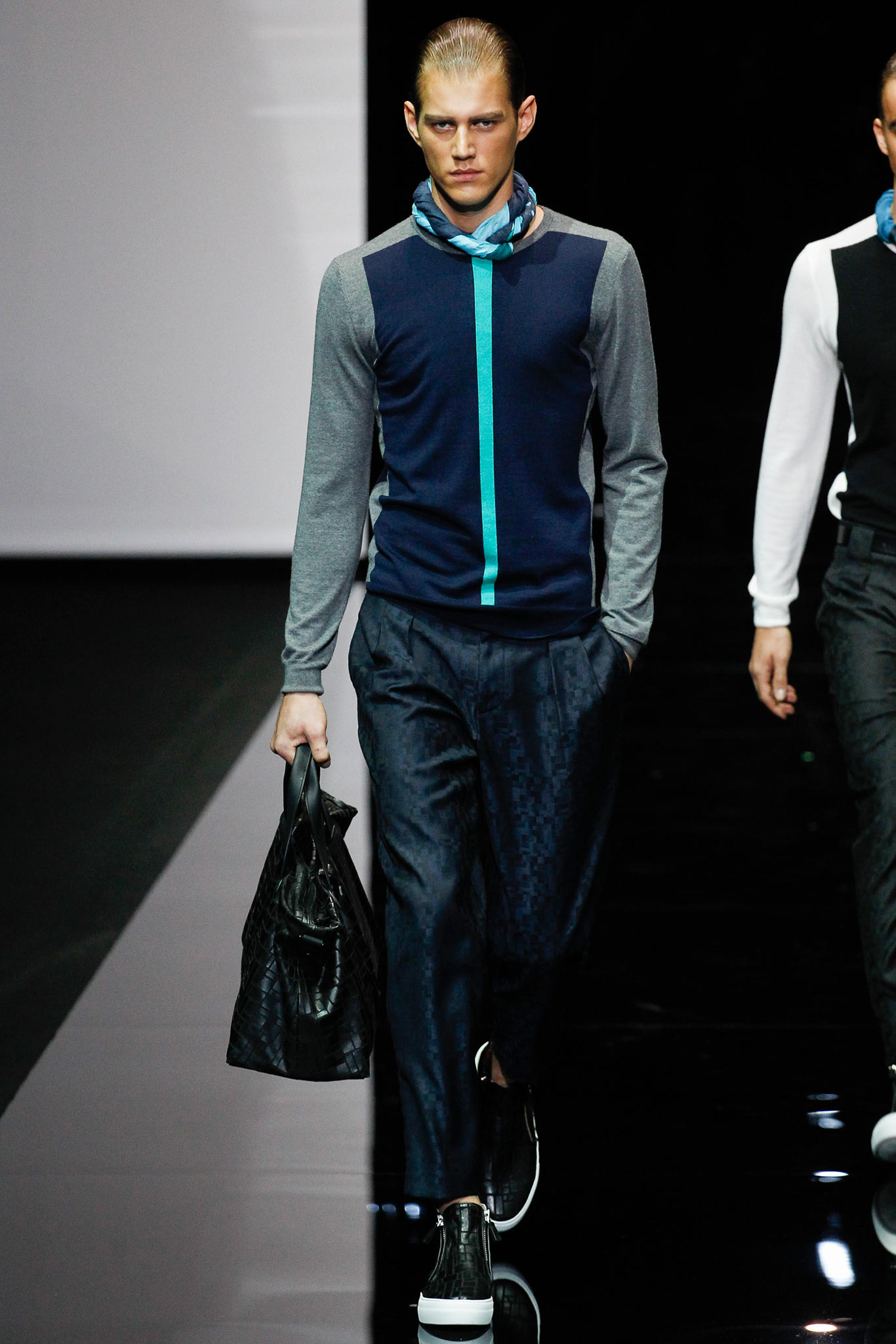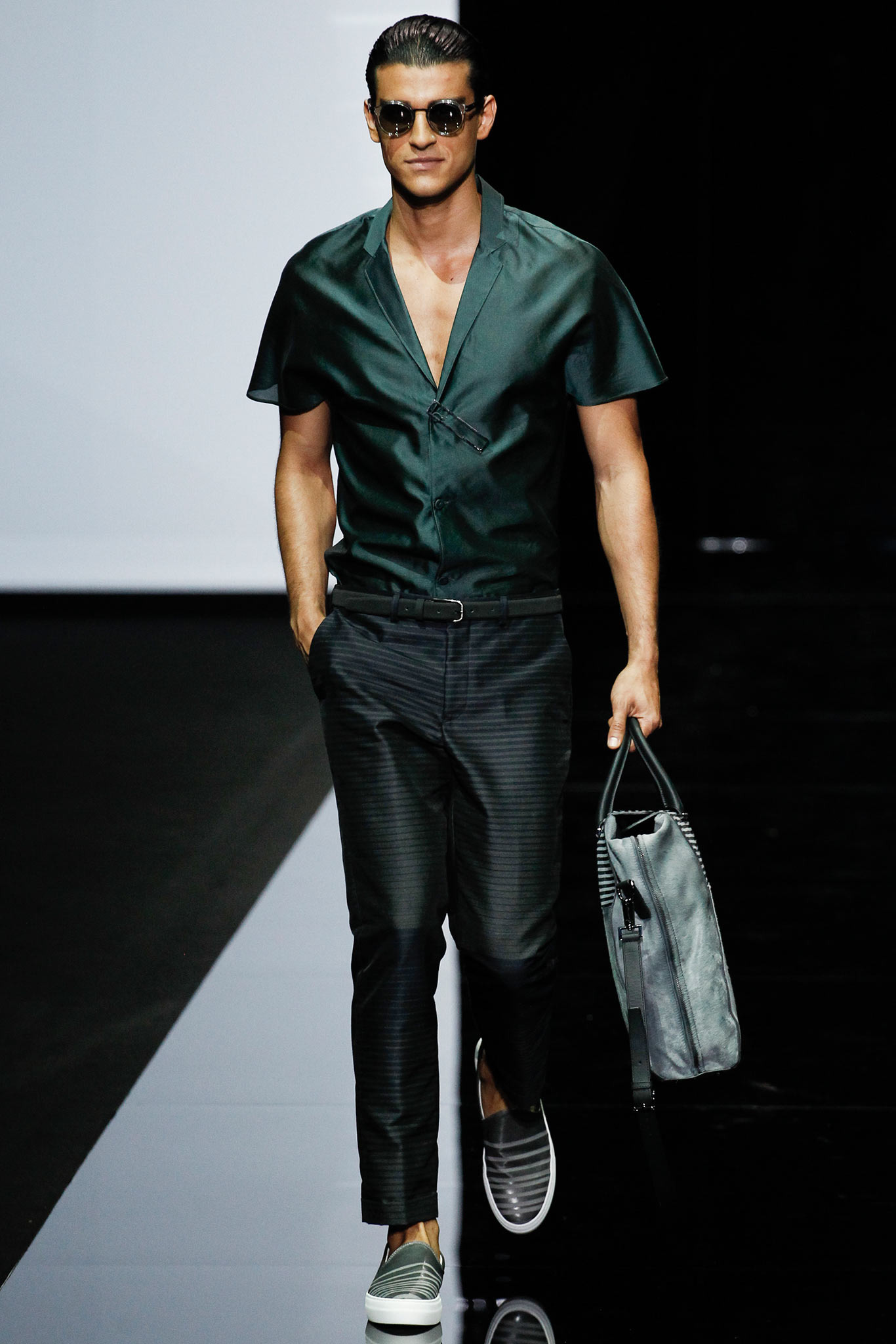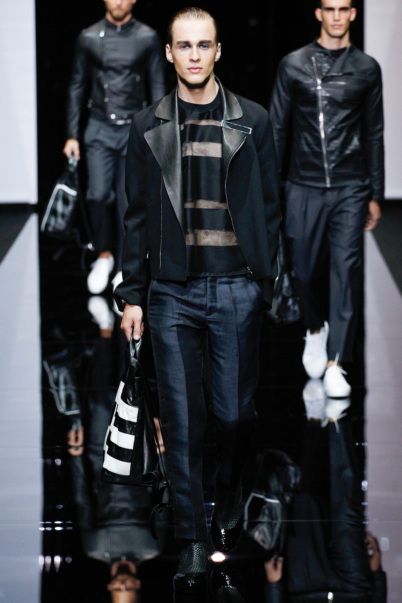 Interestingly enough, Emporio Armani and summer always seem to be a match made in heaven. With each collection, it’s always easy to imagine Giorgio Armani’s man jet setting and vacationing at the best luxury resorts. Contributing to that image, Armani looked to the classic pairing of black and white to lend his spring/summer 2015 collection a direction. Getting graphic, but maintaining an accessible edge, black and white prints were incorporated into a sporty mix that included sports jackets, loose slouchy tops, bomber jackets and pullovers. From checks and stripes to broken lines, shorts, shirts and knitwear were instantly desirable, working in luxe fabrics like silk for a covetable season.