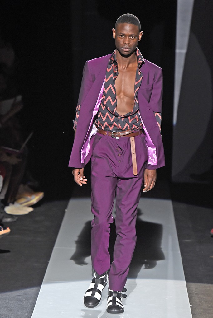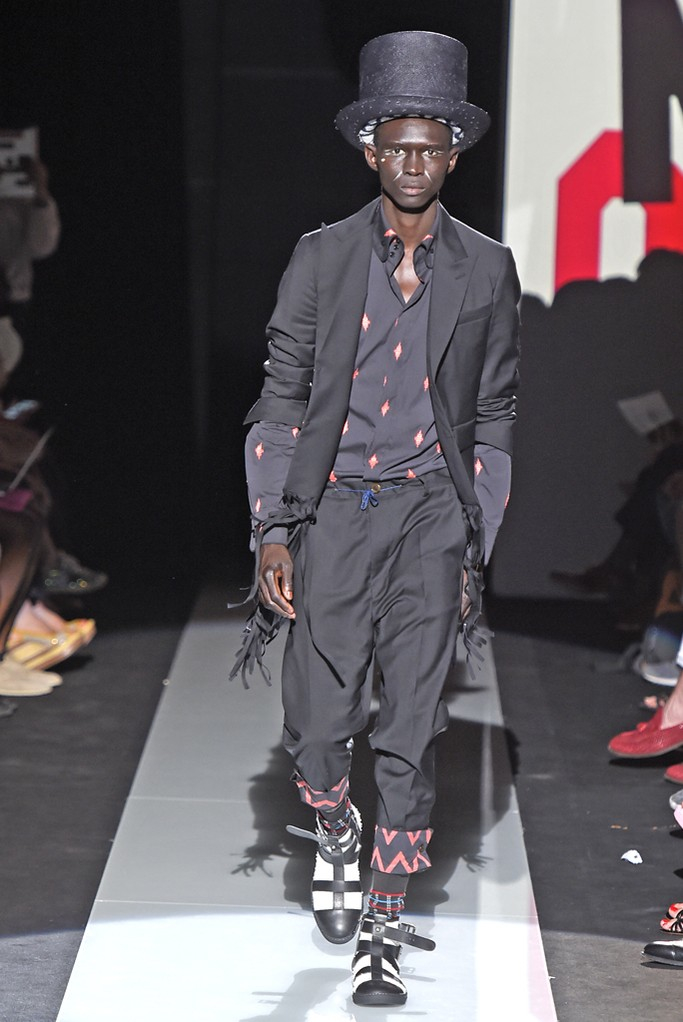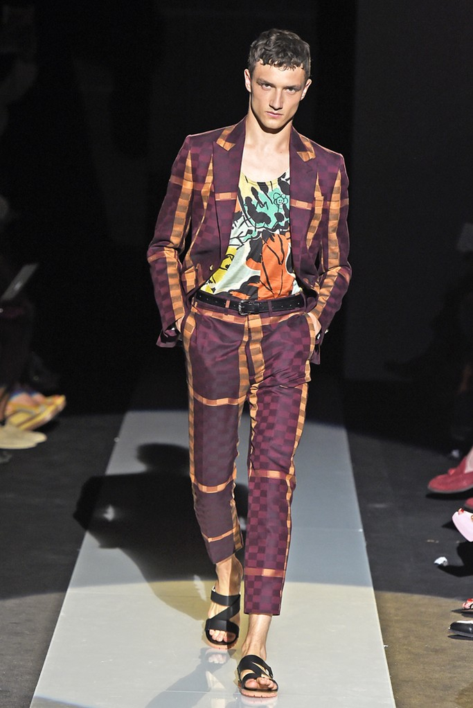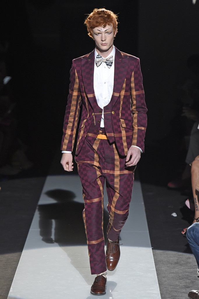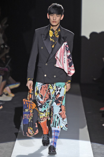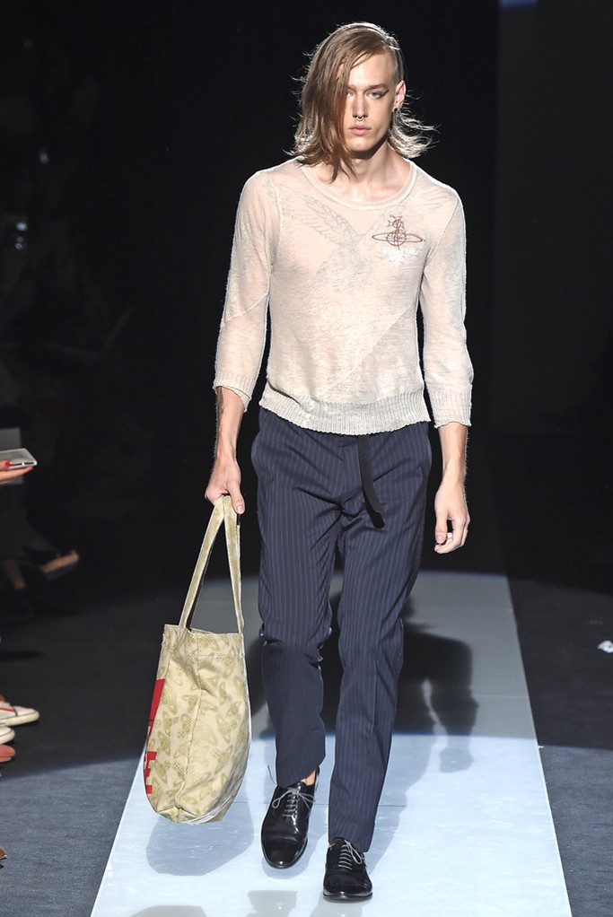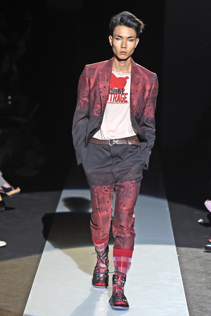 Never afraid to make a statement, designerVivienne Westwood used her spring/summer 2015 collection to continue her protests about fracking, a gas extraction process that could be harmful to local communities. Westwood finds that the by allowing fracking, the government is treating the British people like guinea pigs. The designer explains, “They do not know what it could mean for them, their community, the local and national economy or any potential impact on healthy, agriculture and their general security and well-being. What I would really like to get over to the public is the idea that this experiment that they want to conduct on the UK guinea pig, that it will take between 10 and 15 years before they even know if it is economically viable.” What does this mean for Westwood’s latest collection? The designer delivers varied influences as usual, dressing up her “guinea pig” in tropical prints, Mad Hatter-inspired fashions and protest wear.