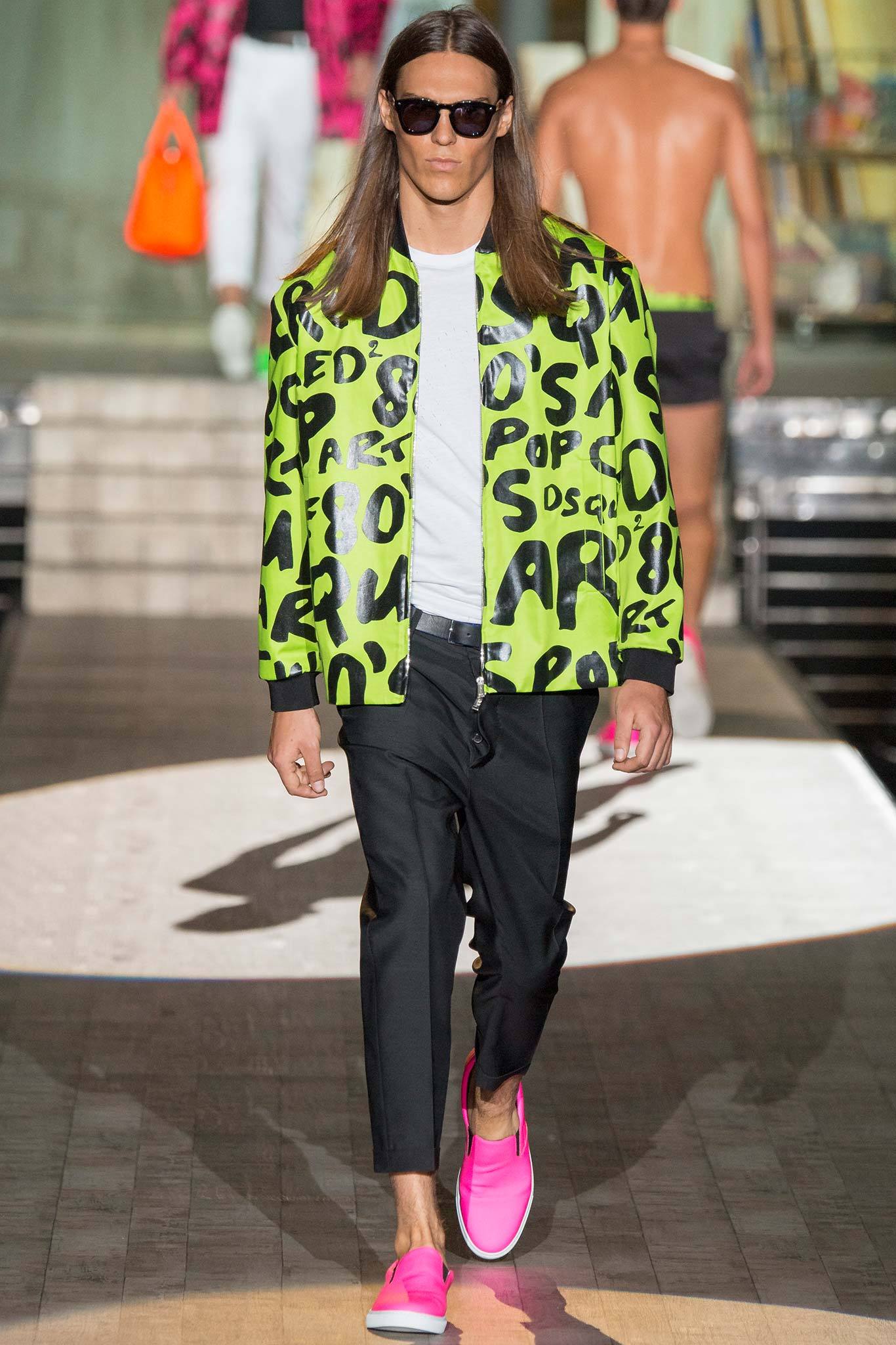 Pop art, and its major figures that played and created in its experimental and colorful world from the 60s to the 80s influences the Dsquared2 men’s spring summer 2015 collection.