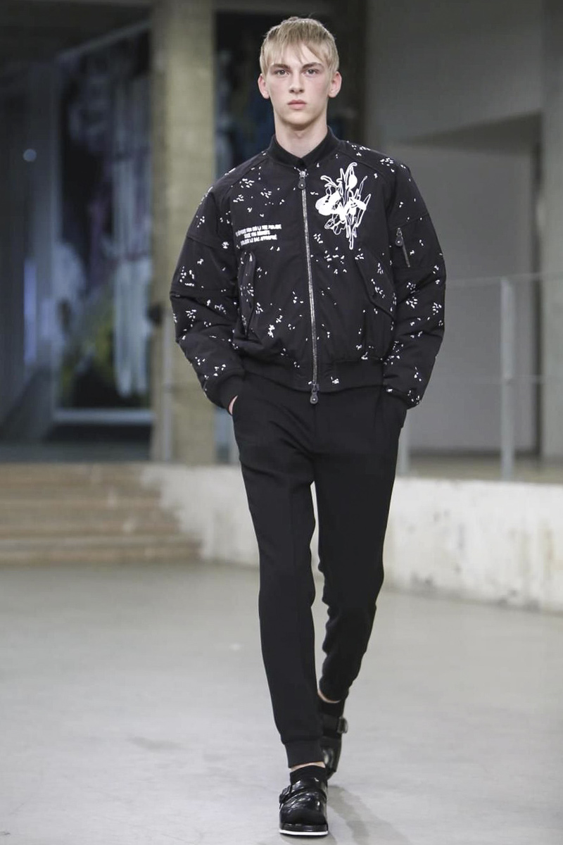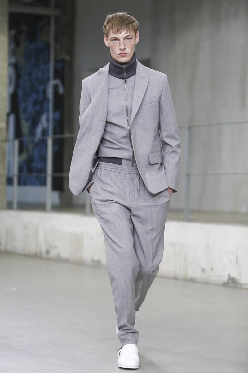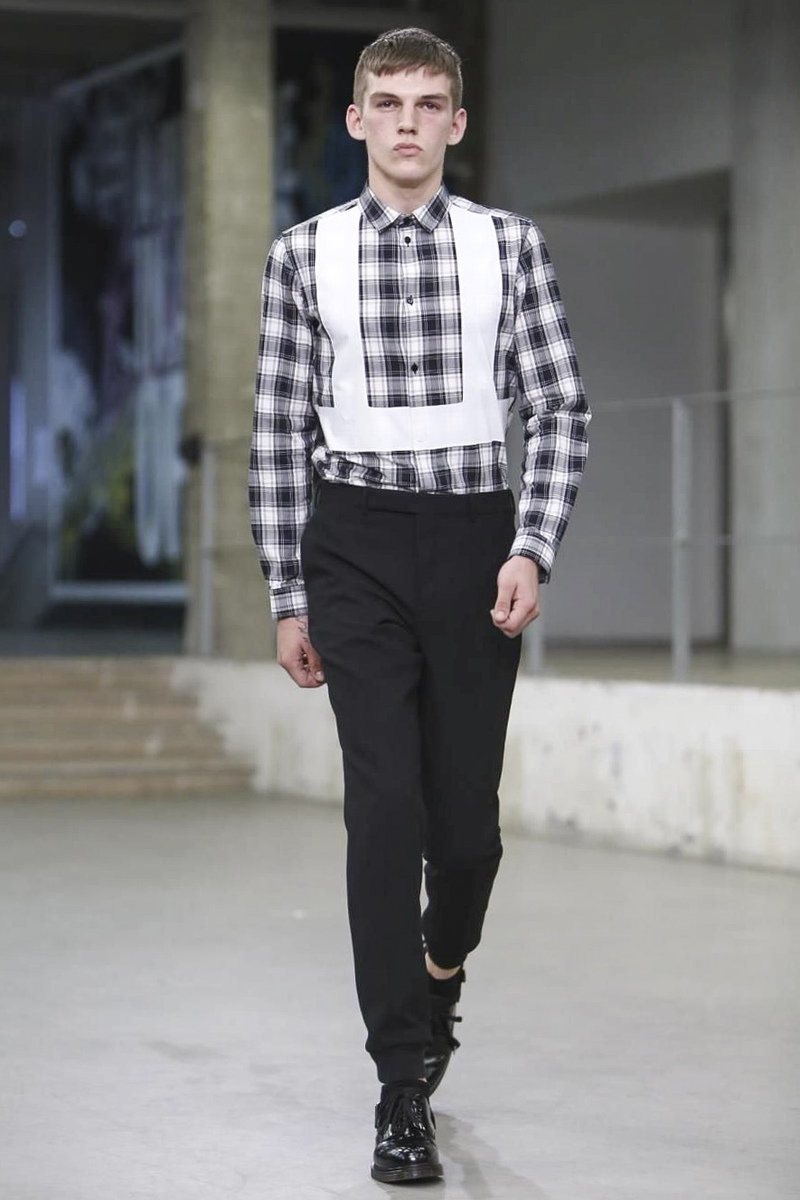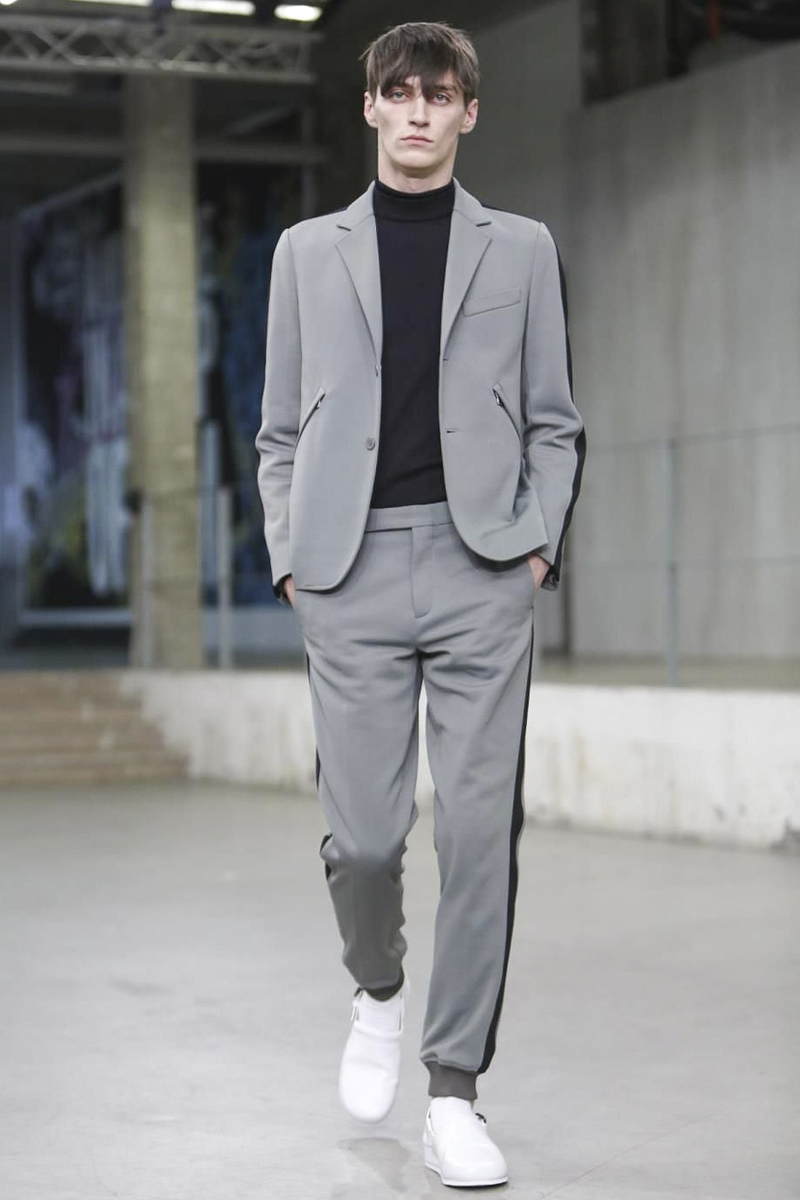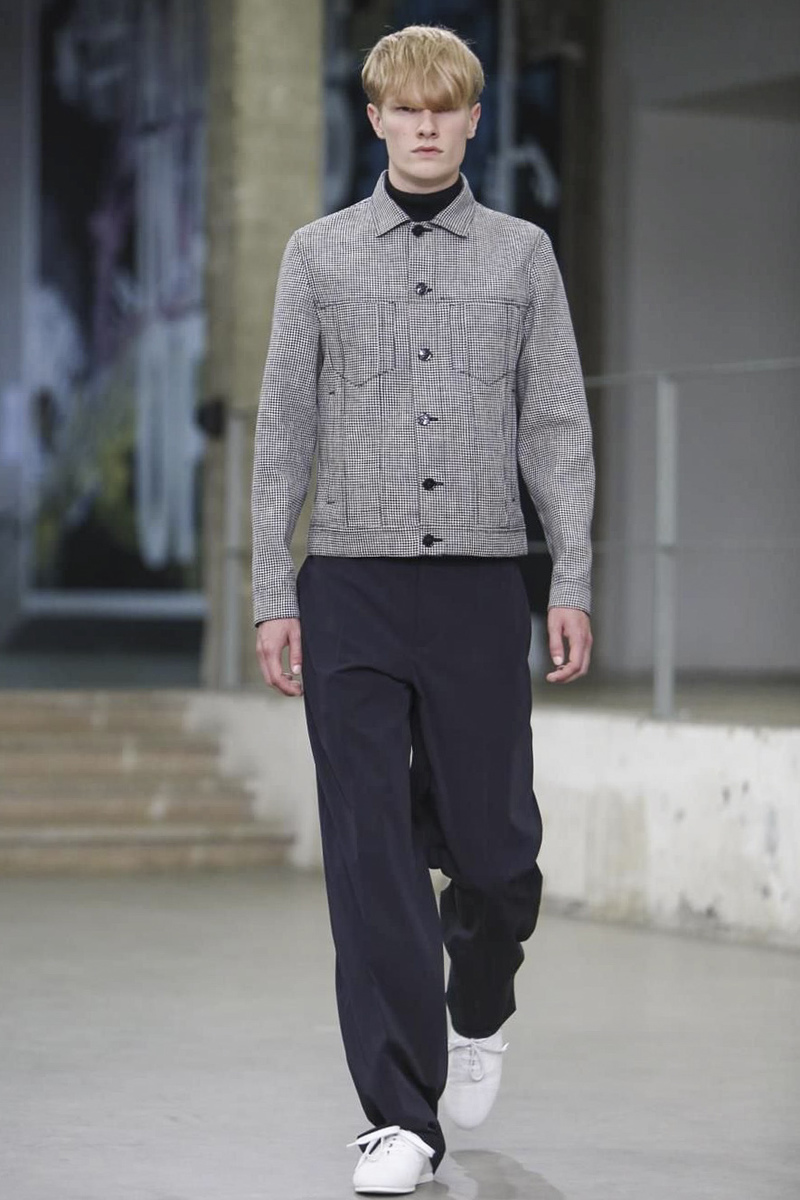 Carven at Paris Fashion Week presented his Menswear. Inspired by the working class, British designer Guillaume Henry brought a simple focus to Carven for spring/summer 2015. Simplifying his designs, Henry contributed to a season that has overall renewed a focus in wearable fashions. Crafting a simple wardrobe with clean lines and relaxed fits, sleek belted coats, jackets with narrow lapels, zipped turtlenecks and v-neck tops were among the accessible pieces offered. Using color blocking for a series of essentials that played with proportions, Henry produced shirting in black and white, constructed with boxy sleeves and a lean fit.