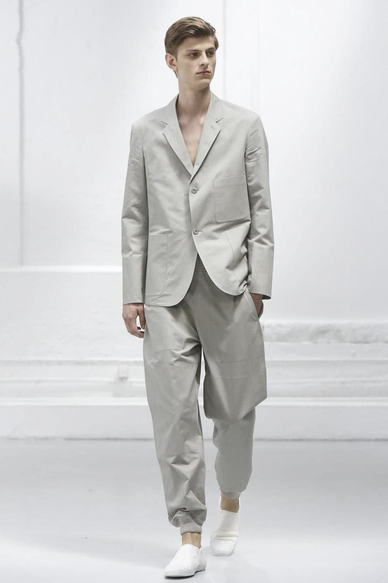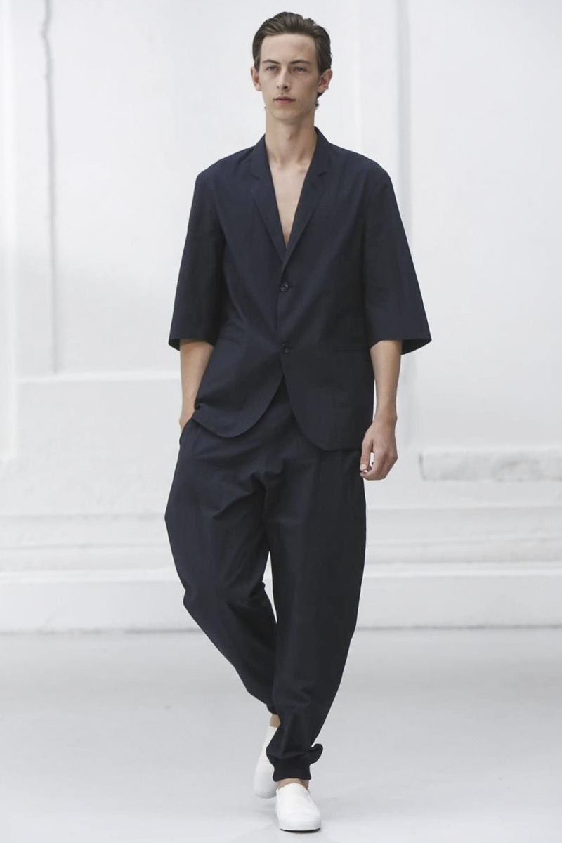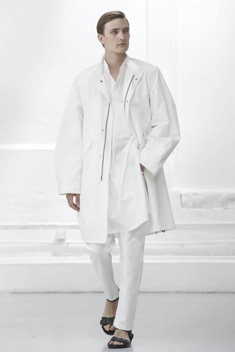 Remaining true to his minimal refined aesthetic, designer Christophe Lemaire took to Paris Fashion Week with a collection of monochromatic ensembles. Relaxed, silhouettes were driven by a subtle eastern influence that resulted in loosely-cut ensembles with a certain refinement. Here, suits, tapered pleated trousers, long oversize coats and other essentials came together with an everyday color palette.