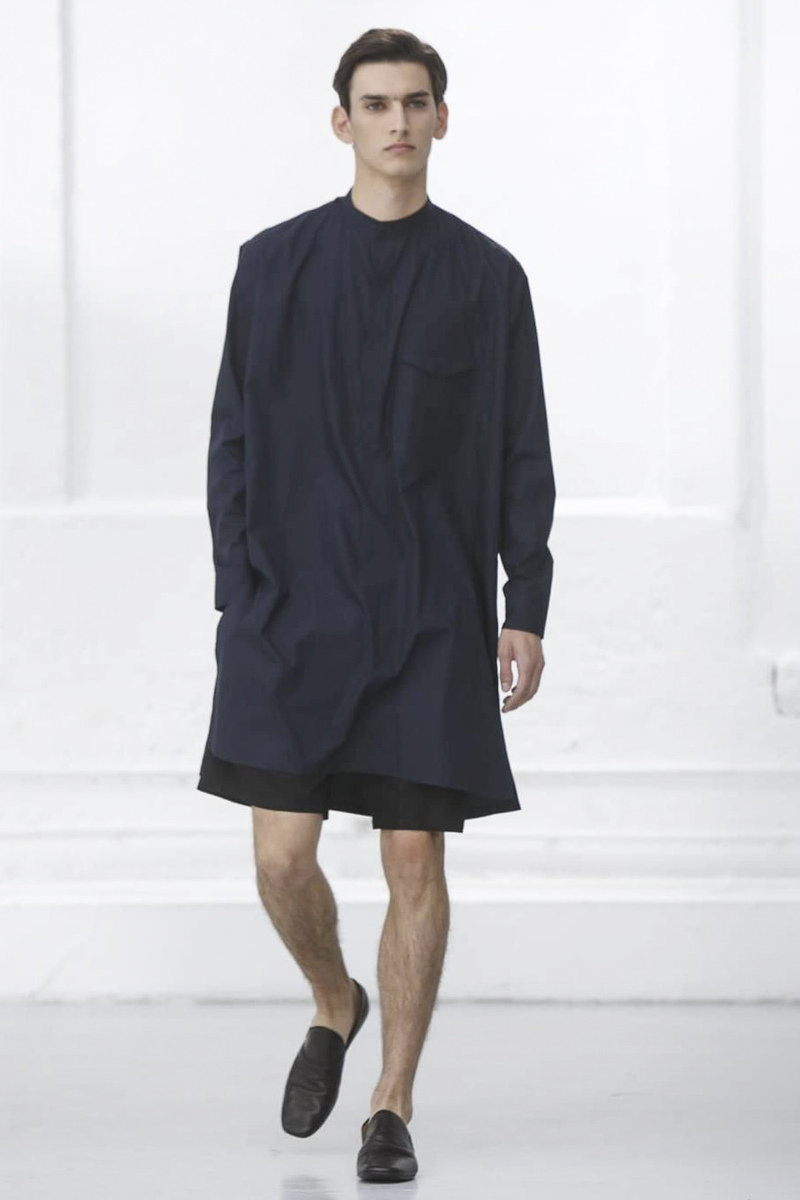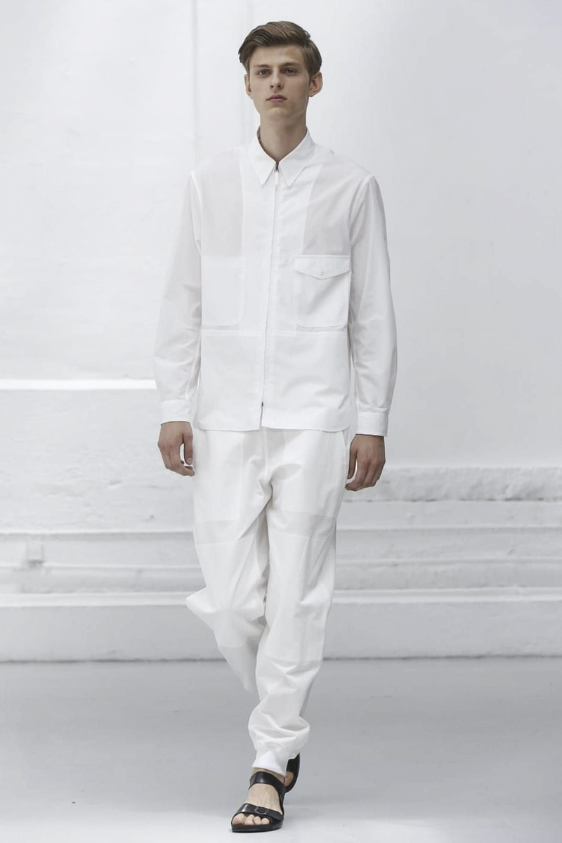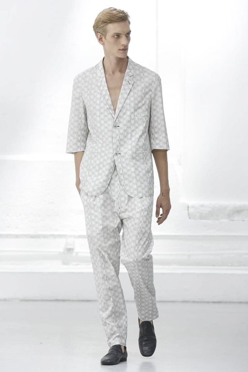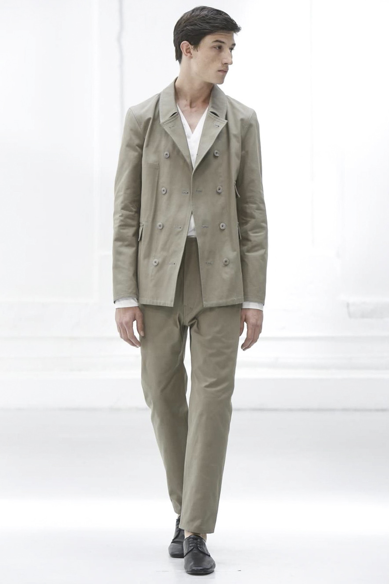 Remaining true to his minimal refined aesthetic, designer Christophe Lemaire took to Paris Fashion Week with a collection of monochromatic ensembles. Relaxed, silhouettes were driven by a subtle eastern influence that resulted in loosely-cut ensembles with a certain refinement. Here, suits, tapered pleated trousers, long oversize coats and other essentials came together with an everyday color palette.