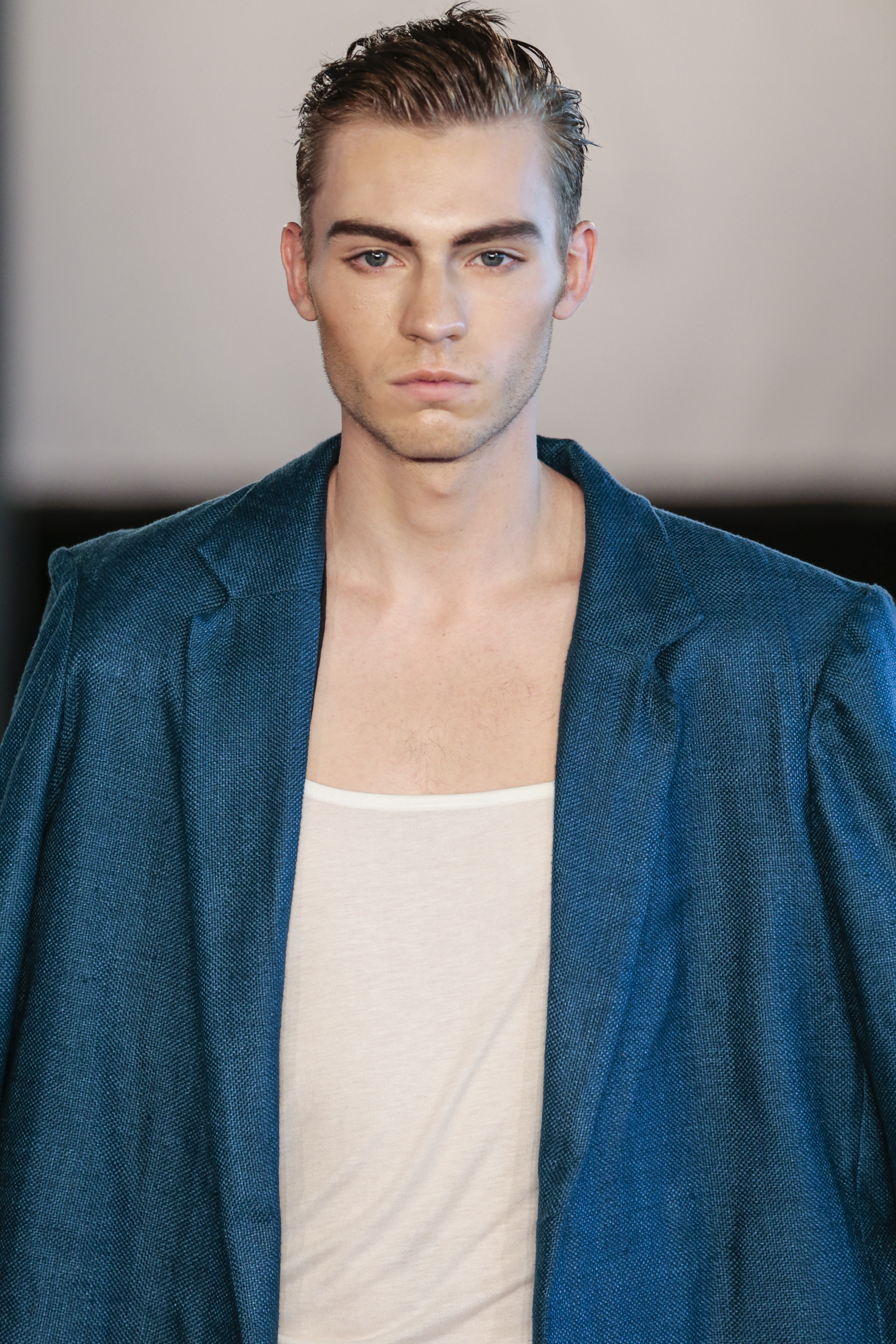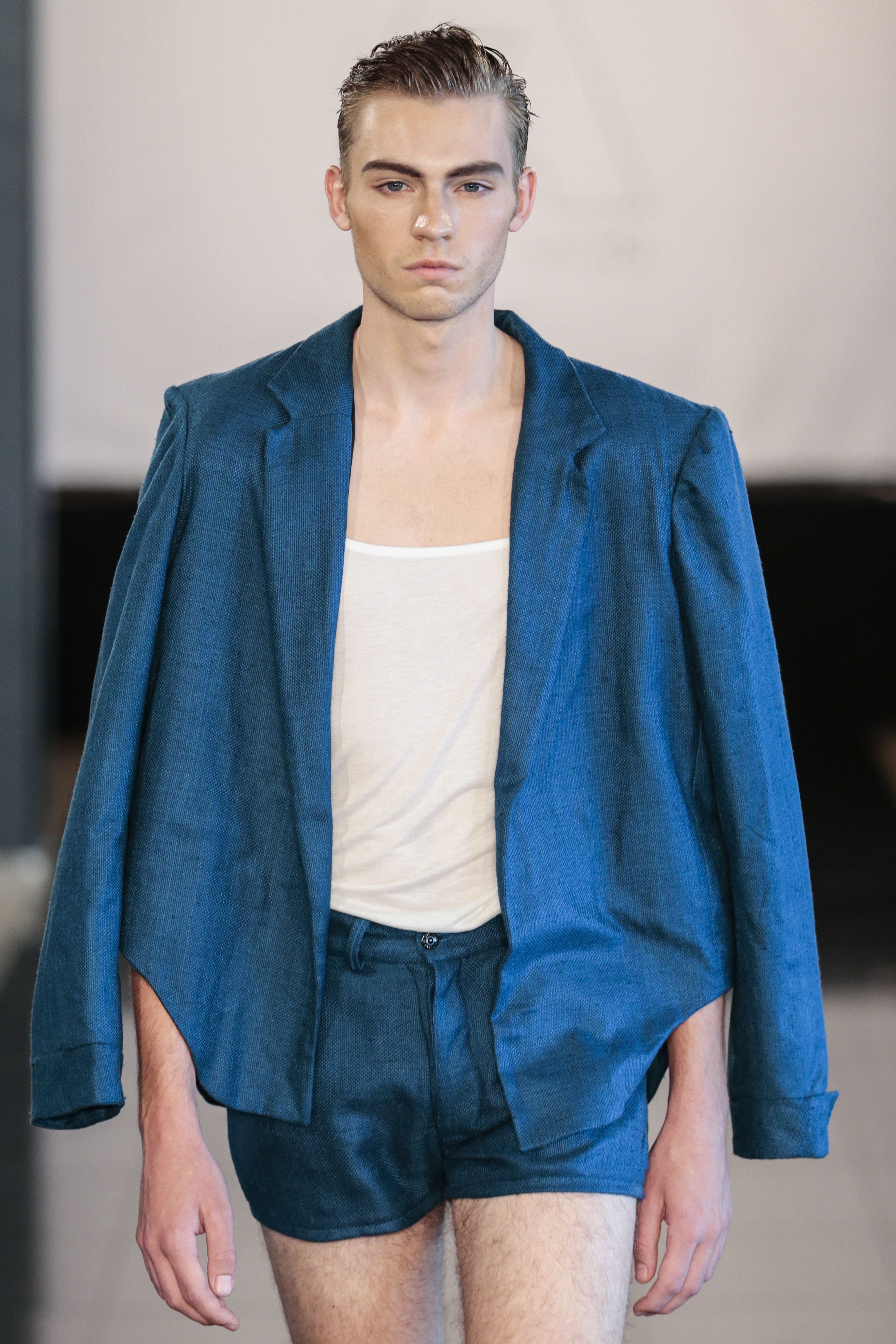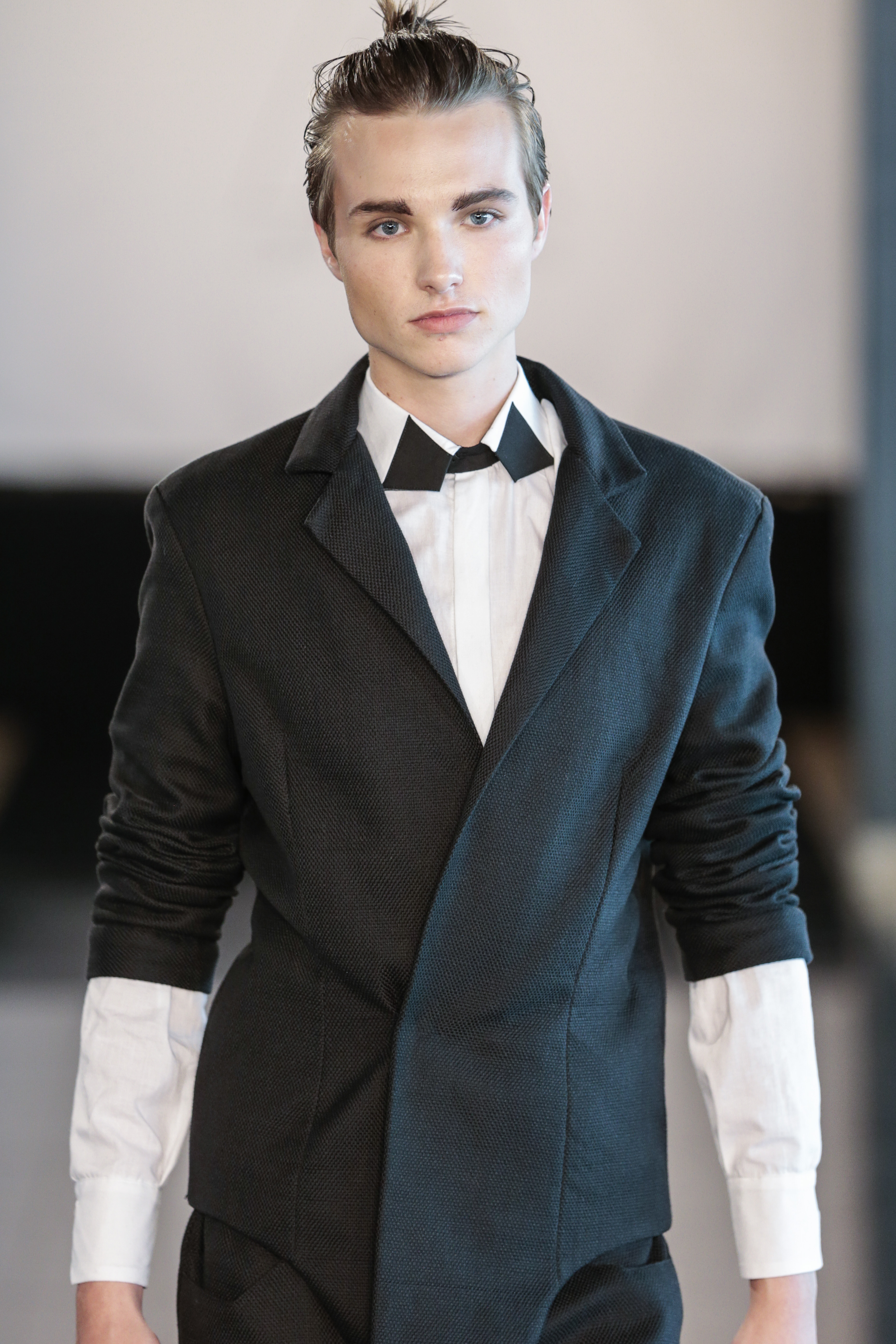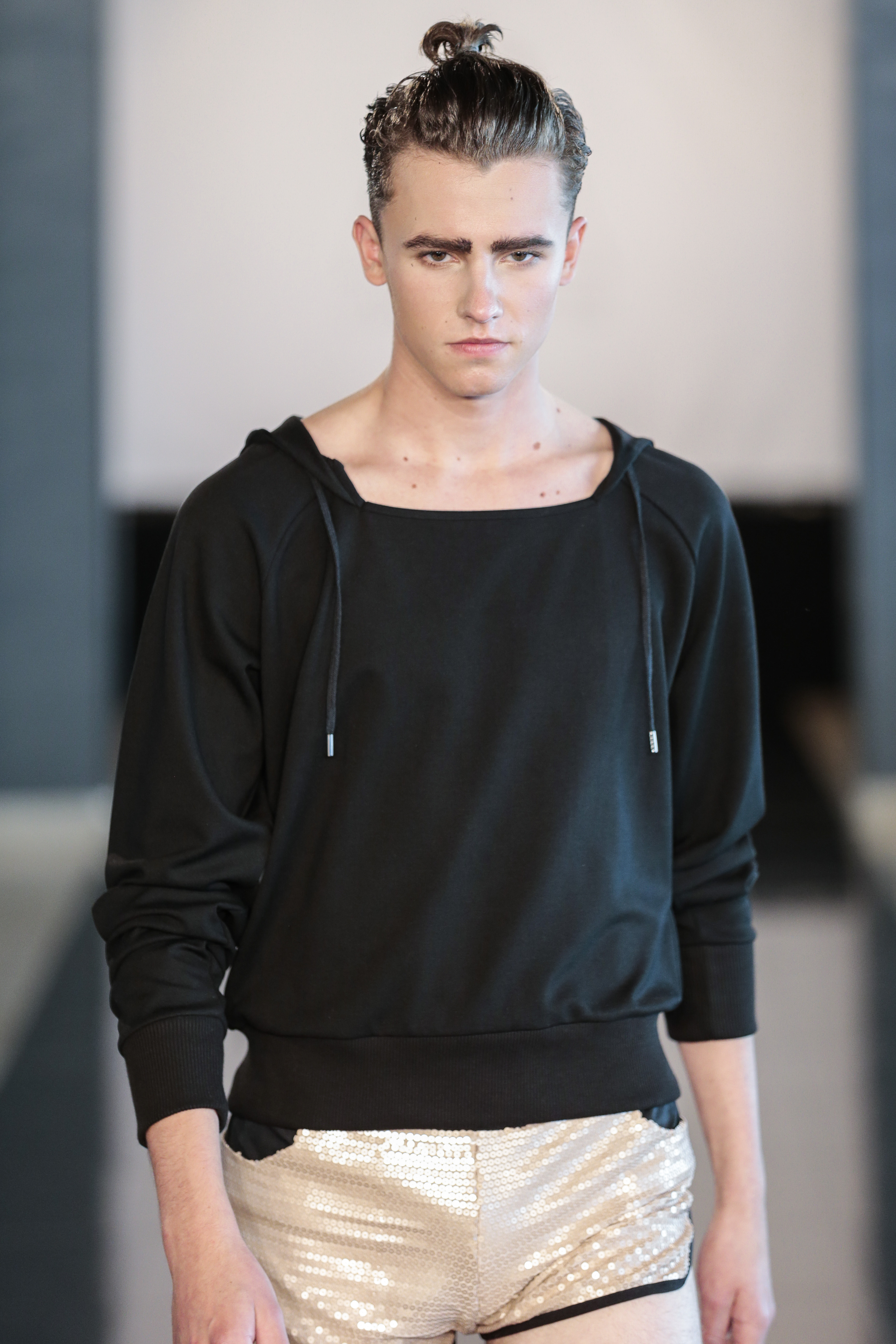 Like I said the clothing of the show was very versatile, (no pun intended), as the clothes of the show are usually suitable for gay men. The whole gay vibe was very clear once the first model walked out on the runway. With heavy makeup, shaped cheekbones and dark eyebrows, it was clear that the main target audience of the collection where gay men.” From MNZO Fashion Blog for The Modern Men