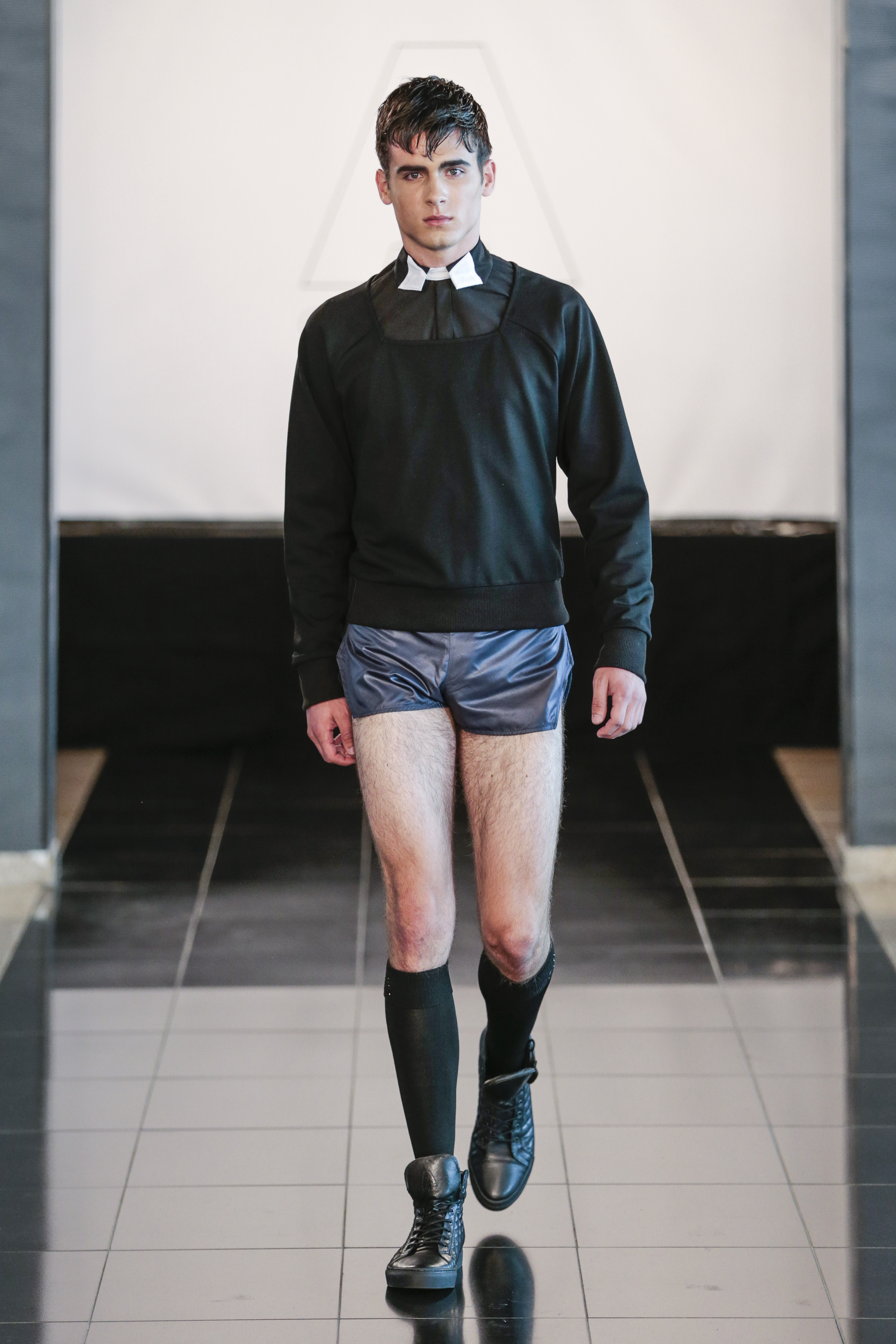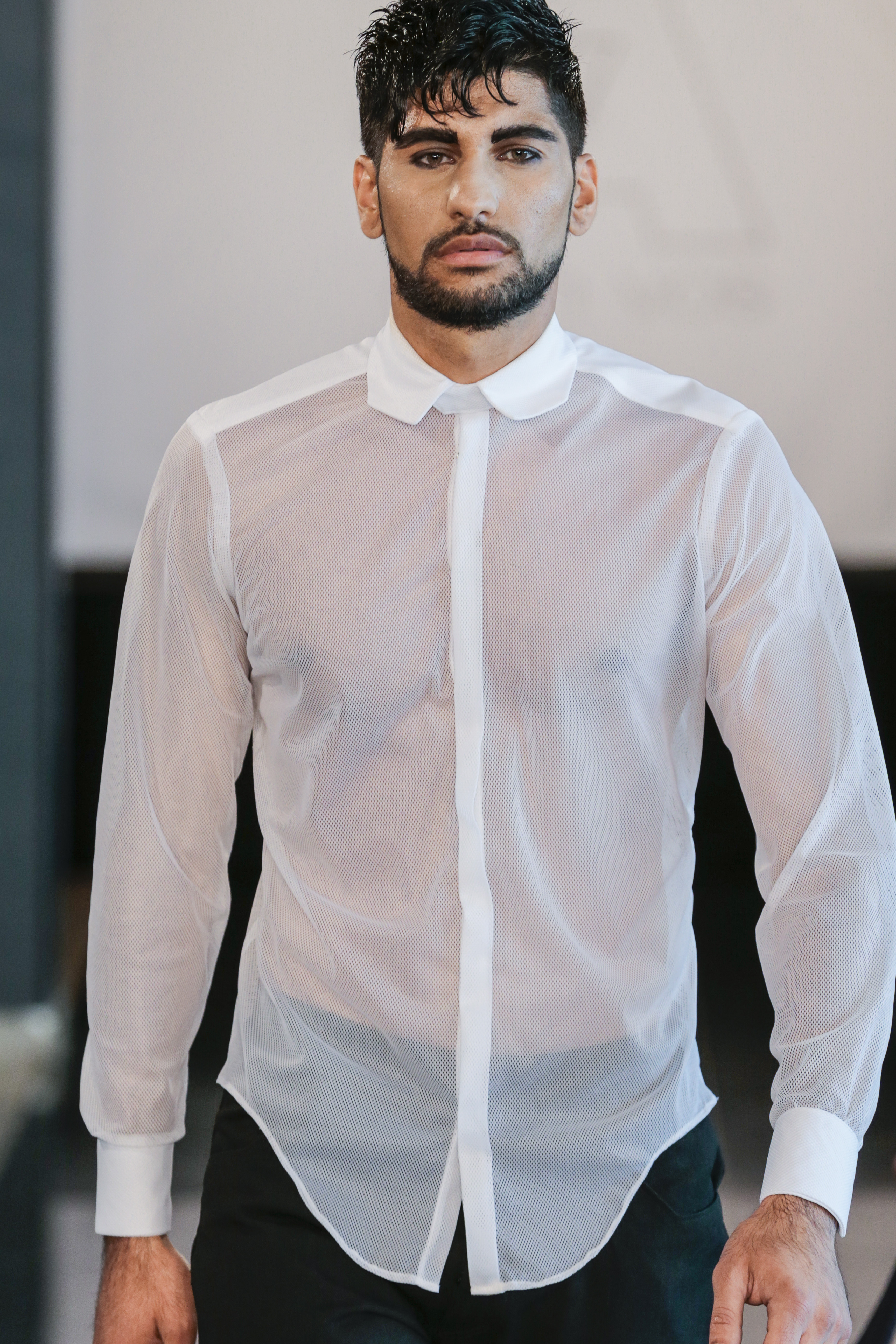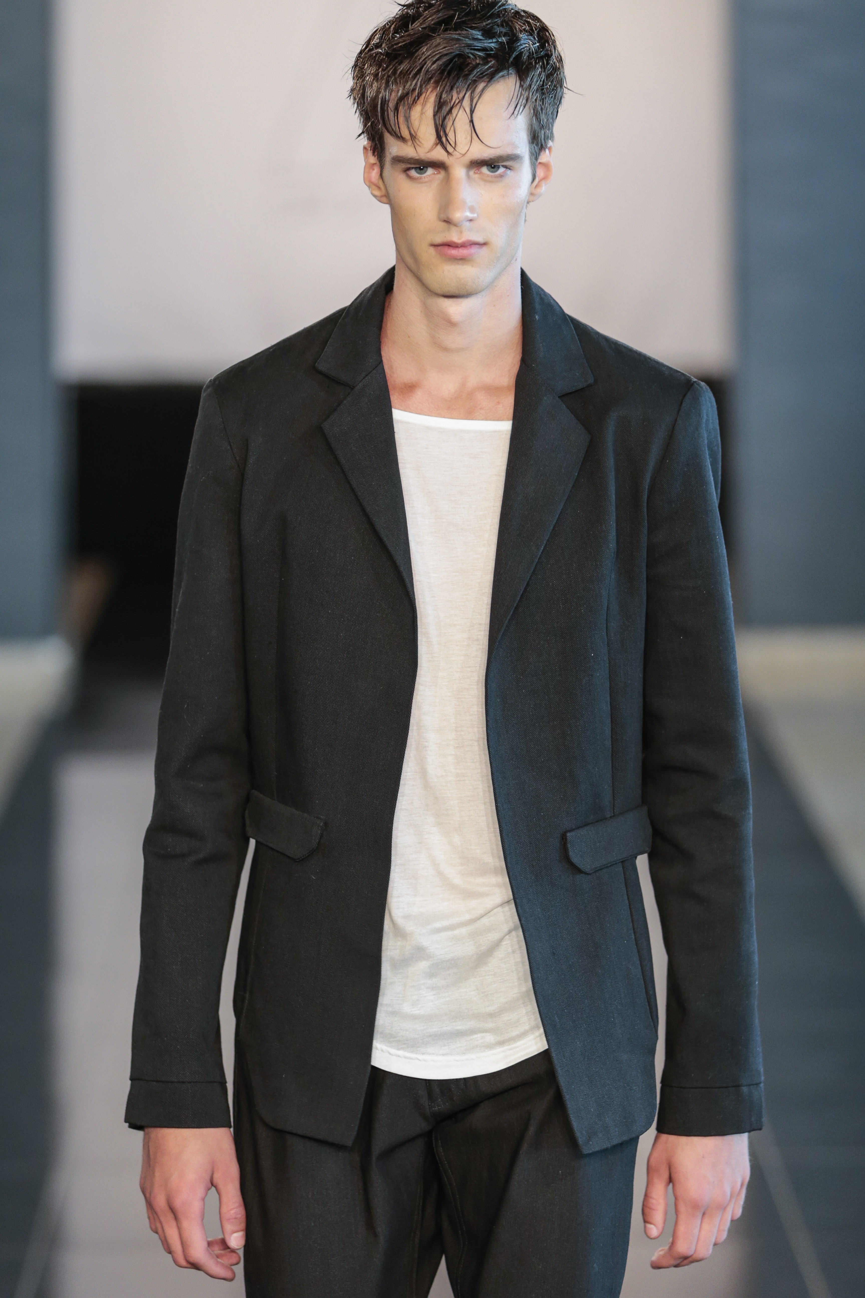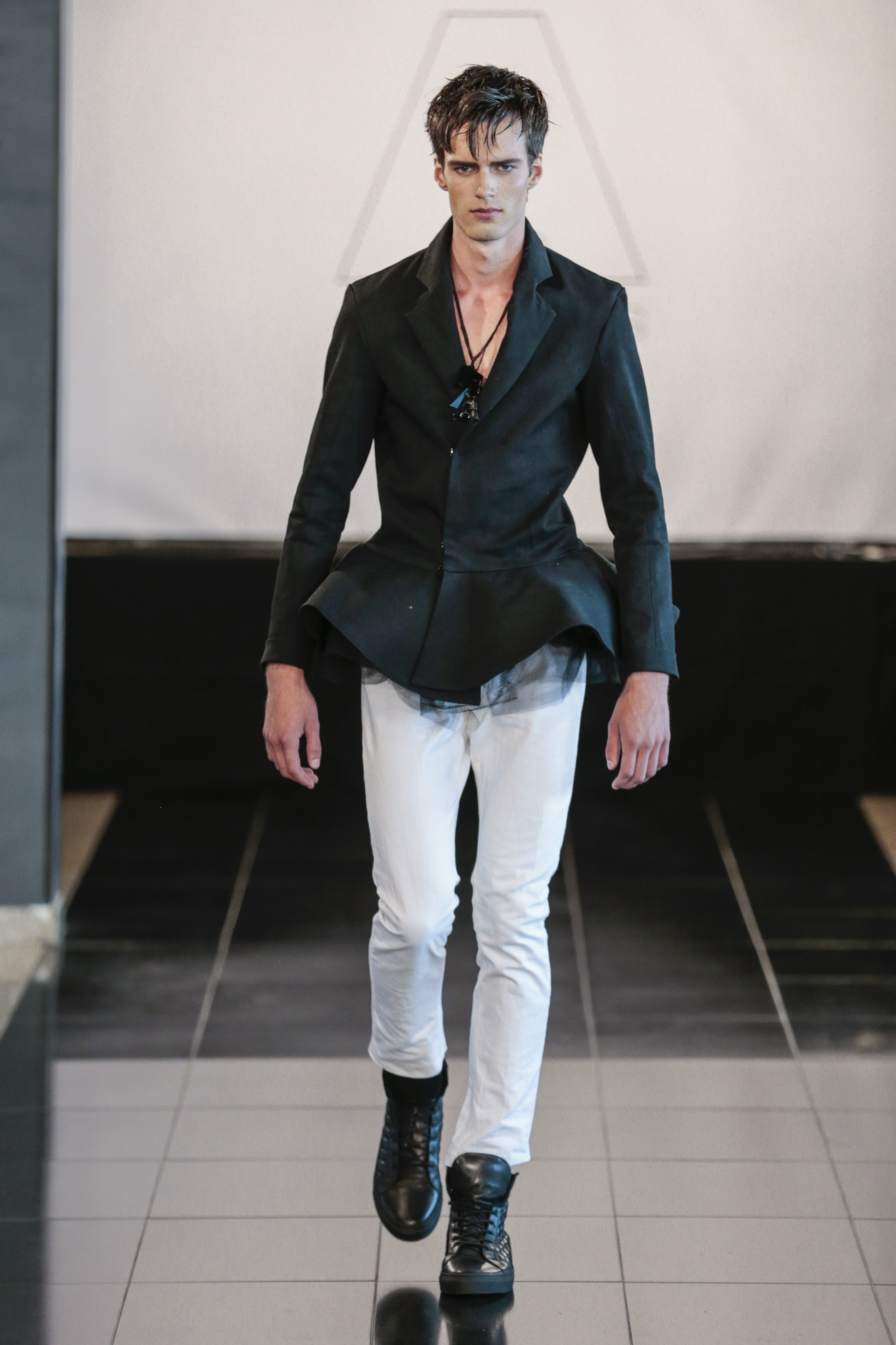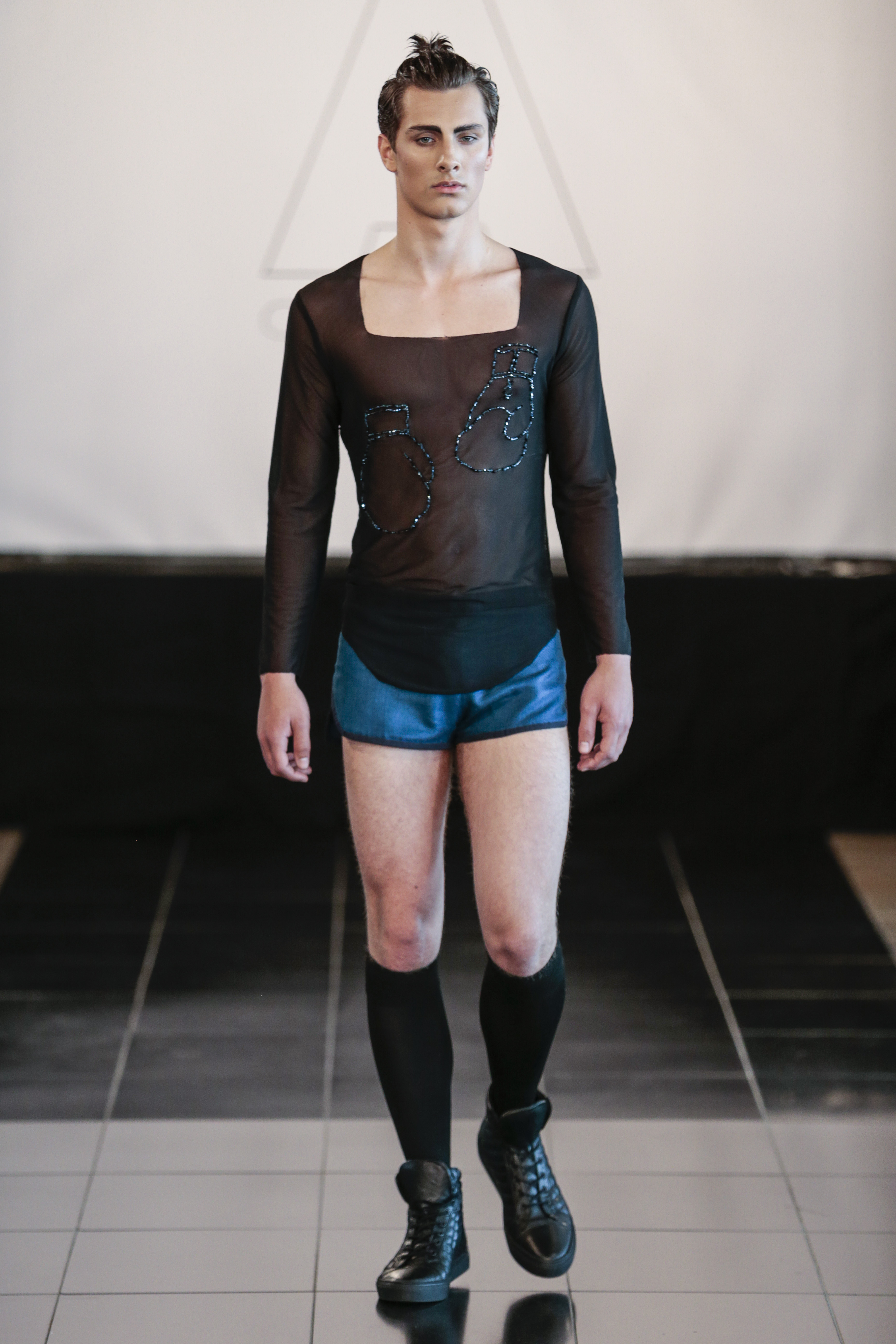 Like I said the clothing of the show was very versatile, (no pun intended), as the clothes of the show are usually suitable for gay men. The whole gay vibe was very clear once the first model walked out on the runway. With heavy makeup, shaped cheekbones and dark eyebrows, it was clear that the main target audience of the collection where gay men.” From MNZO Fashion Blog for The Modern Men