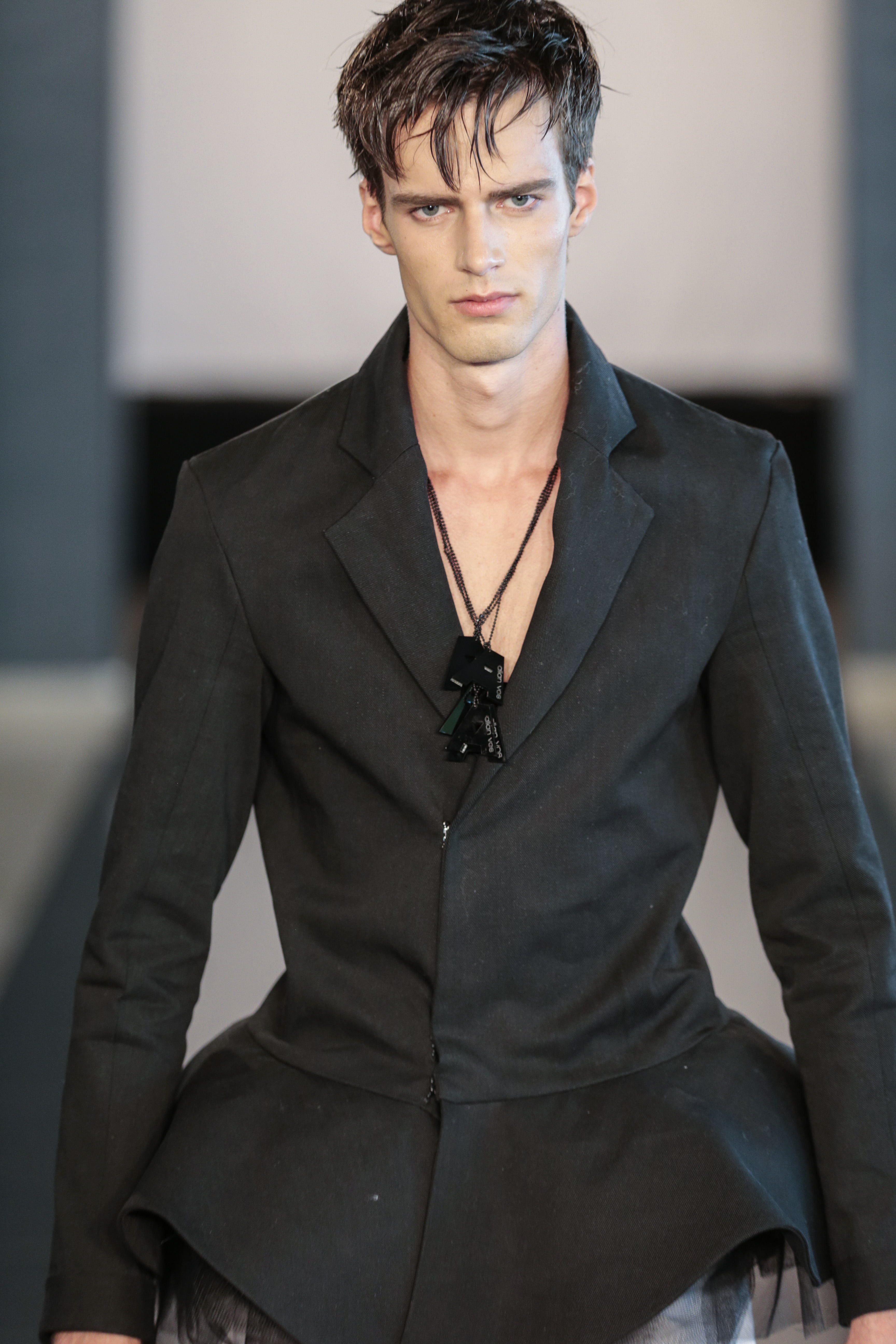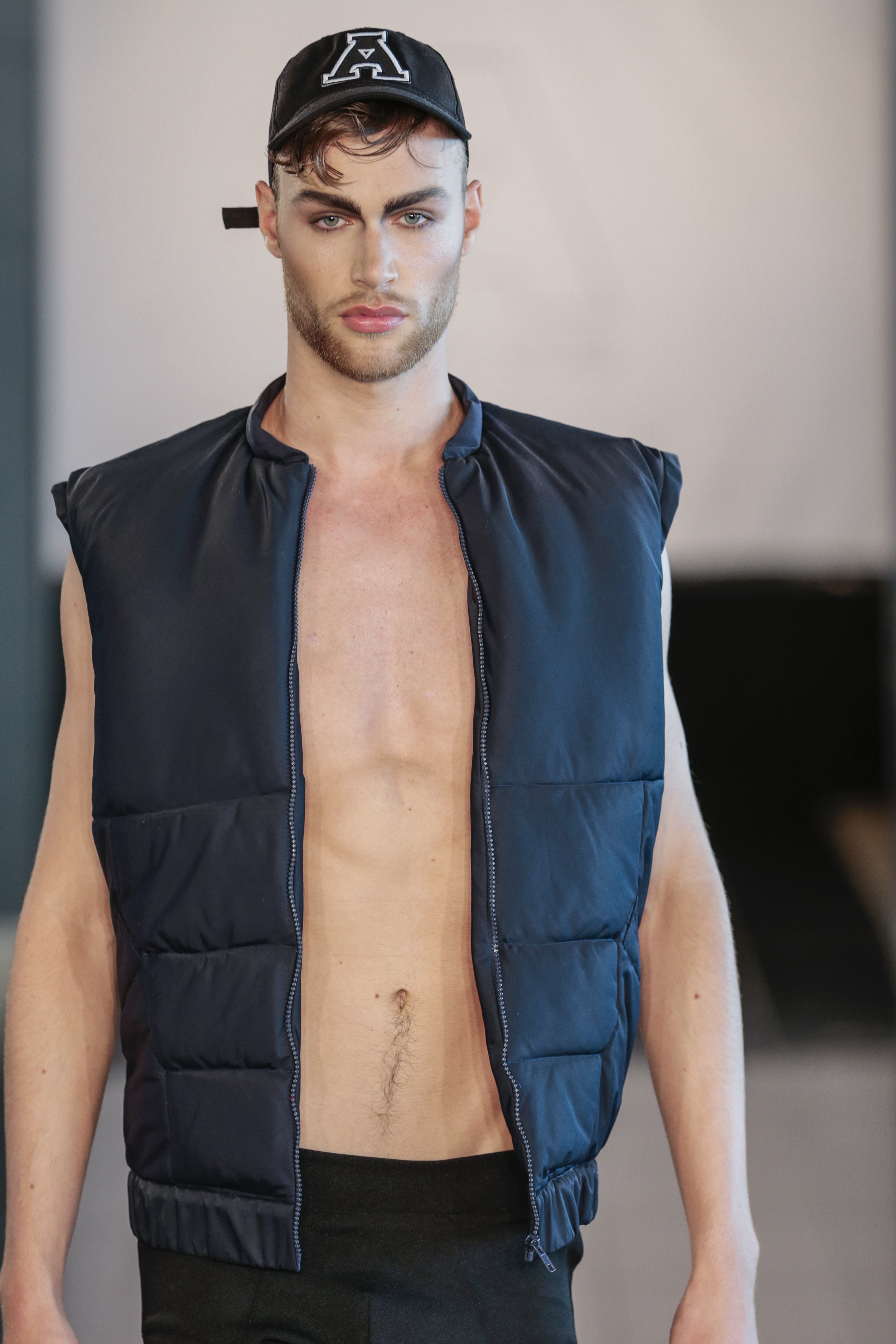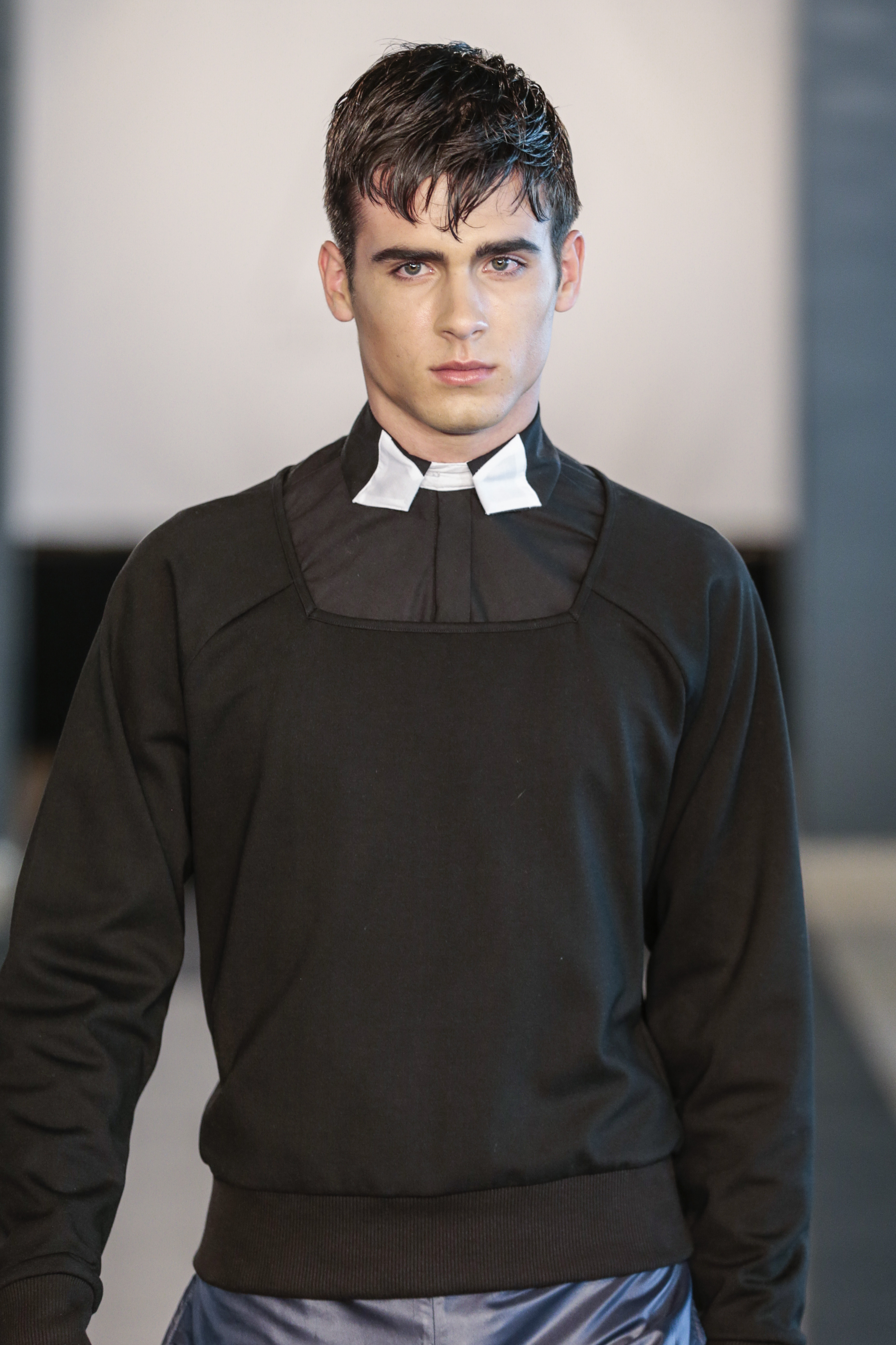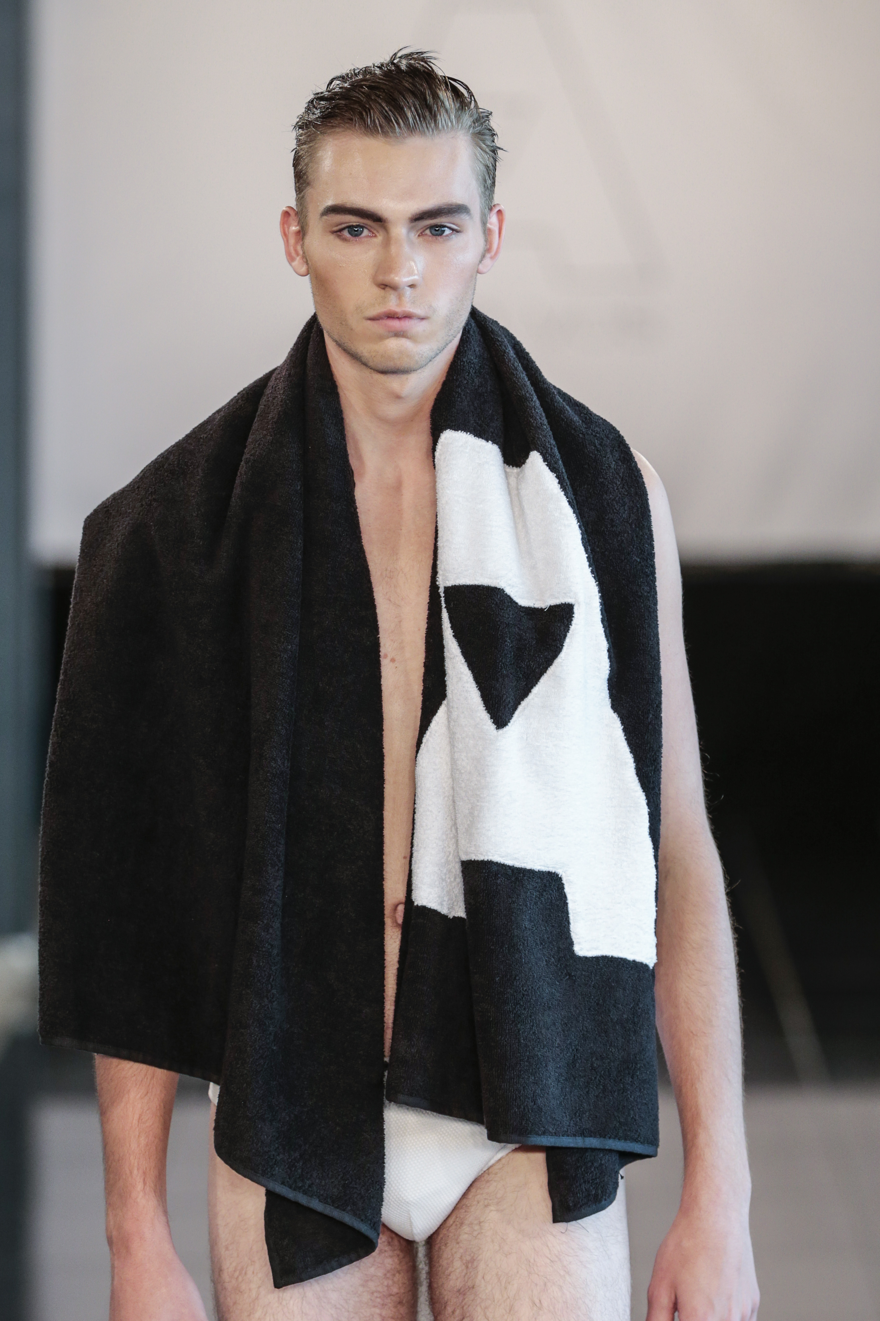 Like I said the clothing of the show was very versatile, (no pun intended), as the clothes of the show are usually suitable for gay men. The whole gay vibe was very clear once the first model walked out on the runway. With heavy makeup, shaped cheekbones and dark eyebrows, it was clear that the main target audience of the collection where gay men.” From MNZO Fashion Blog for The Modern Men