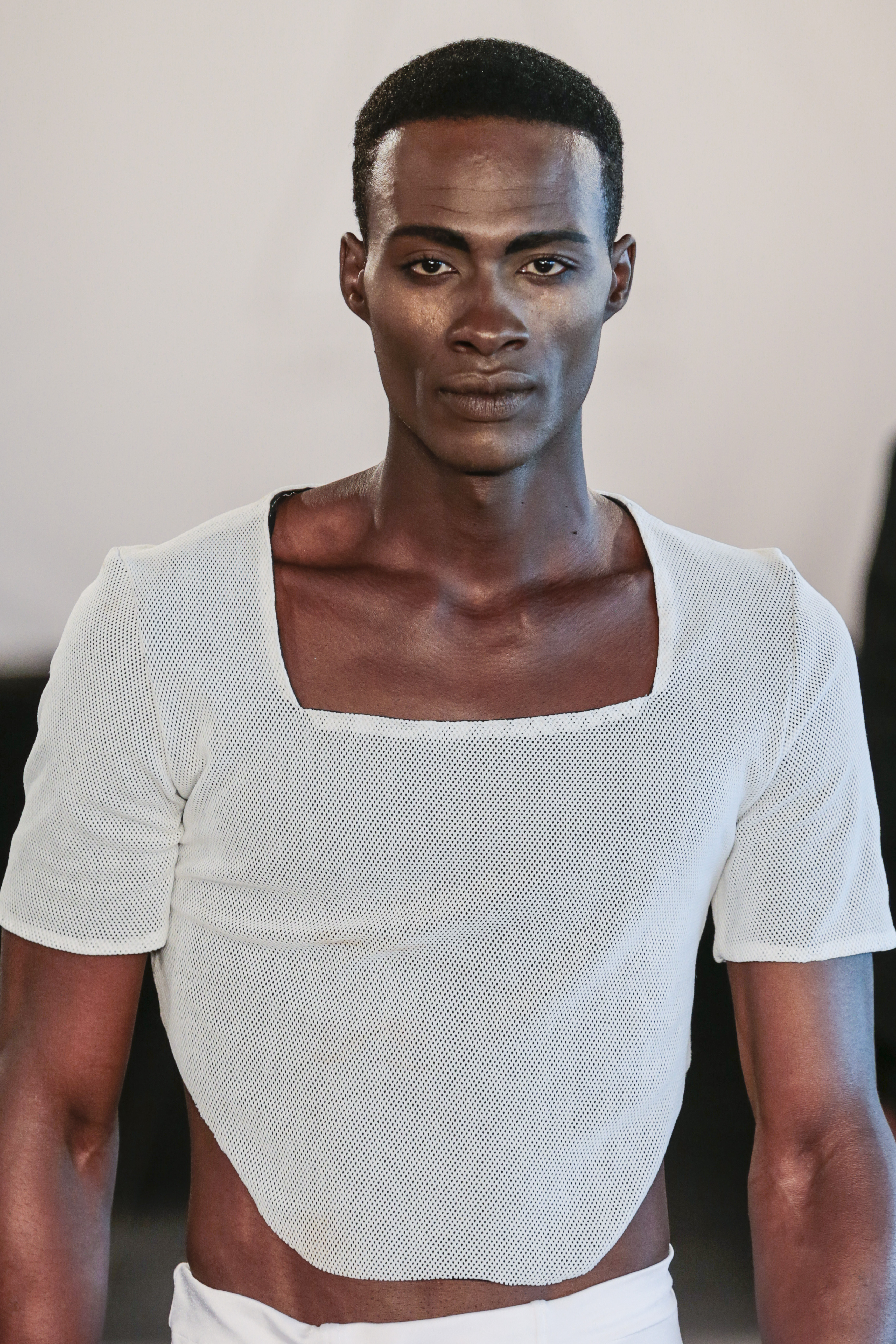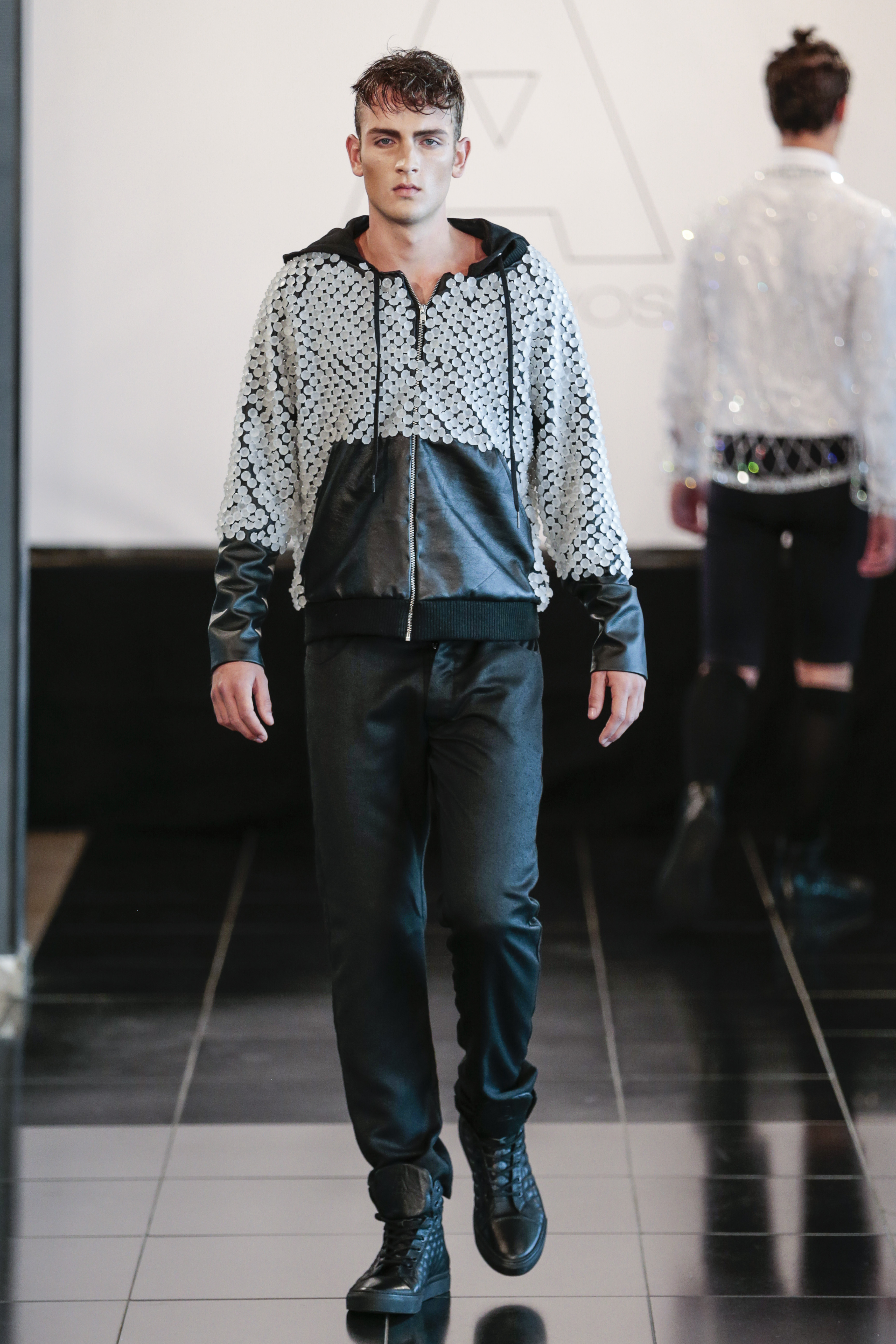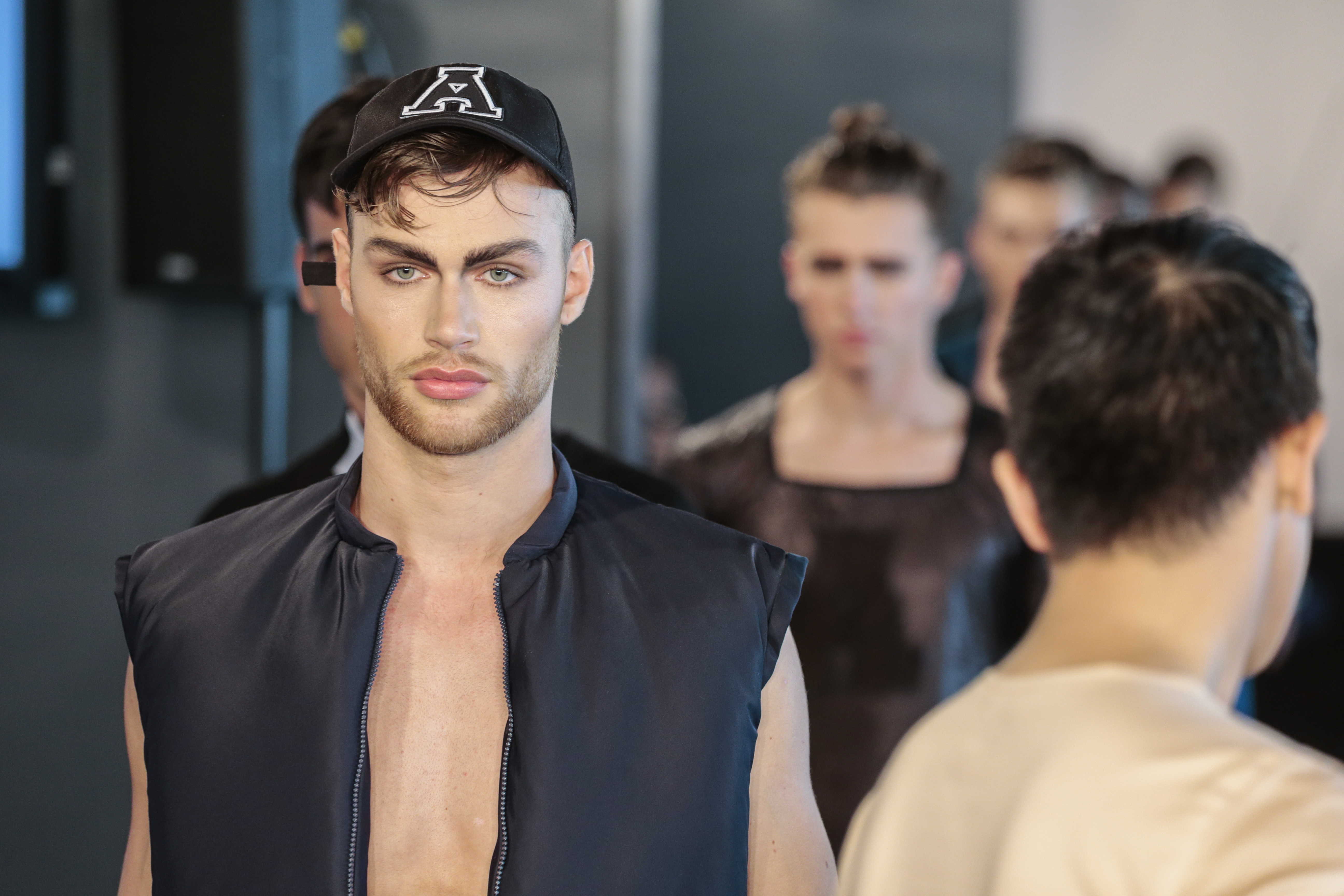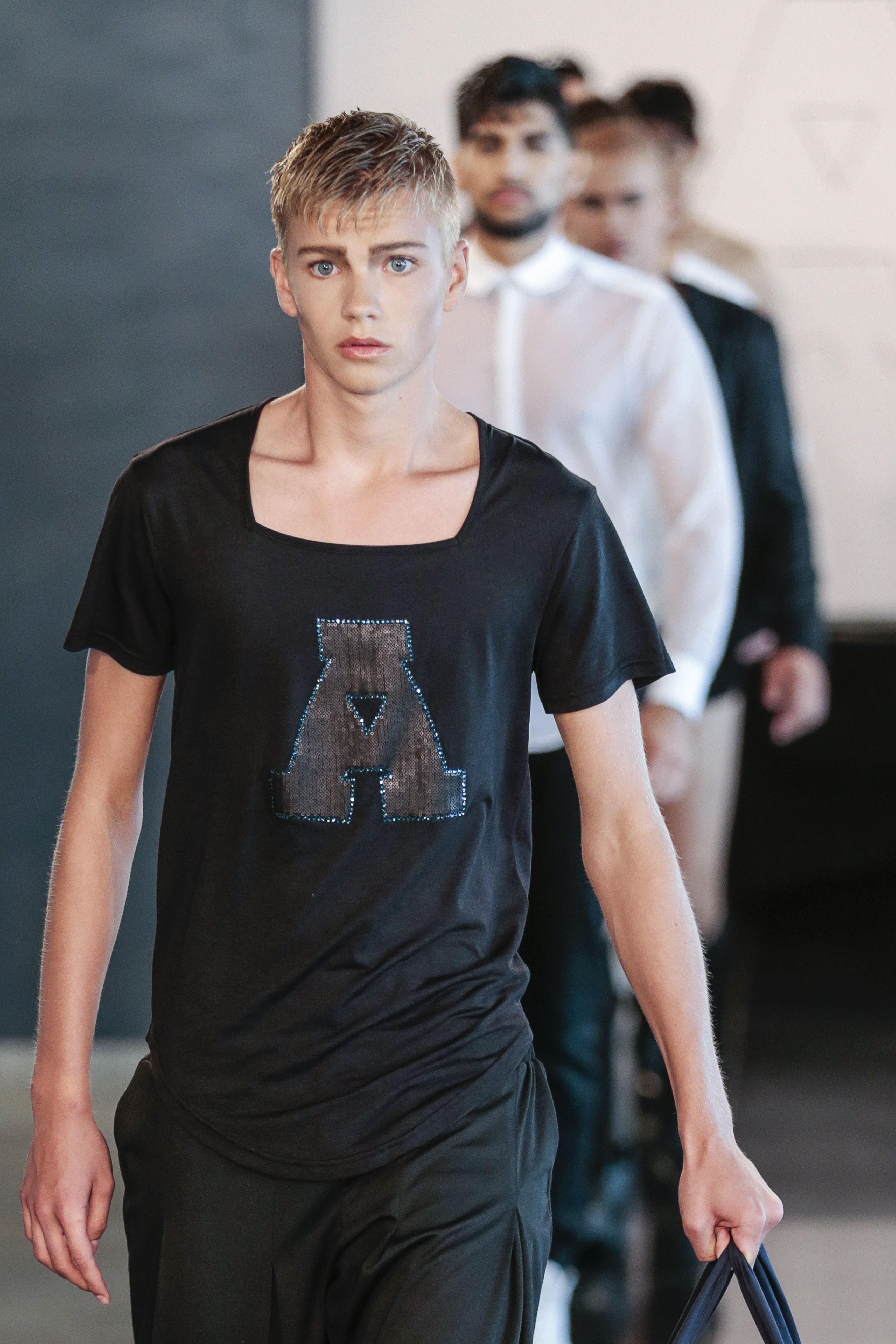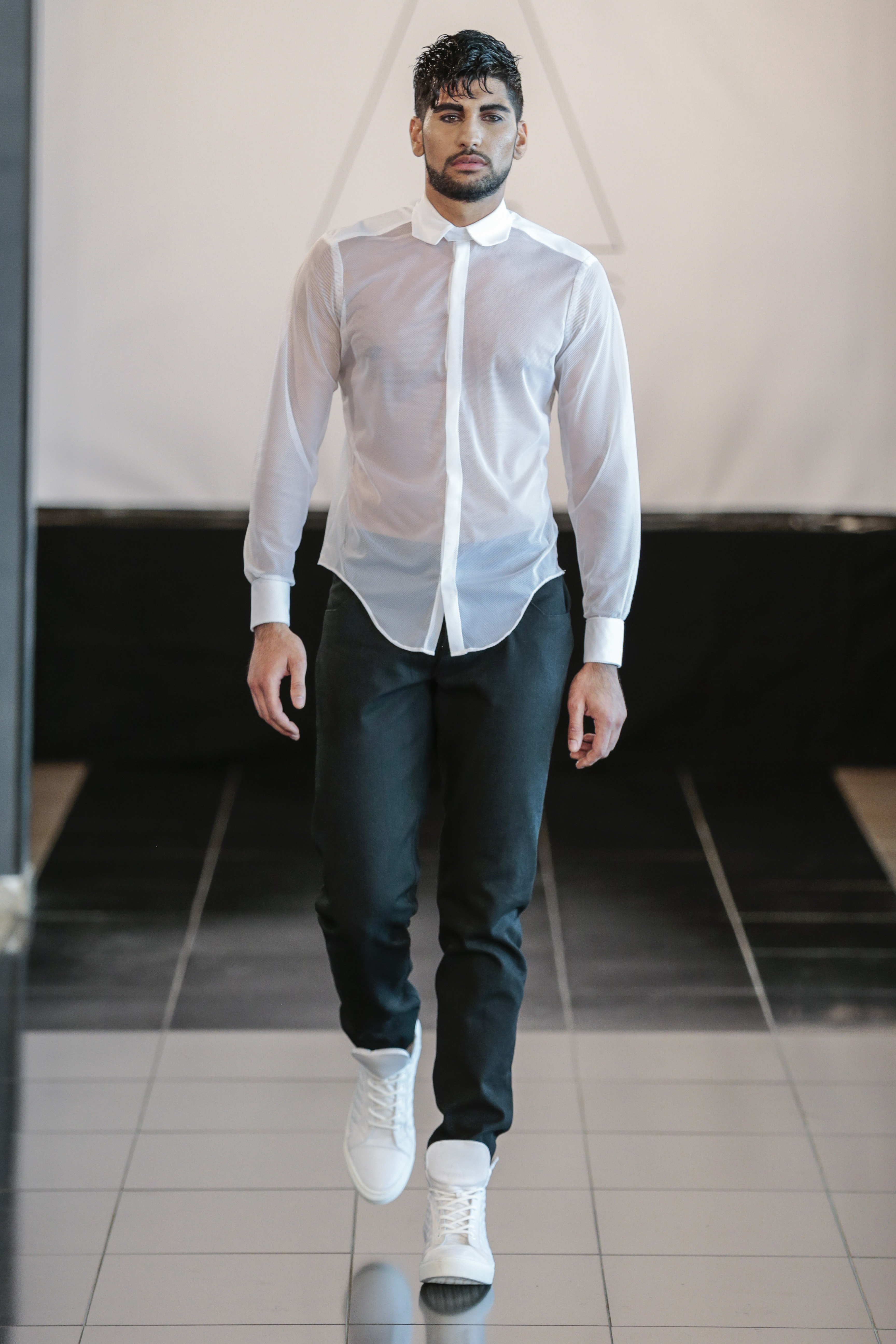 Like I said the clothing of the show was very versatile, (no pun intended), as the clothes of the show are usually suitable for gay men. The whole gay vibe was very clear once the first model walked out on the runway. With heavy makeup, shaped cheekbones and dark eyebrows, it was clear that the main target audience of the collection where gay men.” From MNZO Fashion Blog for The Modern Men