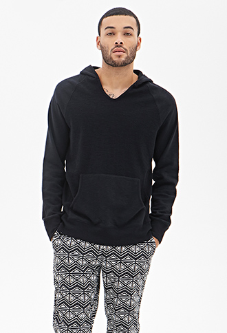 An easy layering piece, this knit pullover features textured French terry and ribbed panels, with an attached hood and a kangaroo pocket. A throw-on-and-go staple, this piece is perfect for paring down slightly dressier basics like chinos for everyday wear.