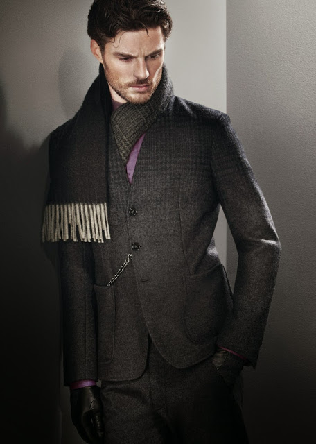The fall/winter 2014 look book of Giorgio Armani’s Armani Collezioni line is a further tribute to the designer’s signature deconstructed silhouettes. Playing in a secure field, the collection is an updated vision of Armani’s idea of contemporary sophistication, with fluid garments that enhance the male’s figure. Updating classics isn’t the only direction of the whole collection, which sets aside a new take on dressing, with formal suit jackets with no lapels, quilted trousers or textured suggestions, available in a palette of rich colors. Starring Kult Model Casey Taylor.