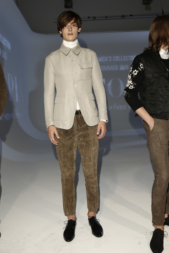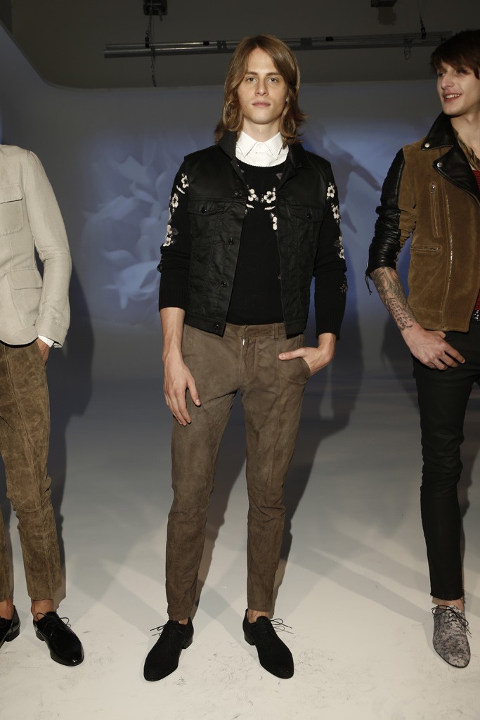 As a continuation from last season, designer Jessy Heuvelink incorporated rock n roll references from the late Sixties to a well edited lineup. Among the highlights were a hand painted floral leather jacket and a blue fitted suit, infusing a lighter essence for spring.