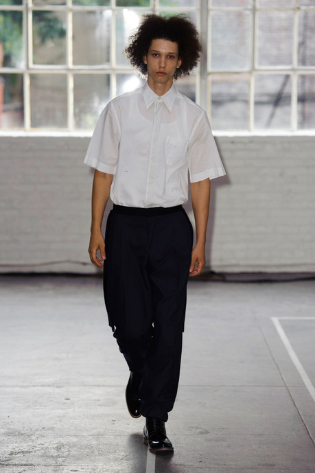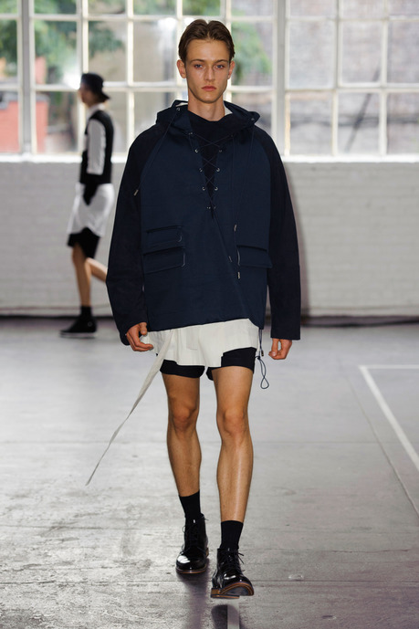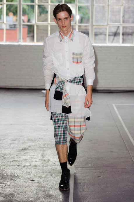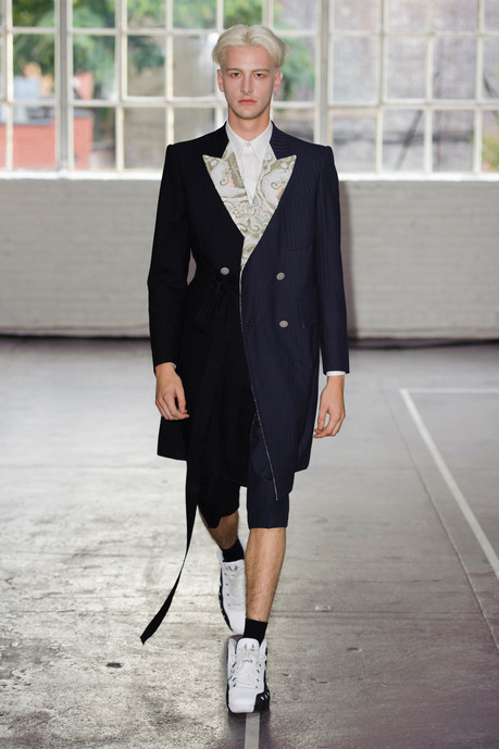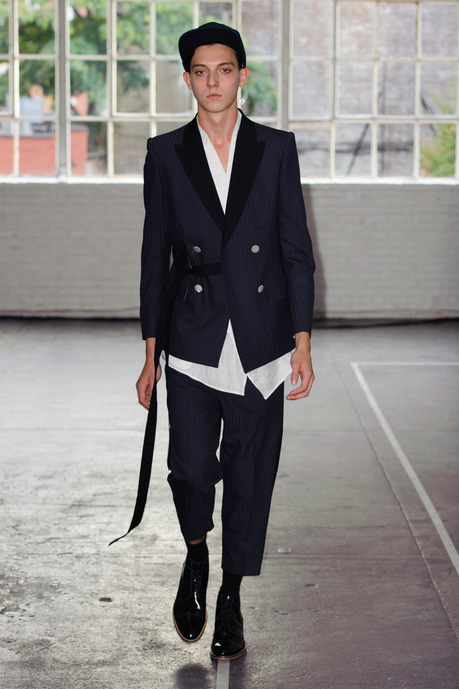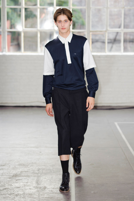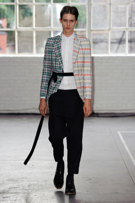 Antonio Azzuolo S/S 2015 merging an elegant point of style with a contemporary attitude, Azzuolo plays with proportions and fabrics for an interesting take on the season. Repurposing tartan and other classic favorites, different colorways are contrasted against each other for a graphic spin on color blocking. From a relaxed double-breasted blazer to loose suiting shorts or trousers with a band stripe, Azzuolo presents tailoring with a fun young energy.