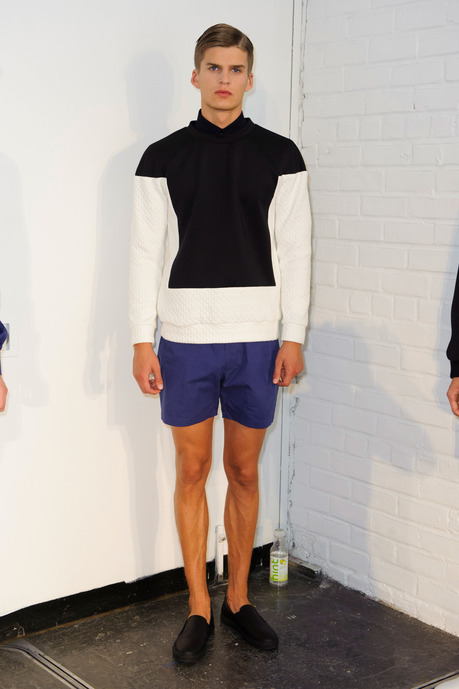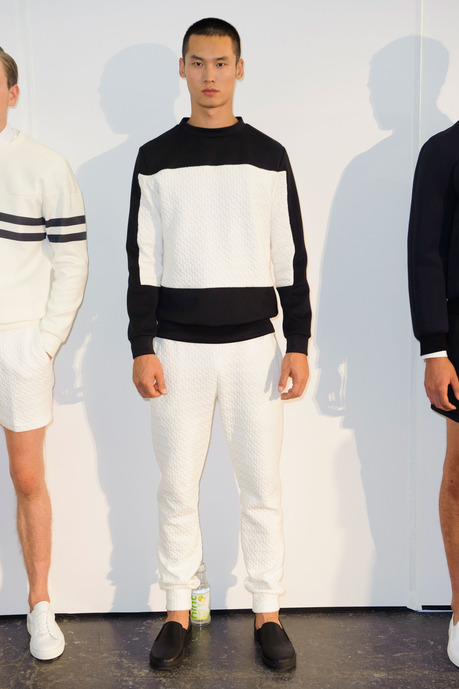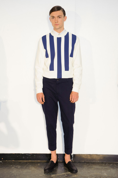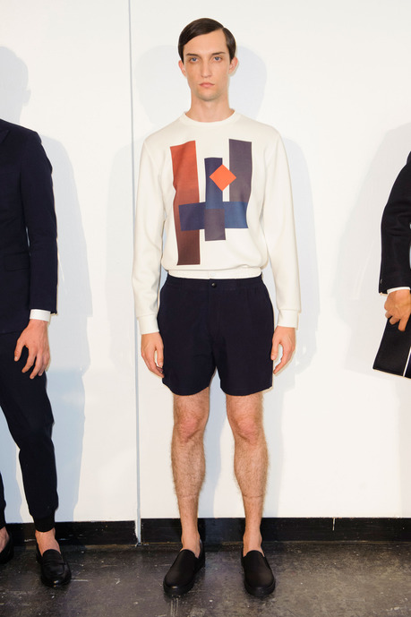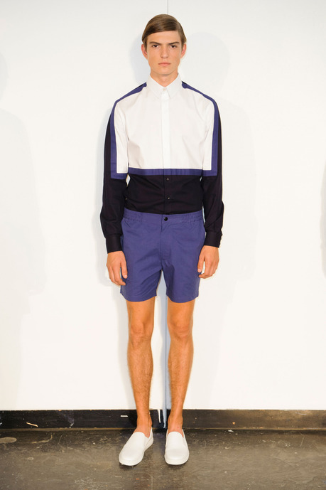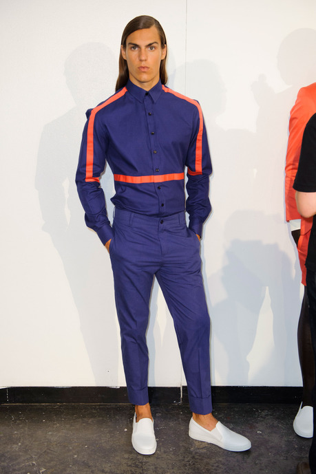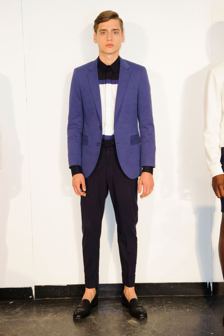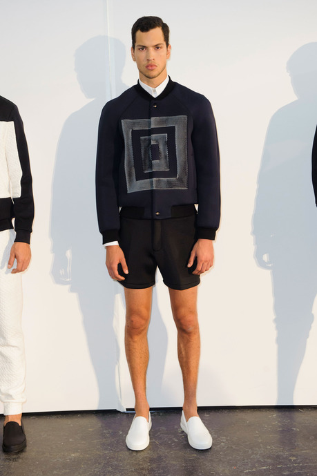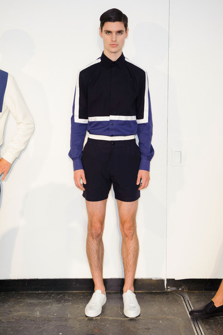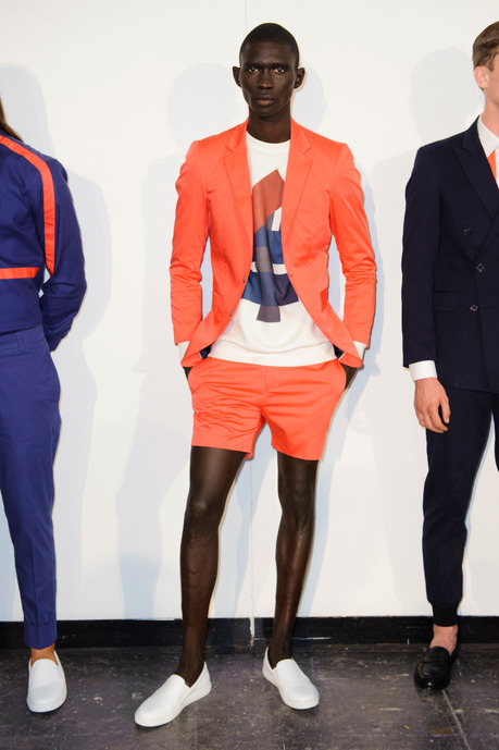 Designer Carlos Campos explores a new arena for his man with spring 2015. Leaning away from the tailored formalities that usually define his collections, Campos embraces a sporty edge that brings to minds images of racetracks and utilitarian fashions. Utilizing color blocking and strong graphic lines, the new collection injects menswear classics with a sporty aesthetic that is easily on trend for the season.