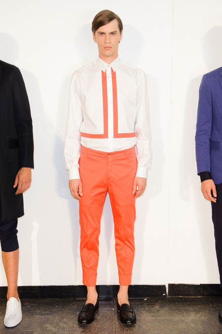 Designer Carlos Campos explores a new arena for his man with spring 2015. Leaning away from the tailored formalities that usually define his collections, Campos embraces a sporty edge that brings to minds images of racetracks and utilitarian fashions. Utilizing color blocking and strong graphic lines, the new collection injects menswear classics with a sporty aesthetic that is easily on trend for the season.