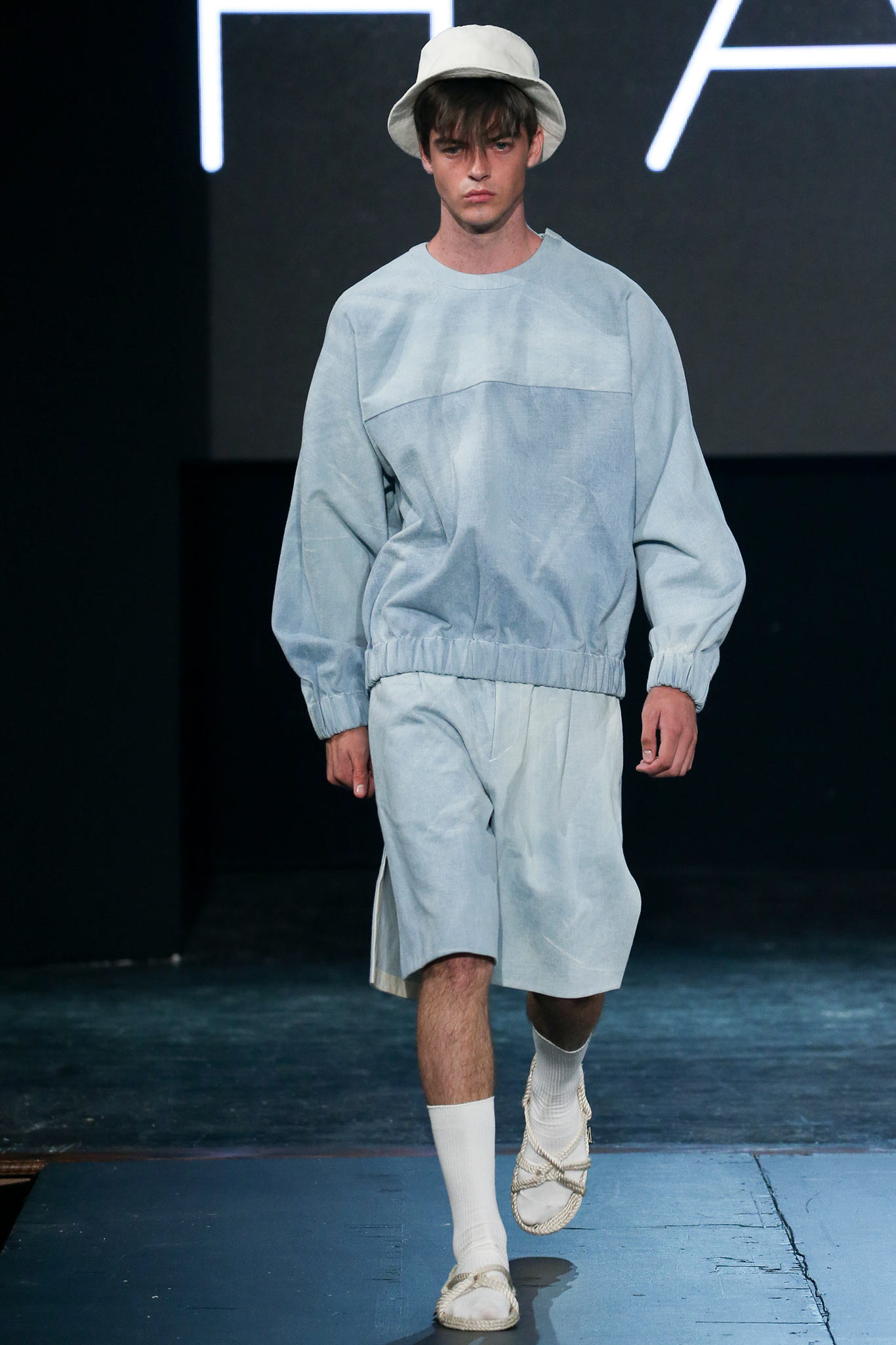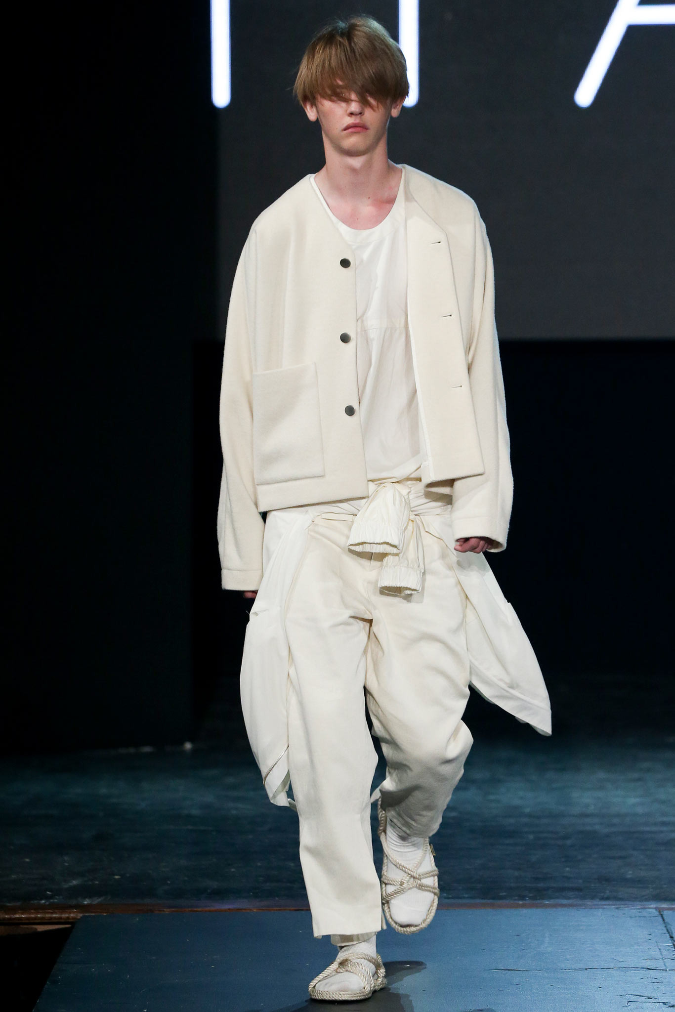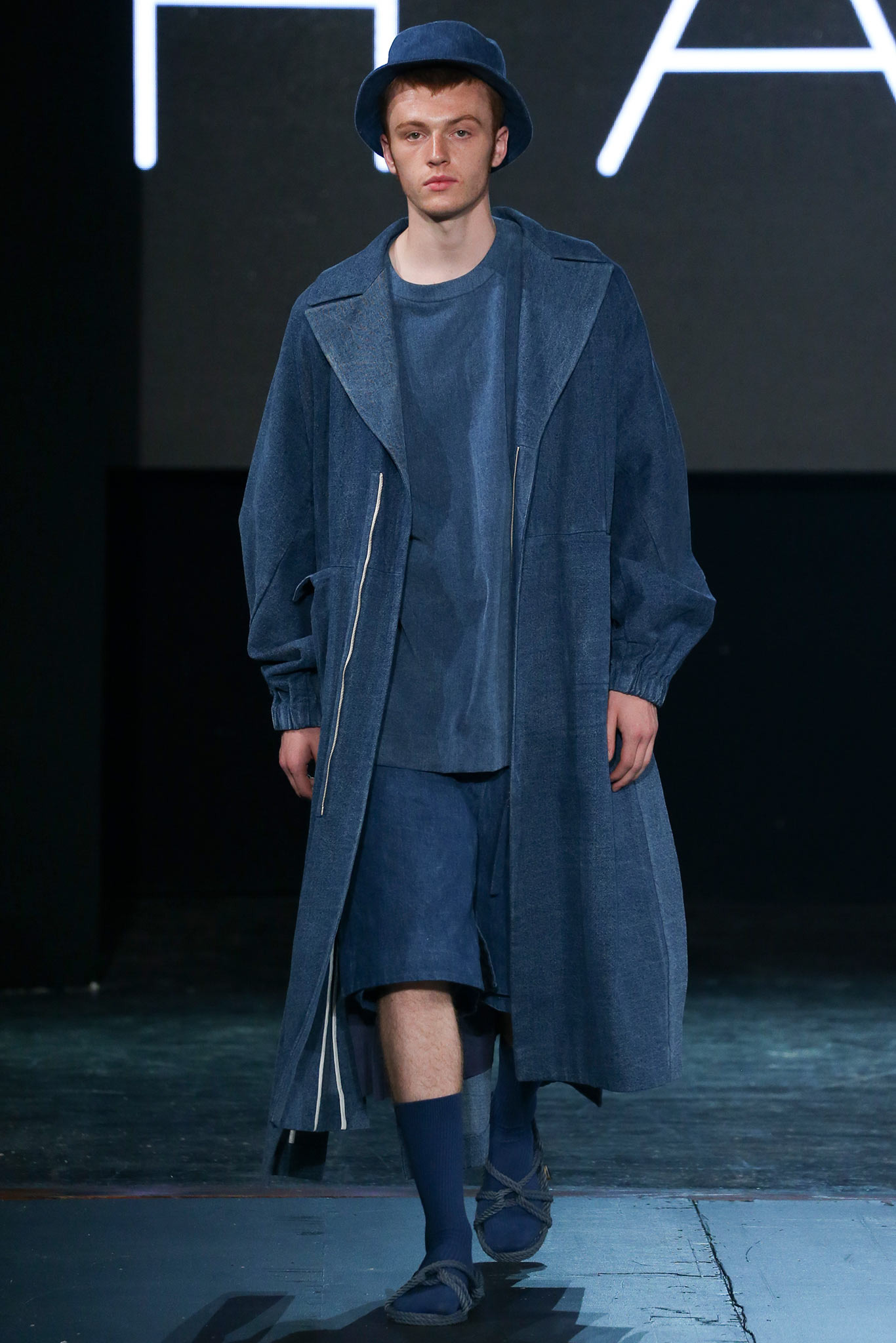 The democratic process of allowing designers anywhere to upload pictures and videos of their work to VFiles naturally favors extremes in shapes, colors, and concepts. The first and most promising of the group, Tigran Avestiyan, exhibited these in spades. The graduate of Central Saint Martins in London, who returned to his native Russia to found his label, based his collection on five actual bottles of name-brand fragrances he bought from duty-free stores in airports and fused them together into one unwieldy bottle that his models carried in clear plastic bags. They also wore tunics and shorts with a mishmash of crinkles and flashes of the words “Duty Free”—just enough to suggest cellophane packaging. The designer’s message, that of the corruptive, corrosive nature of globalism, came through loud and clear. “It’s good to be outside of fashion, seeing it from a distance,” he said with a grin backstage, quickly adding, “Not that I wouldn’t love to work in New York!” Next up was Hye Gin Hamm. Graduating from Parsons earlier this year, she drew inspiration from, she said, “a mix of American and Korean cultures,” specifically, American denim and bulky silhouettes evocative of traditional Korean monks. Careful hand-bleaching of each oversized and layered item gave the collection an alluringly timeless, placeless quality. Showings by ZDDZ’s Dasha Selyanova, another Russian, and Detto Kazuma of D.TT.K, both of whom produced highly graphic, slightly athletic collections, rounded out the very international showcase. Given the excellent IRL platform of VFiles, which is only a year old, it’ll be interesting to see how these young hopefuls matriculate through the global fashion system. “It was challenging to choose four designers out of the hundreds who entered,” said founder Julie Anne Quay, “but we work closely with our community and mentors [to look] for a point of view, salability, quality, and that’s something special.” |