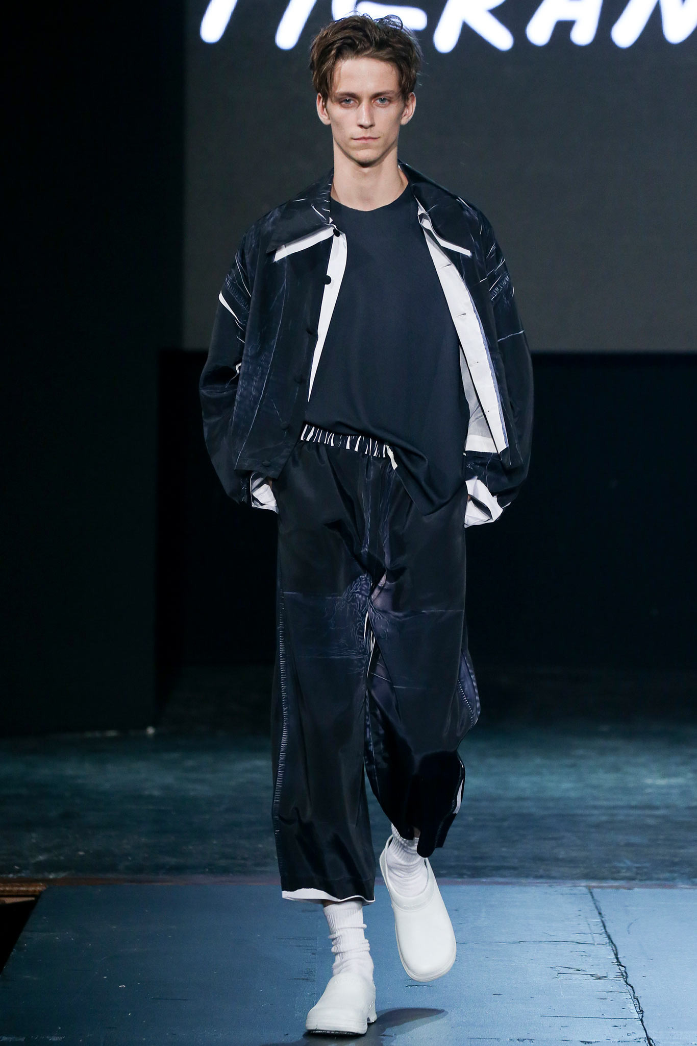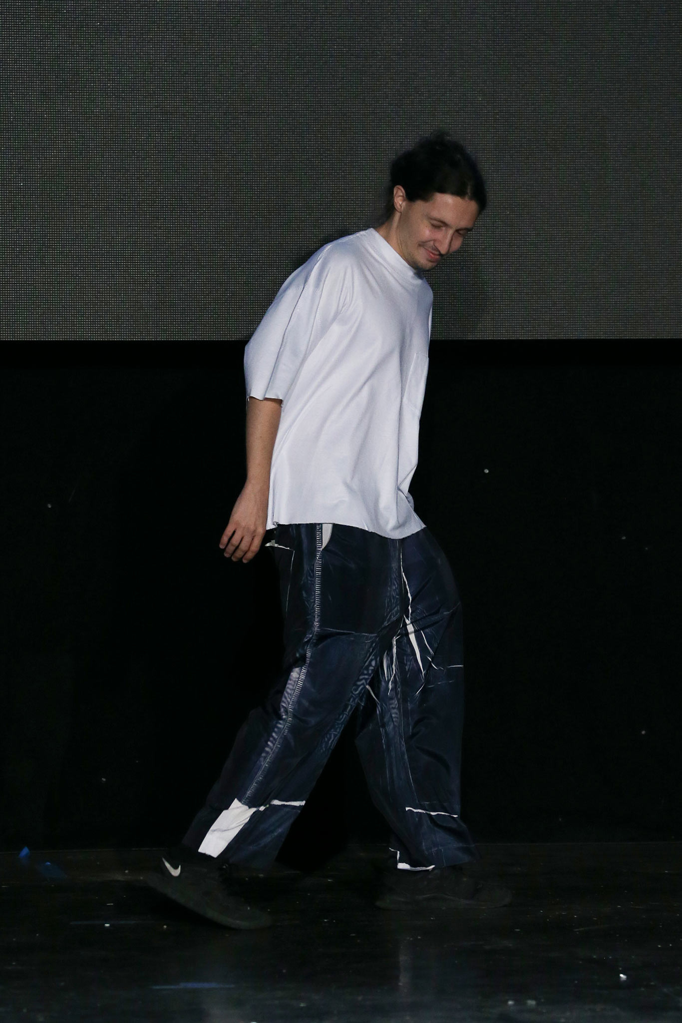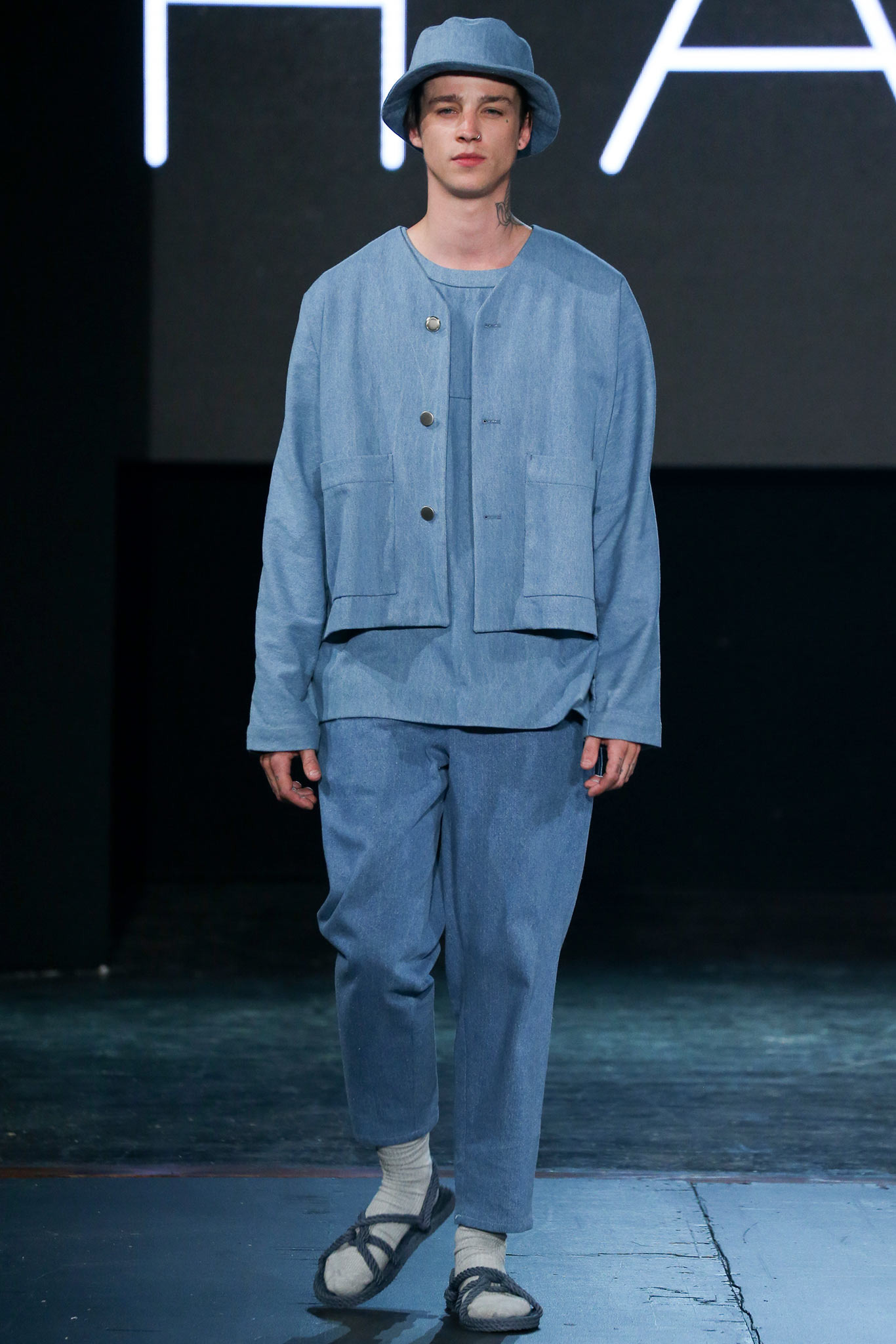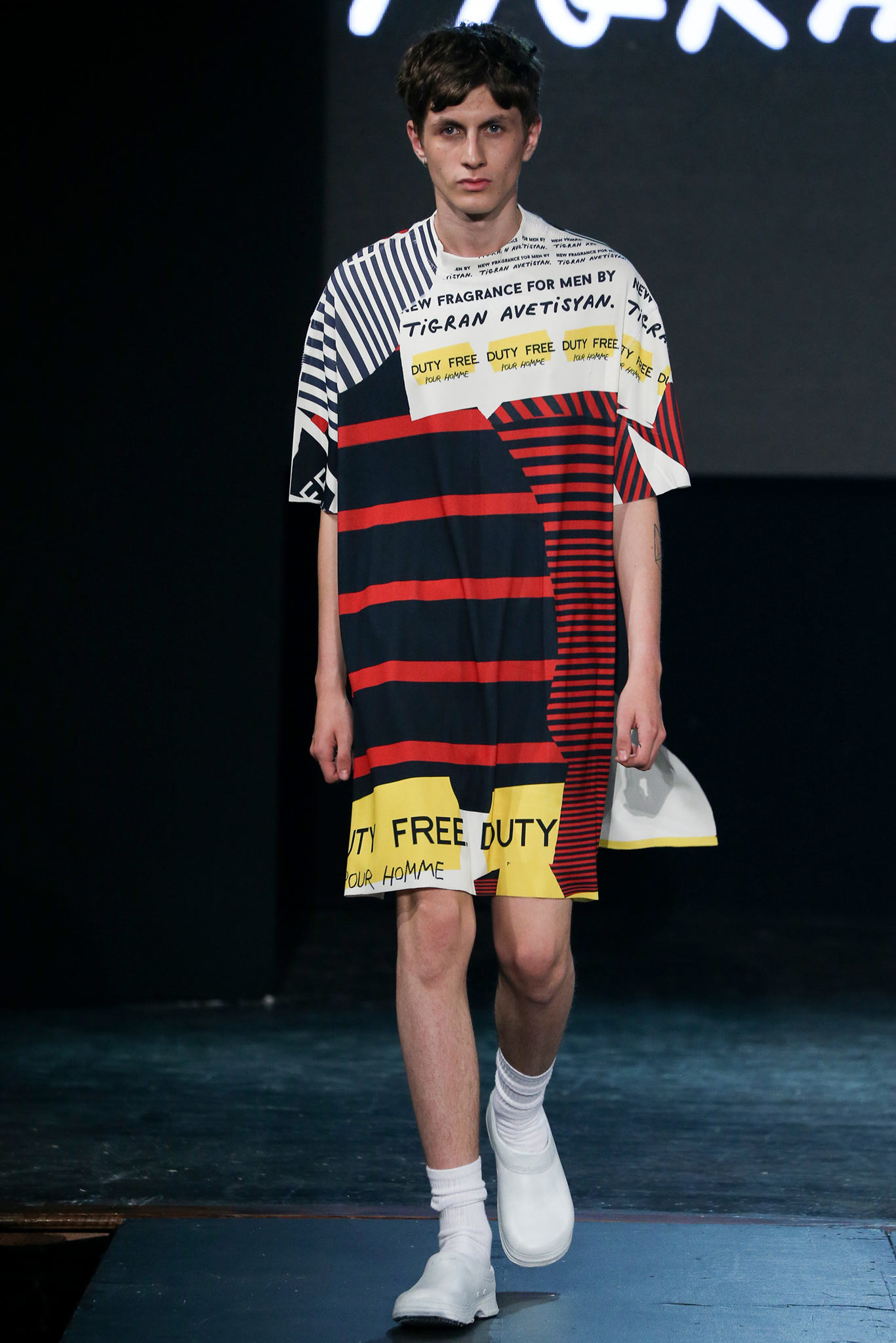 The democratic process of allowing designers anywhere to upload pictures and videos of their work to VFiles naturally favors extremes in shapes, colors, and concepts. The first and most promising of the group, Tigran Avestiyan, exhibited these in spades. The graduate of Central Saint Martins in London, who returned to his native Russia to found his label, based his collection on five actual bottles of name-brand fragrances he bought from duty-free stores in airports and fused them together into one unwieldy bottle that his models carried in clear plastic bags. They also wore tunics and shorts with a mishmash of crinkles and flashes of the words “Duty Free”—just enough to suggest cellophane packaging. The designer’s message, that of the corruptive, corrosive nature of globalism, came through loud and clear. “It’s good to be outside of fashion, seeing it from a distance,” he said with a grin backstage, quickly adding, “Not that I wouldn’t love to work in New York!” Next up was Hye Gin Hamm. Graduating from Parsons earlier this year, she drew inspiration from, she said, “a mix of American and Korean cultures,” specifically, American denim and bulky silhouettes evocative of traditional Korean monks. Careful hand-bleaching of each oversized and layered item gave the collection an alluringly timeless, placeless quality. Showings by ZDDZ’s Dasha Selyanova, another Russian, and Detto Kazuma of D.TT.K, both of whom produced highly graphic, slightly athletic collections, rounded out the very international showcase. Given the excellent IRL platform of VFiles, which is only a year old, it’ll be interesting to see how these young hopefuls matriculate through the global fashion system. “It was challenging to choose four designers out of the hundreds who entered,” said founder Julie Anne Quay, “but we work closely with our community and mentors [to look] for a point of view, salability, quality, and that’s something special.” |