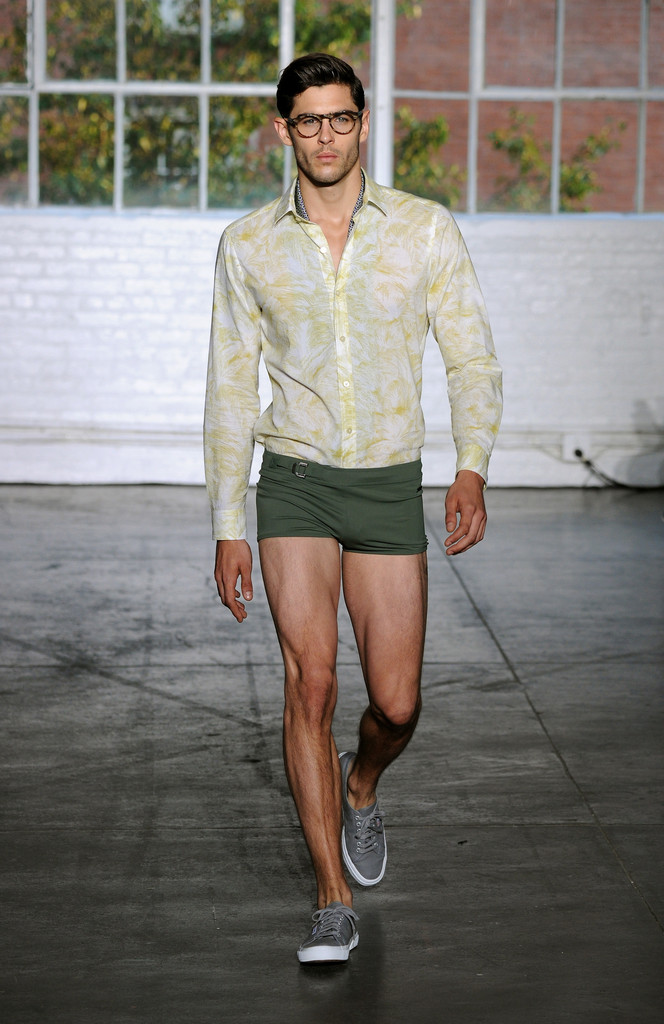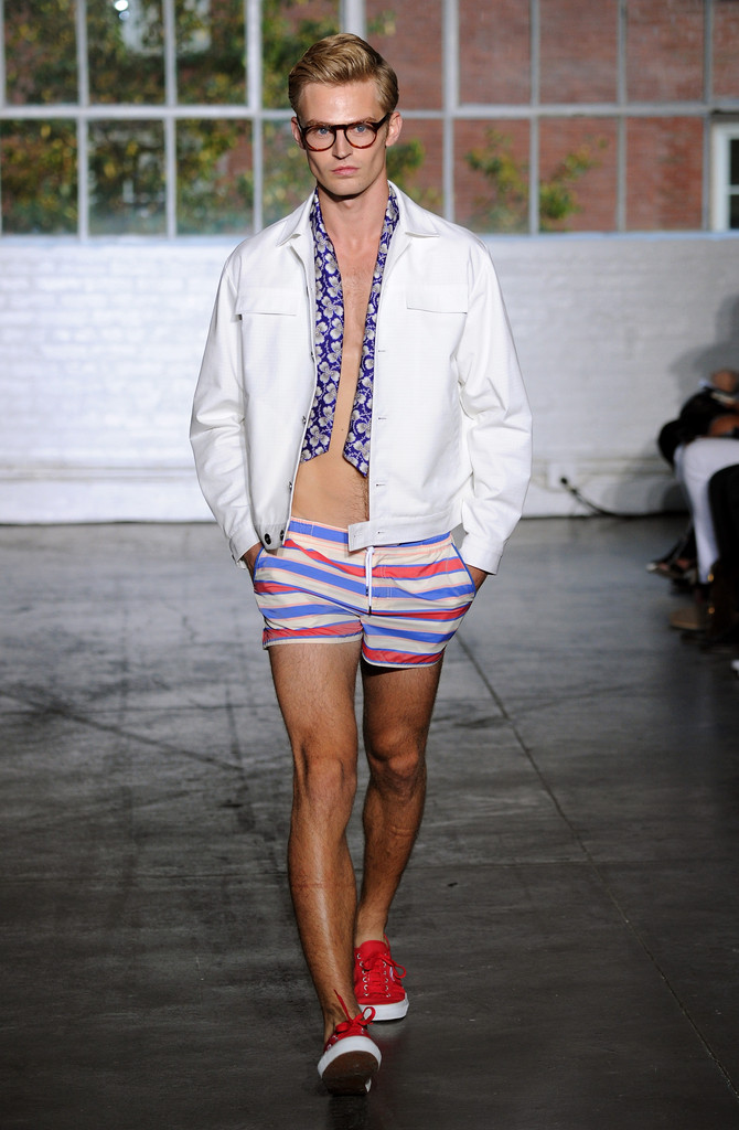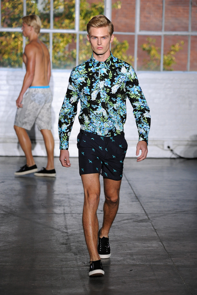 Designers Ronen Jehezkel and Parke Lutter walk the runway at the Parke & Ronen Spring/Summer 2015 fashion show at Industria Studios on September 4, 2014 in New York City. With an ability to prove they are the kings of the male bathing suits, plus have a smart eye to choose fashion models there in the market right now, Parke and Ronen prove once again that are those that indicate what colors and trends in menswear will mark the next season. Colorful swimwear, flowers framing, developing new fabrics, cuts between classic and innovative silhuoette, Parke and Ronen know what they are designing and what market are they directed to. Nice clothes đŸ˜€