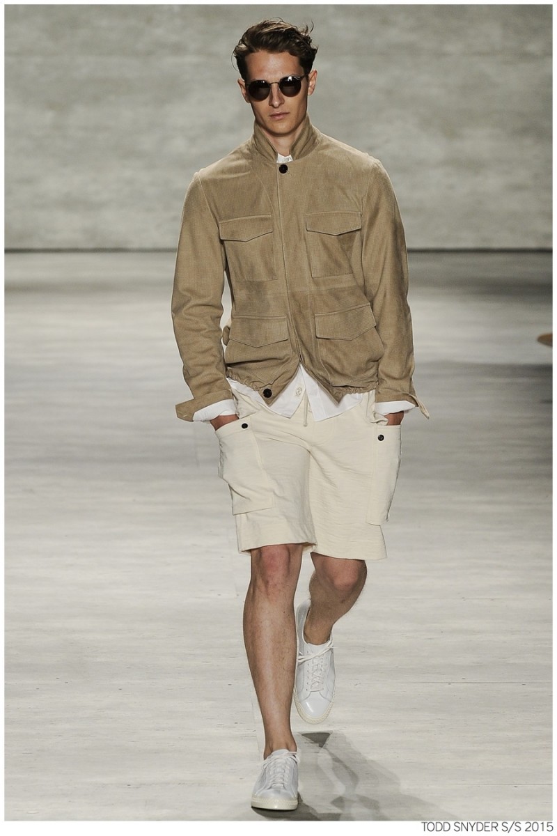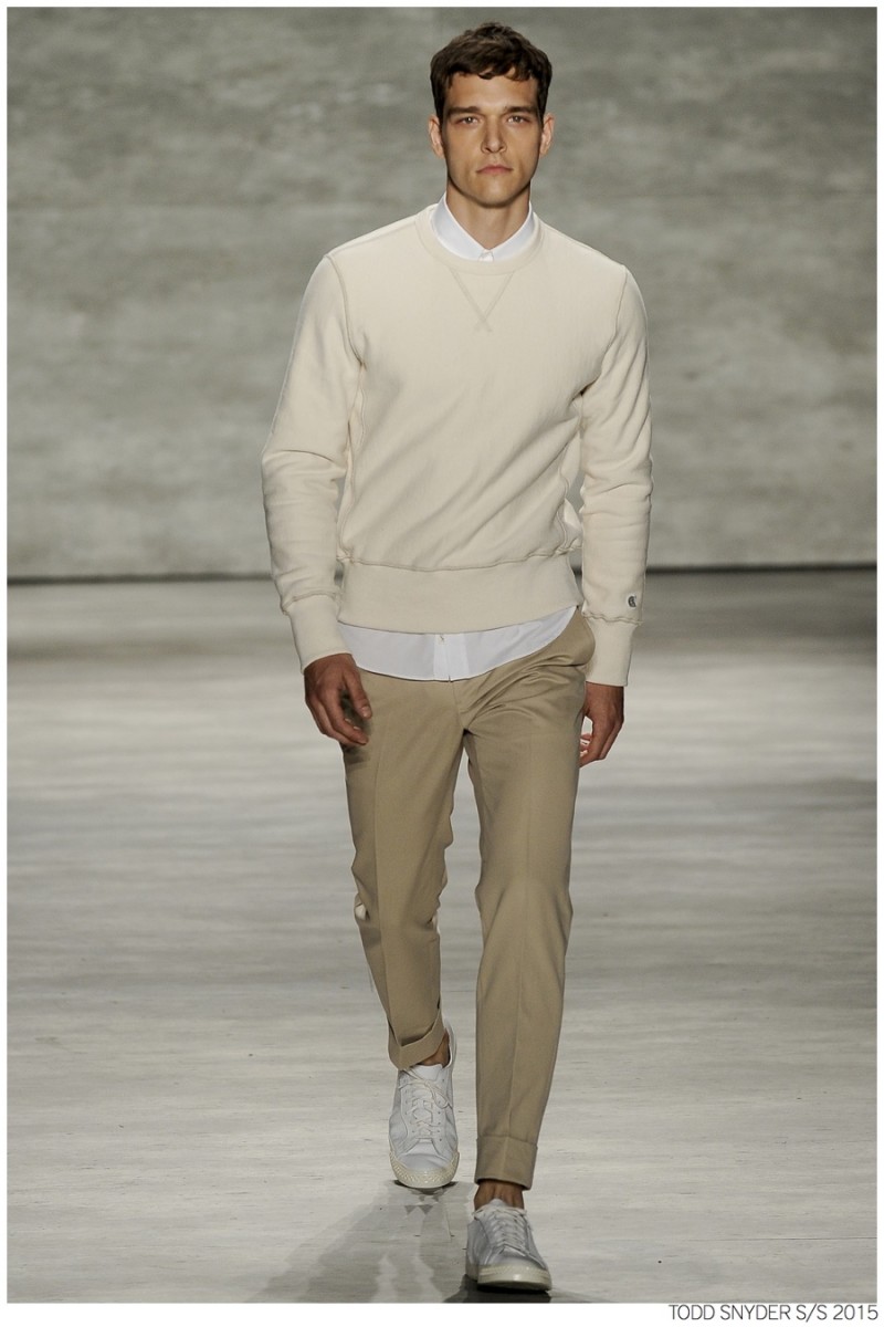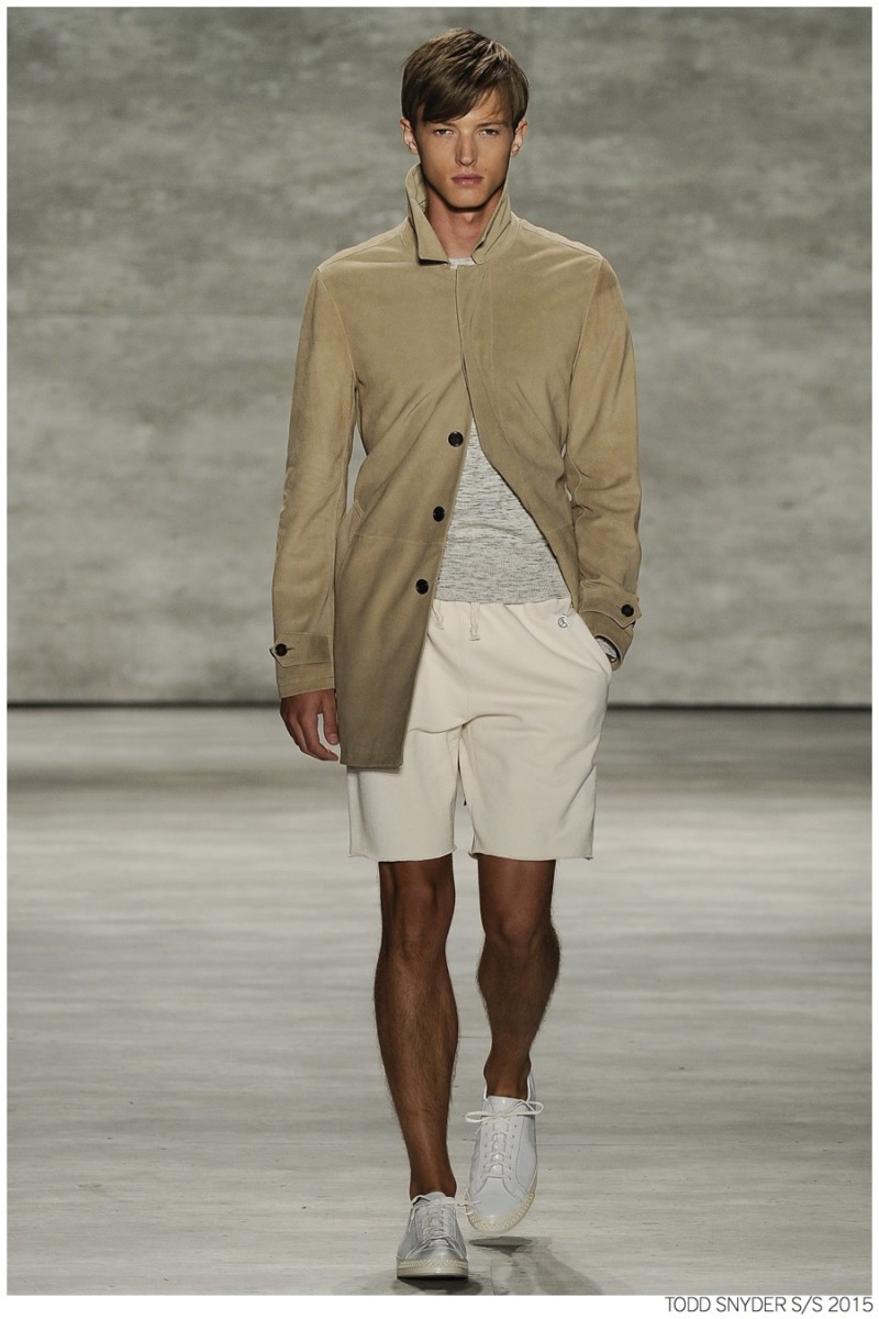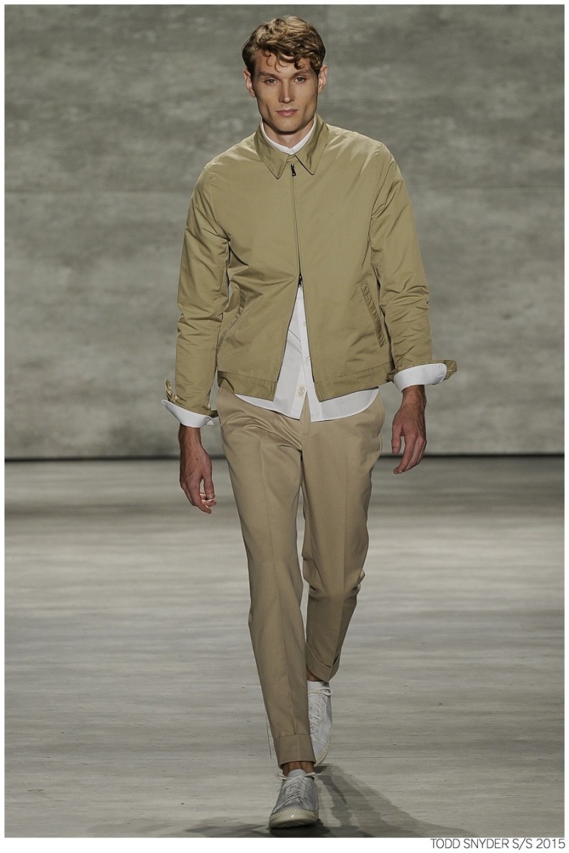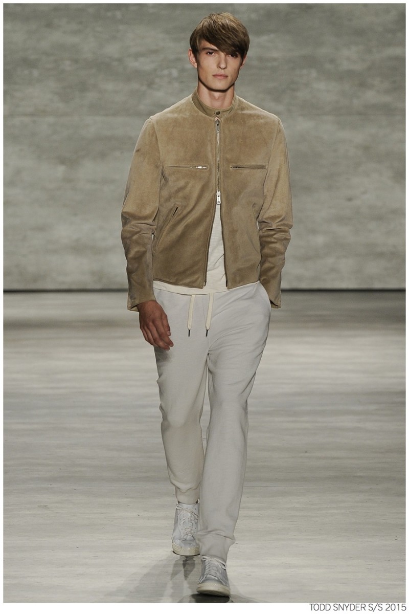 Tuned into his on-going collaboration with champion, designer Todd Snyder unveiled a casual Spring/Summer 2015 collection during New York fashion week. Embracing dusty neutrals, offset by dark alternatives, Snyder turned out one essential after the next, honing in on relaxed fits and accessible style options. from solid knit pullovers and bomber jackets to tailored suits, Todd Snyder delivered menswear staples for the everyday man.