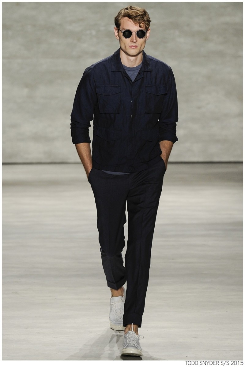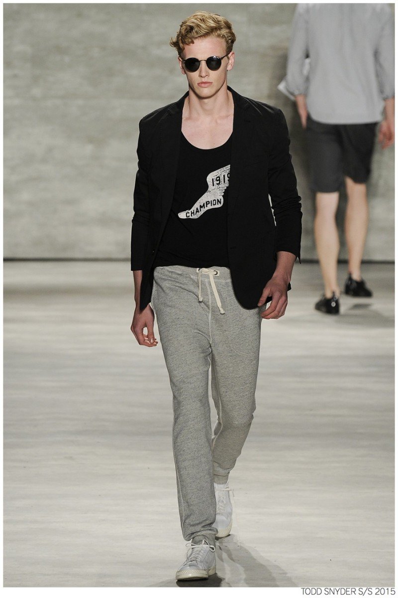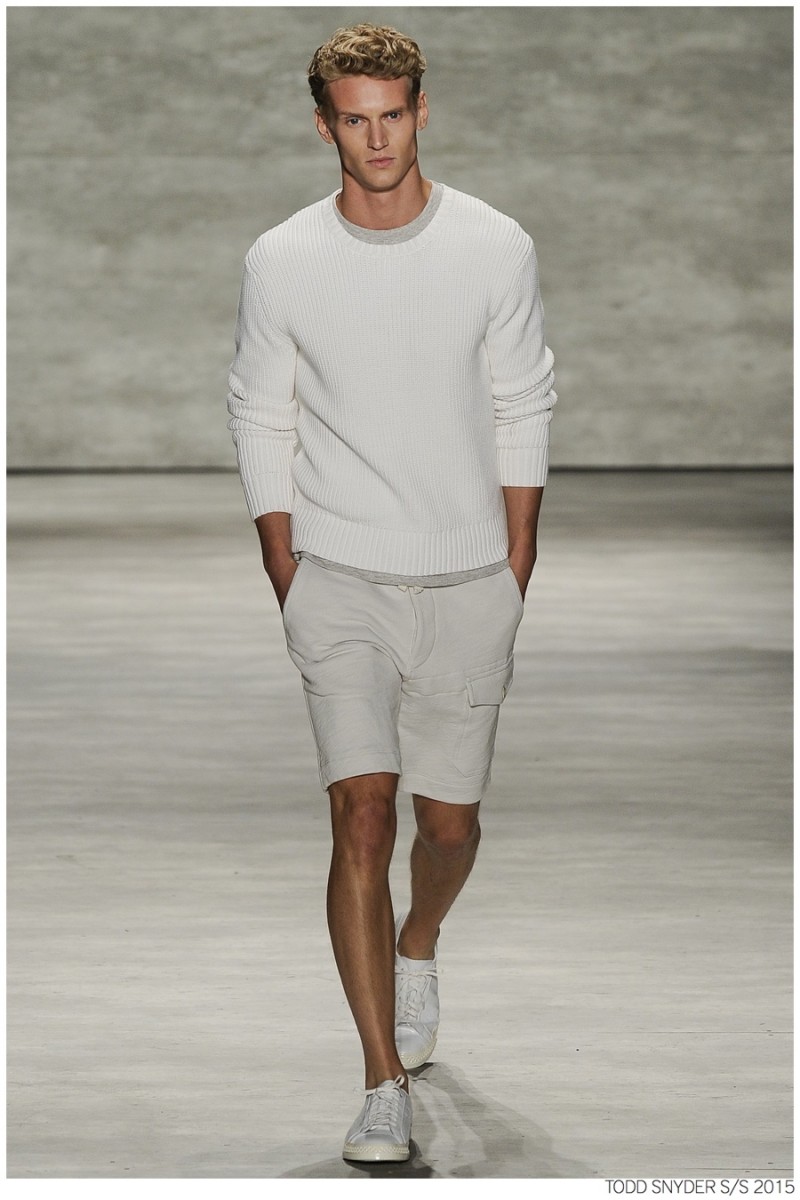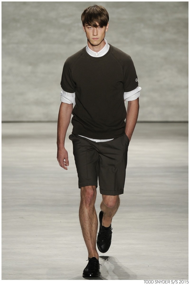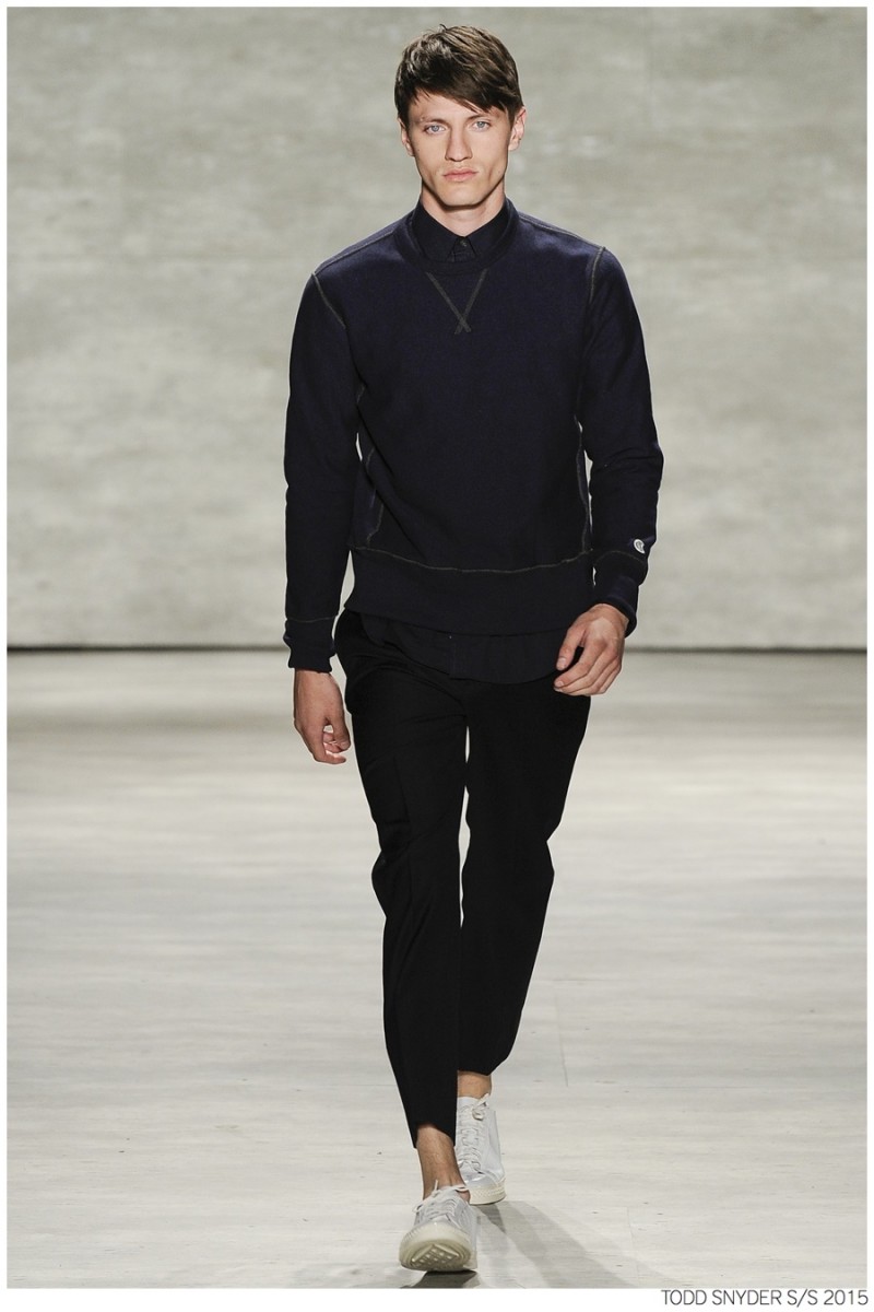 Tuned into his on-going collaboration with champion, designer Todd Snyder unveiled a casual Spring/Summer 2015 collection during New York fashion week. Embracing dusty neutrals, offset by dark alternatives, Snyder turned out one essential after the next, honing in on relaxed fits and accessible style options. from solid knit pullovers and bomber jackets to tailored suits, Todd Snyder delivered menswear staples for the everyday man.