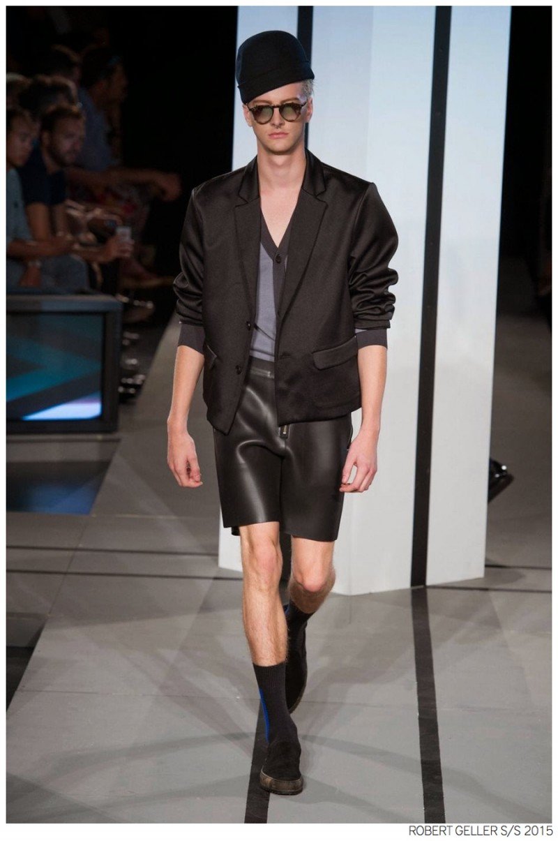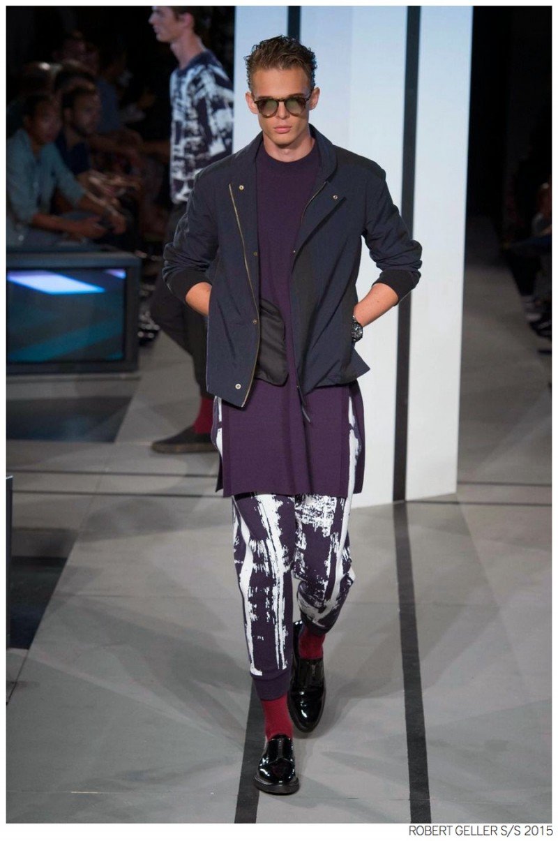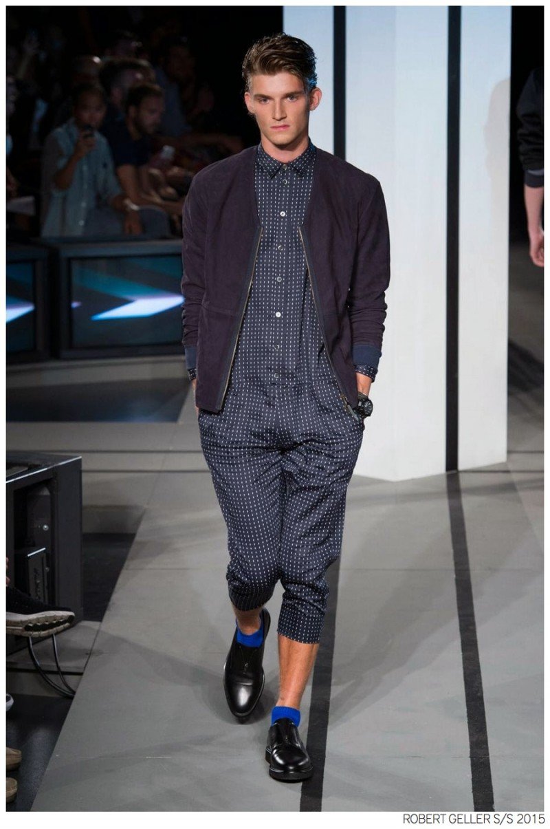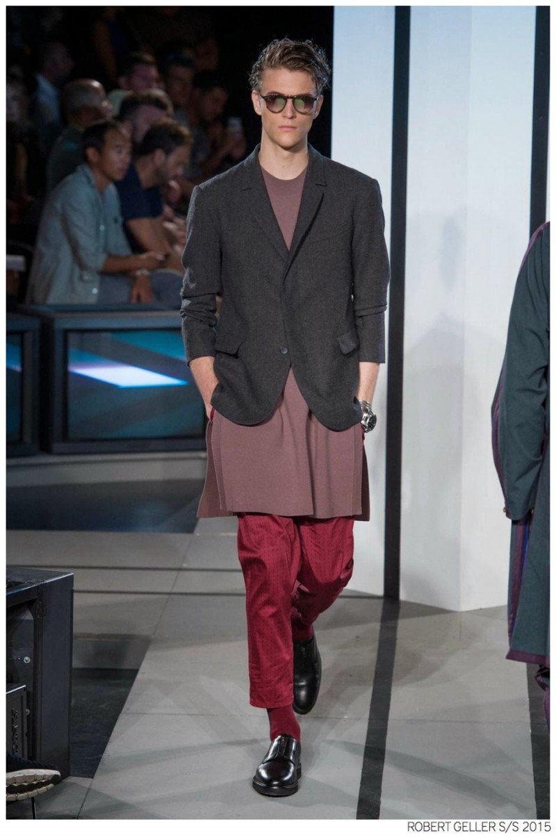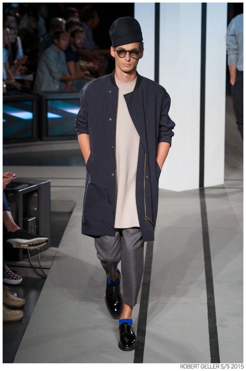 When it comes to the Robert Geller man, style is laid-back and simple is a positive but don’t mistake that philosophy for boring. For spring 2015, Geller reworked menswear essentials with elongated lengths and loose, slouchy fits. Minimal tops found their match in sleek long coats, while relaxed t-shirts were given a new life with engaging prints. Meanwhile, joggers and bomber jackets were included as part of the contemporary mix that has become an everyday staple for the modern man. Rounded out by cropped semi-lean trousers, sleeveless tops, lightweight knitwear and more, Geller delivered a collection that was both aspirational and applicable to the real world.